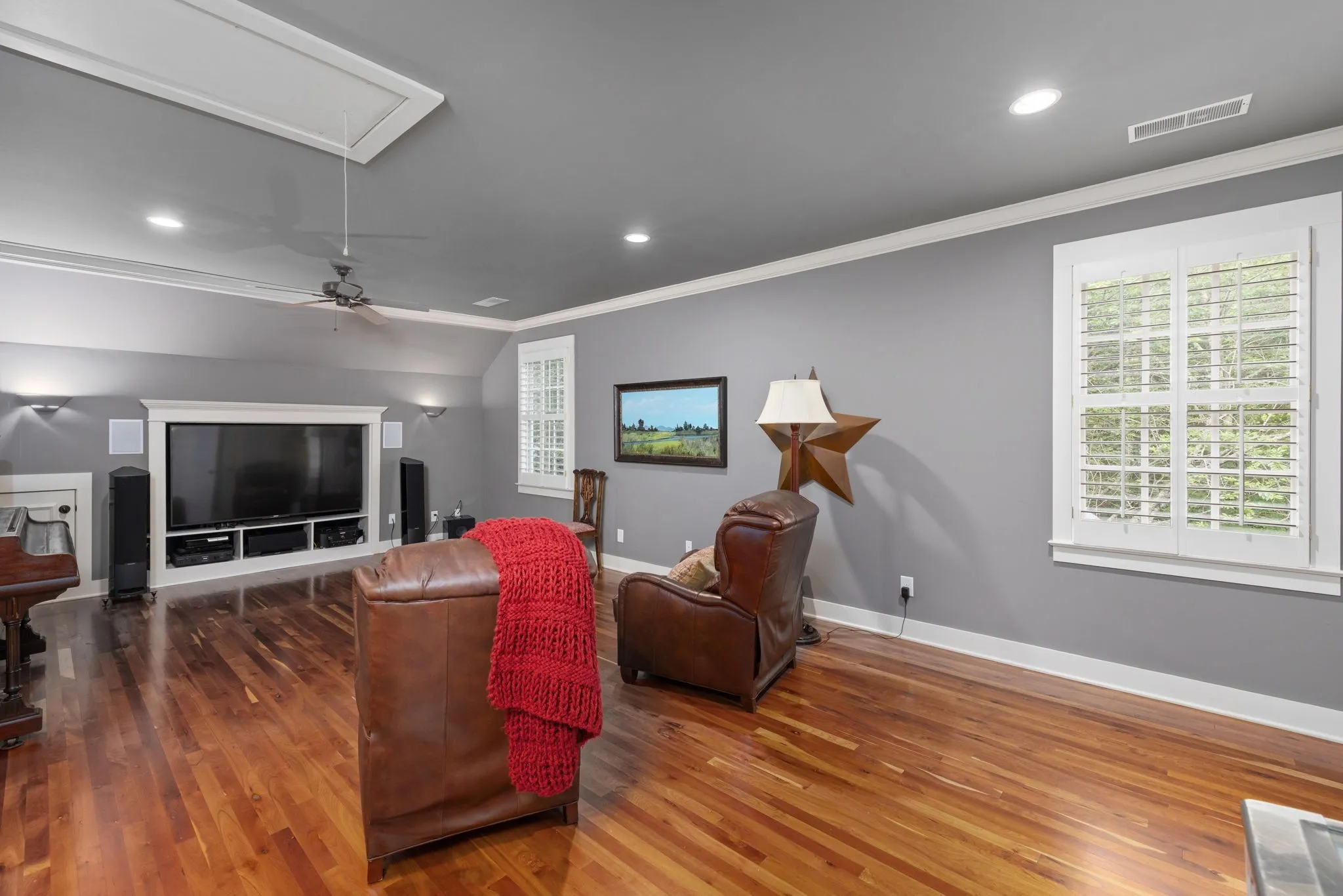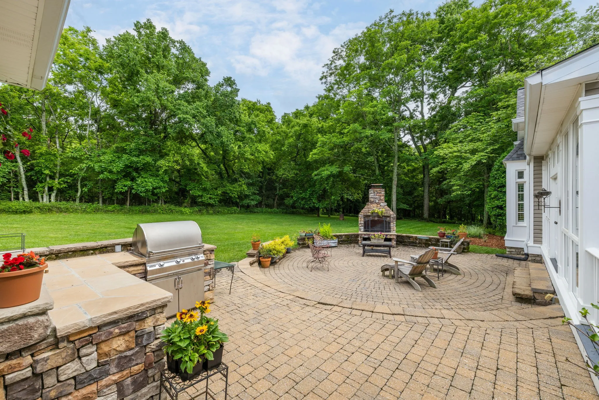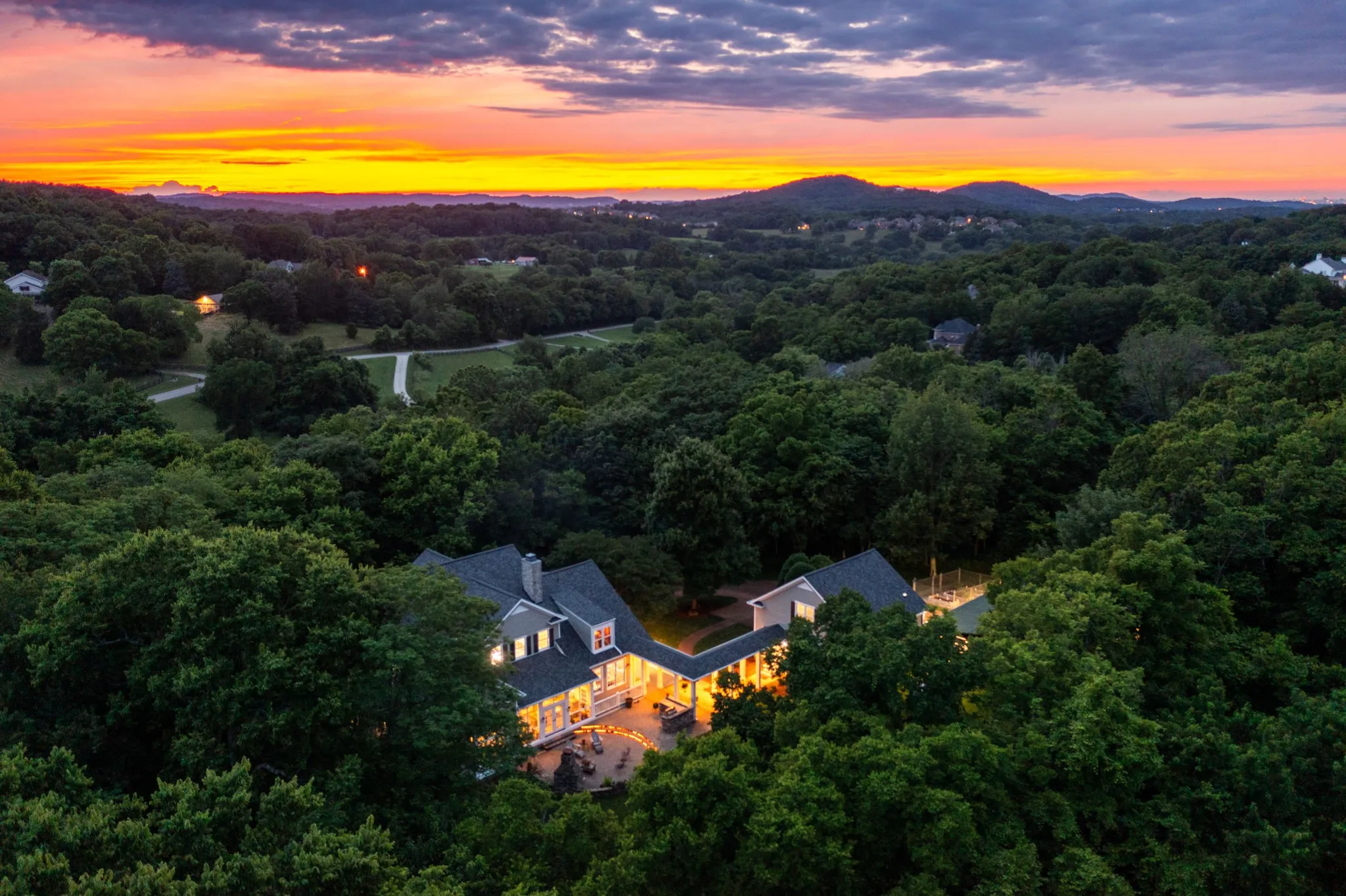 Exclusive Whistler Cove LUXURY FARMHOUSE on nearly 7 private wooded acres with NO HOA in Franklin TN! This exquisite estate has it all. A wrap around covered front porch invites you to enjoy TN mornings. Upon entering, you are greeted by a grand foyer that sets the tone for the elegance that lies within. The spacious living room features built-ins and a stunning double side stone fireplace, creating a cozy atmosphere for gatherings. The open layout seamlessly flows into the dining area and a gourmet kitchen equipped with updated appliances, double oven, built-in pantry, large island with gas cooktop, and wet bar with new ice maker- perfect for entertaining. Retreat to the primary suite, featuring heated floors, luxurious walk-in shower, double vanities, sitting area, and ample closet space. Each bedroom offers generous walk-in closets (one cedar closet) and full baths. The home also includes an office with pocket doors and built-ins, providing a quiet workspace in the serene setting. A heated and cooled sunroom allows natural lighting and scenic enjoyment year round. Step outside to your own outdoor oasis, featuring a patio fireplace, outdoor kitchen, gas grill, counter space and lighting – a relaxing place to enjoy beautiful TN sunsets overlooking large green space. The property includes a separate shop and barn, half bath and sink in garage, and storage. The detached apartment above the garage is fully furnished with a full kitchen, gas stove, full bath and built-in wood and iron beds – amazing space for guests or family. Other features includes luxury and art lighting, plantation shutters, cherry floors, built-ins, surround sound inside/outside, and window seating throughout. Large laundry room for convenience with ample storage and shelving. New roof installed May 2025 w/transferable warranty. Trane HVAC includes UV light system. Halo filtration system. New propane lines to fireplace/outdoor grill area is wired for a pizza oven or fish fry. A must see!