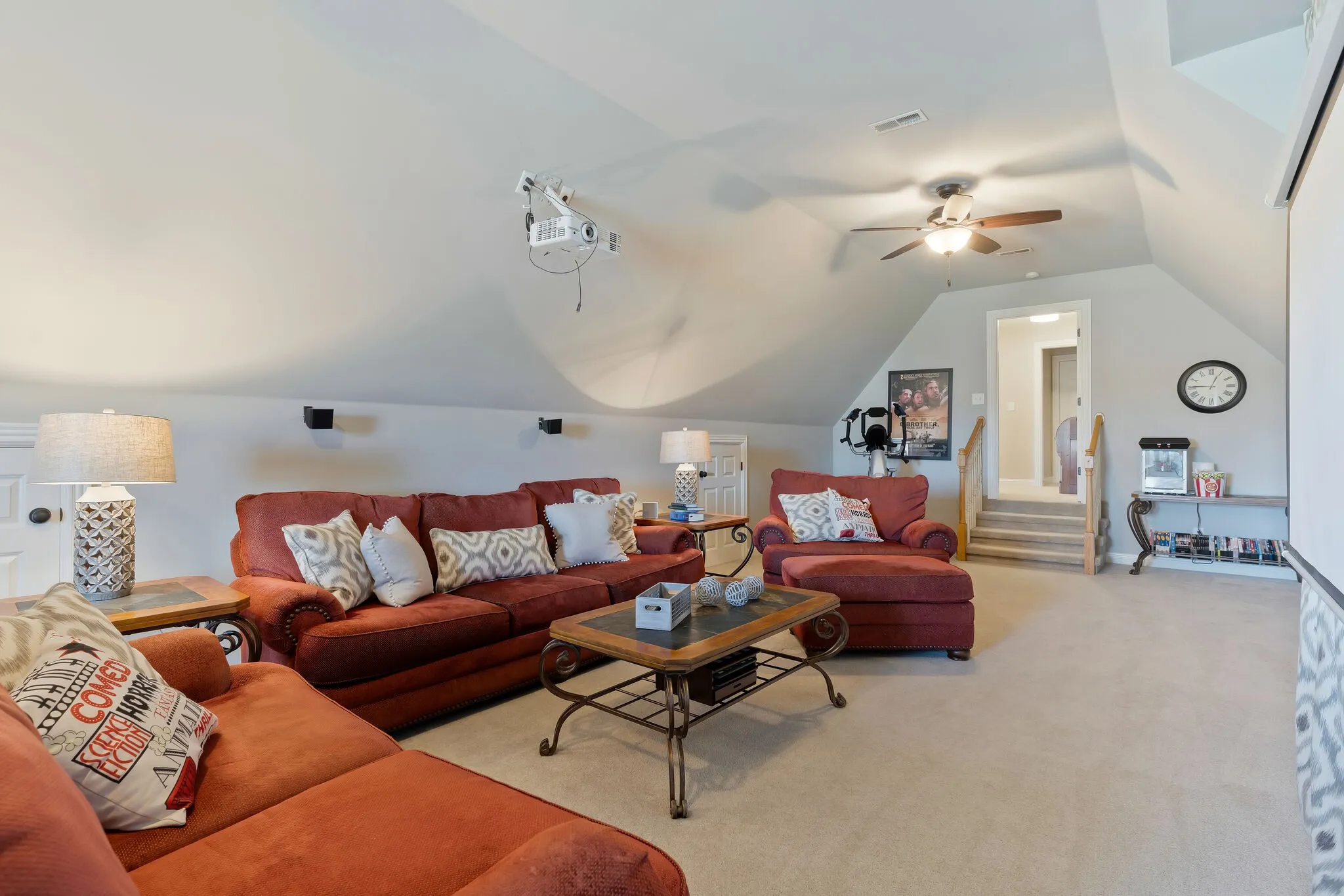 Experience the serene lake view from the front porch of this lovely home just 40 minutes from downtown Nashville. Step into the newly renovated kitchen boasting white painted cabinets, quartz counters, and a custom tile backsplash. Enjoy hardwood floors throughout the main living spaces. The spacious laundry room also serves as a convenient butler’s pantry. The primary suite on the first floor showcases a stunning tile shower and a relaxing soaking tub. The generously sized bonus room is currently set up as a theater room, complete with all the equipment. Unwind at the end of the day on the covered porch with your favorite beverage.The oversized two car garage is spacious, perfect for a workshop with ample storage space. Concerned about storms? This home includes a safe room. The nearly half-acre lot with a flat backyard is ideal for a pool! Plus, the circular driveway and parking pad provide ample parking space. The roof is 4 years old. Irrigation system.