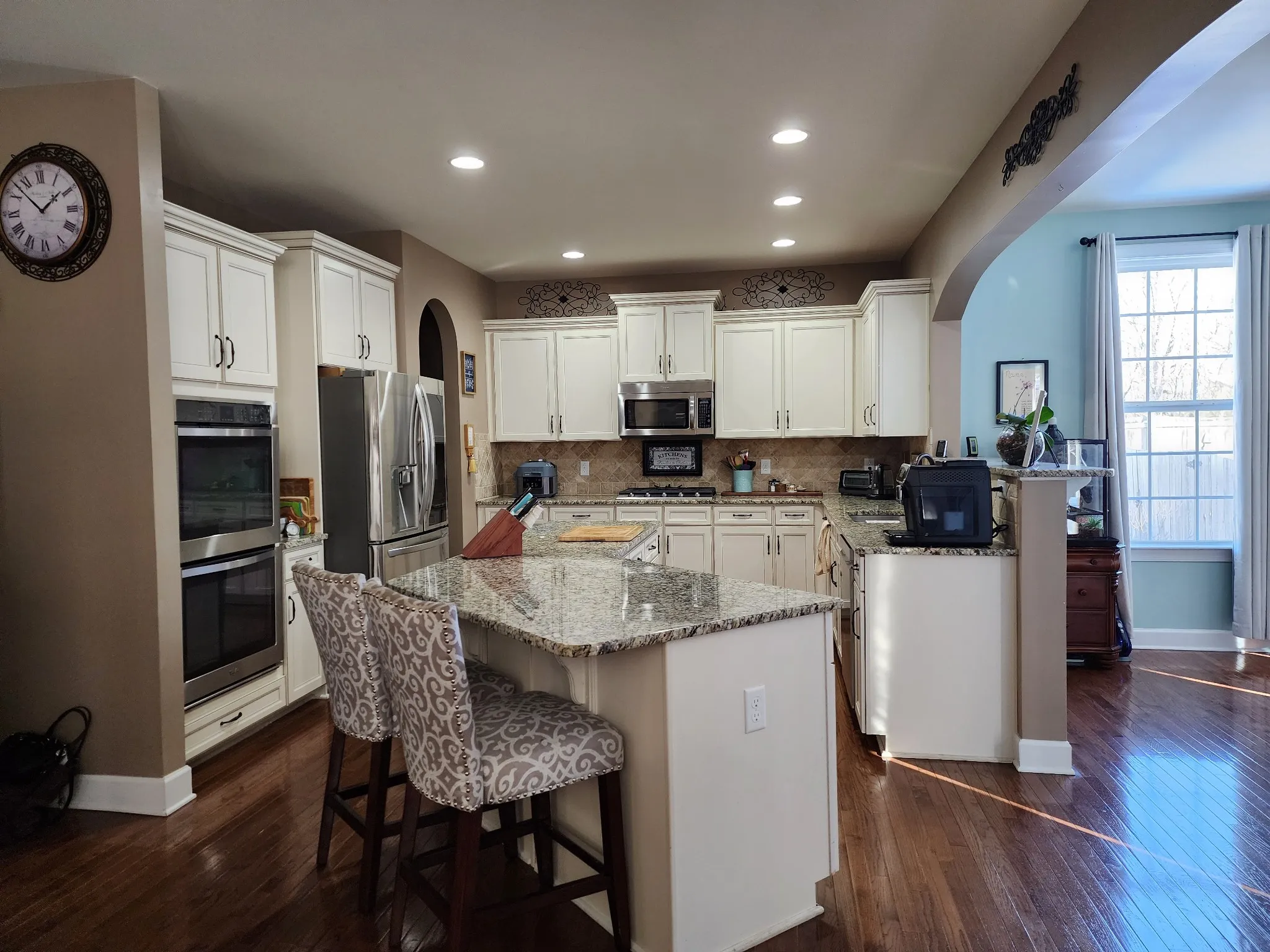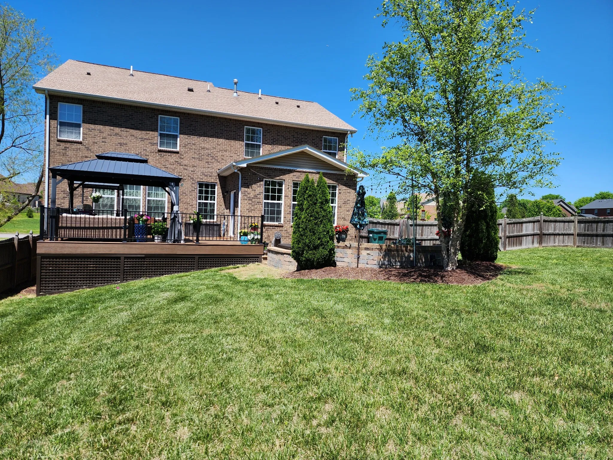 Well maintained custom brick home and .47 acre lot landscaped on all sides w/ wrought iron fenced back yard * 20’X20′ Timber Tech deck * Patio w/ fire pit and seating * 20’X12′ storage building * 19’X17′ family room w/ surround-sound on the main floor and an 18’X13′ loft upstairs wired for surround-sound * Well-appointed kitchen w/ lots of cabinets and counter space * Double convection ovens * Granite topped island & an extra Lg. pantry * 13’X12′ formal dining * 15’X12′ sunroom / eating area * 13’X12′ office w/ lots of natural lighting * Extraordinary Owners Suite w/ separate shower and tub * Huge dbl. walk-in closets * Laundry room w/ sink , cabinets & clothes folding area * Water filter / softener system through out house * HVAC steam humidifier * New roof 2021 * New water heater and dishwasher 2023 * New gas cooktop 2020