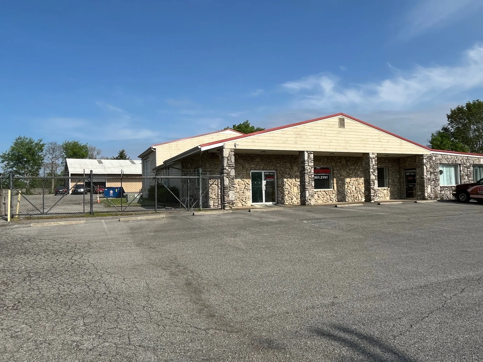 Prime investment or owner use property in White House, TN. 10,900 sf under roof with 6,390 heated and cooled. Main building currently has 2 suites with occupation of Suite 2 and a vacant Suite 1 space. Side and back lot has security fence.