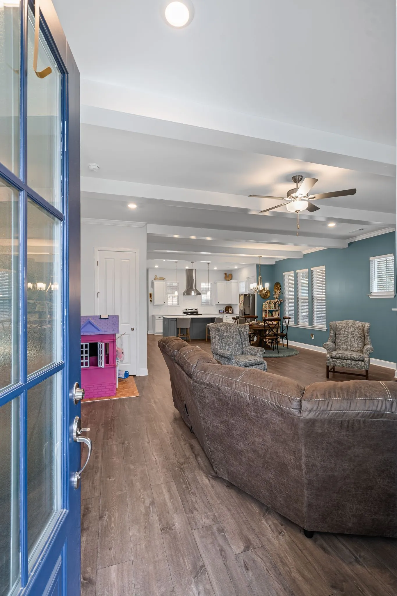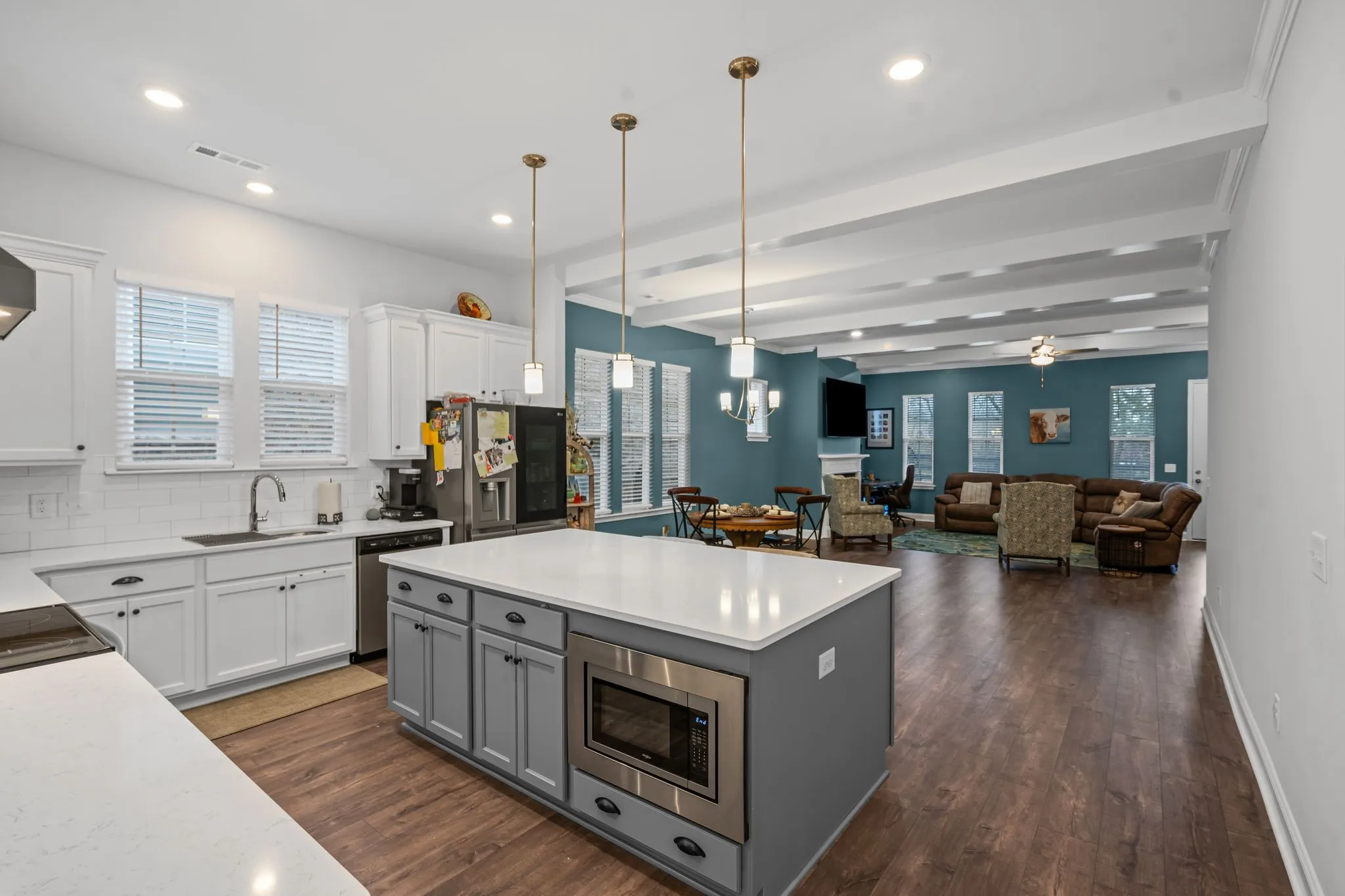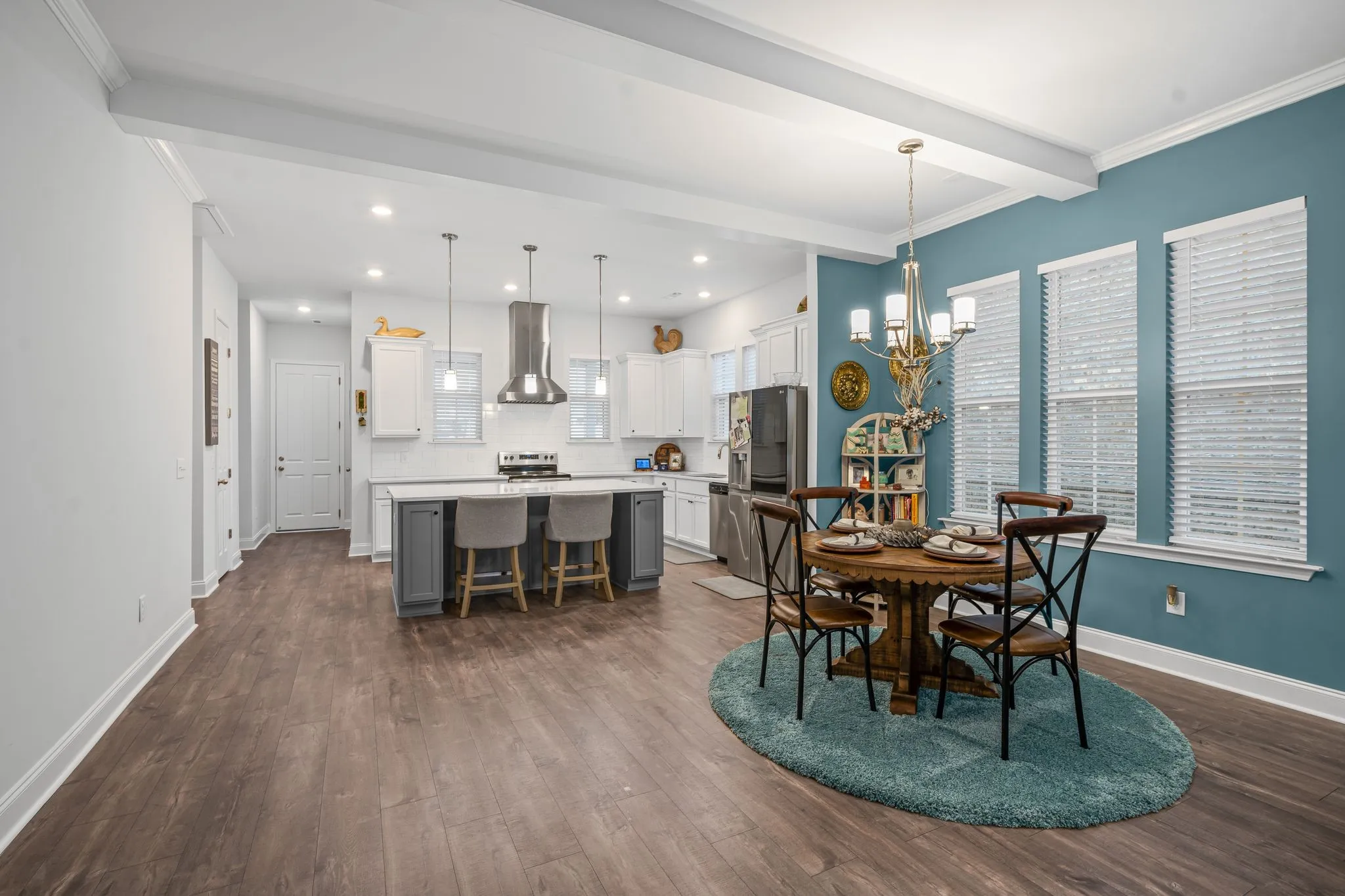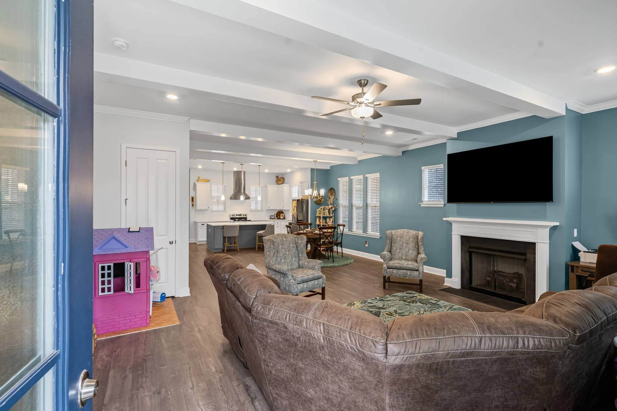 Welcome to this beautifully upgraded 3-bed, 2-bath home in this sought-after, quiet neighborhood, just minutes from Nolensville! Built 2 years ago, this home offers modern convenience with thoughtful custom touches throughout. Step inside to an open-concept living area featuring high ceilings and custom ceiling beams in the kitchen and living room, adding warmth and character. All windows throughout the home have blinds. The primary suite is a true retreat with a his-and-hers closet and a stunning feature wall.