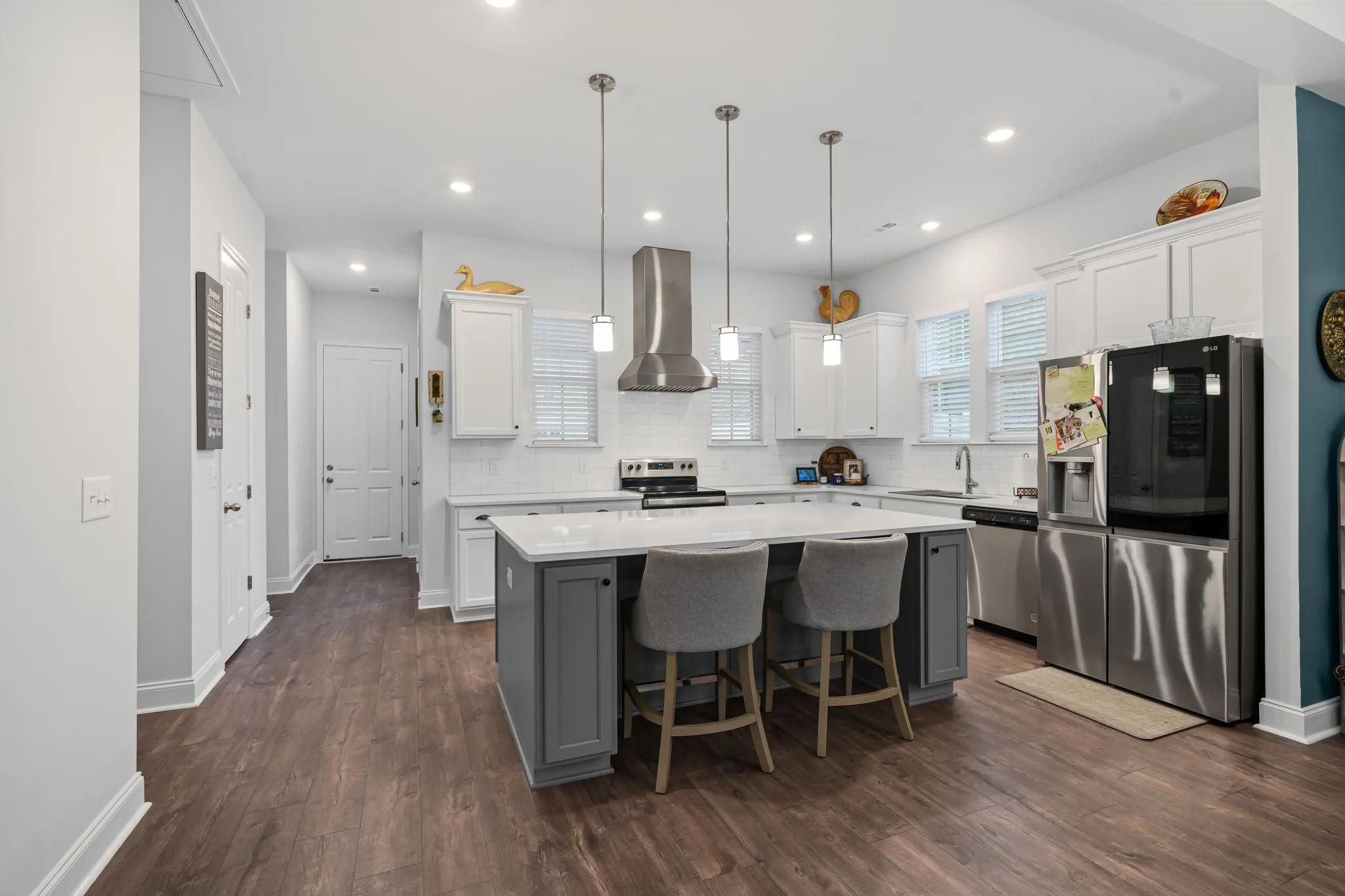 Enjoy seamless indoor-outdoor living with a charming front porch facing green space and a covered back porch overlooking a privacy-fenced backyard-perfect for relaxation and entertaining. The large laundry room comes complete with a washer and dryer for added convenience.