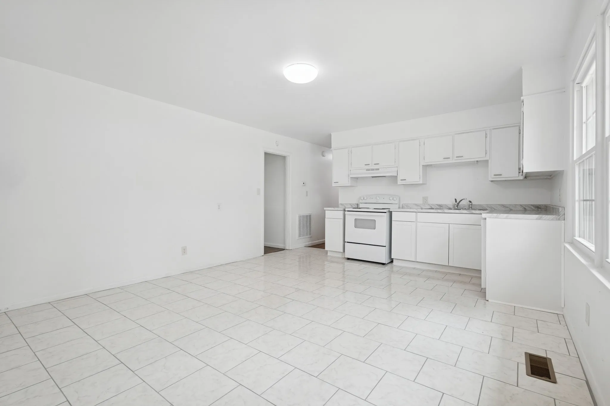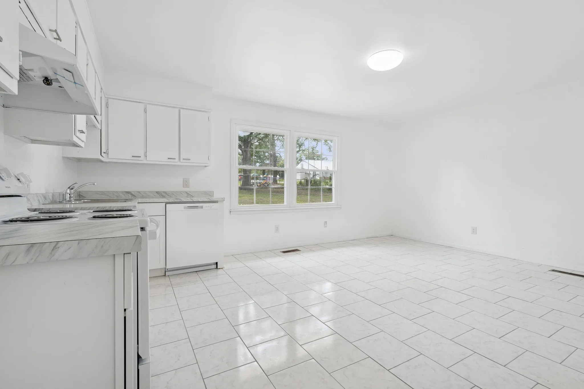 This neatly renovated brick ranch home, originally built in 1957, offers plenty of updates and a location that is hard to beat. The house features new windows bringing in plenty of natural light to bounce off the refinished hardwood floors, as well as brand new interior and exterior doors. The flooring has been completely redone with tile, adding a sleek touch to the kitchen, bathroom and laundry room. Significant upgrades include new plumbing and rigid ductwork, ensuring reliable and efficient systems. The front porch has been enhanced with new railings, creating a welcoming entrance. The kitchen is equipped with new appliances, including an electric stove and dishwasher making it move-in ready. Roof was installed April 2025. Additionally, the home has seen updates in some areas with new floor joists and drywall, ensuring a solid foundation and smooth walls. This home is a true gem, offering modern comforts within a classic brick exterior.