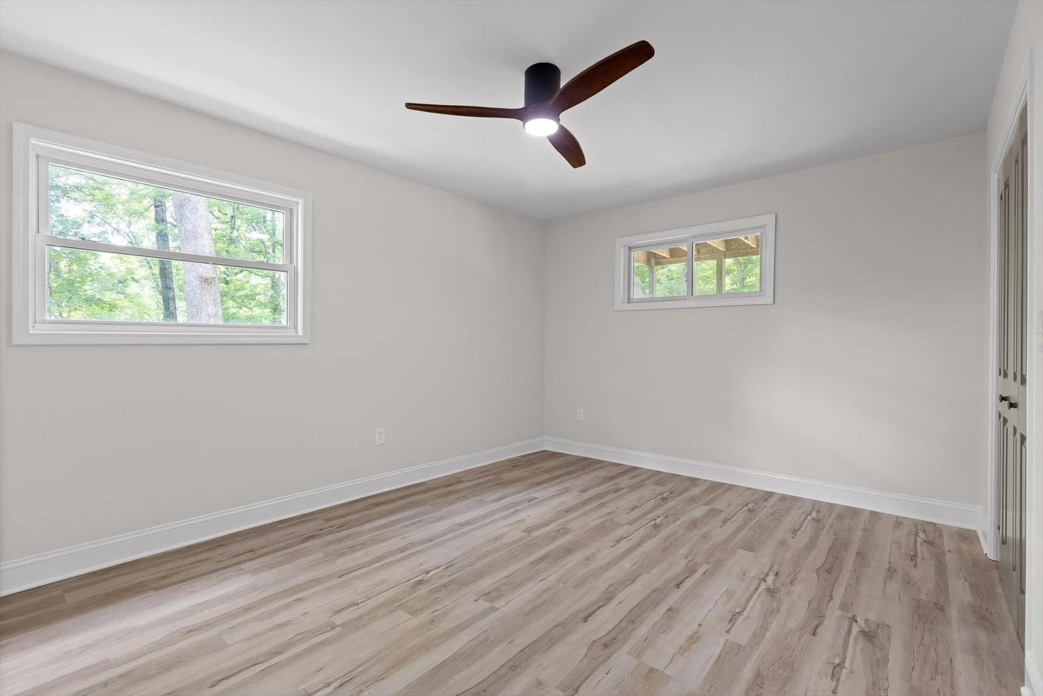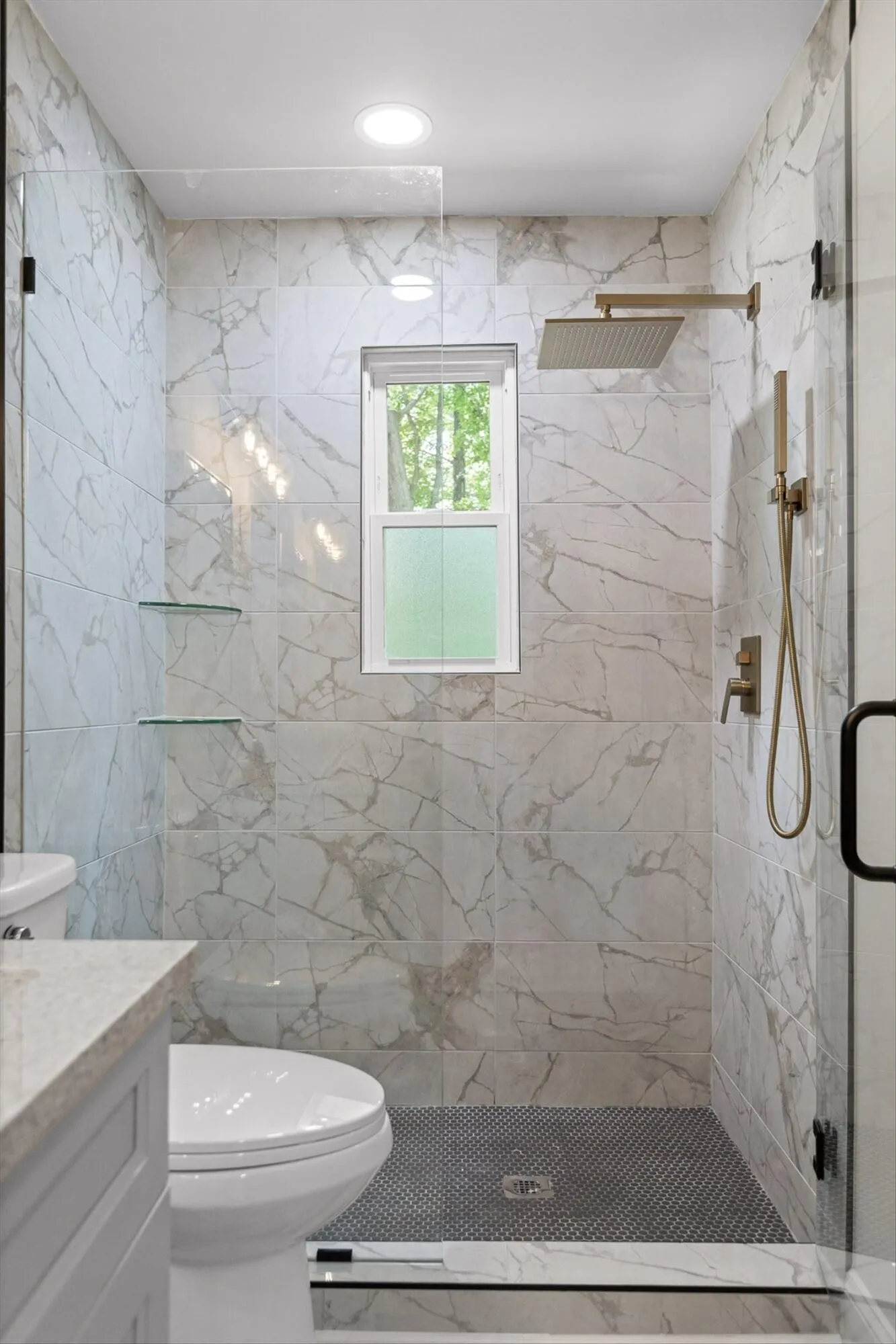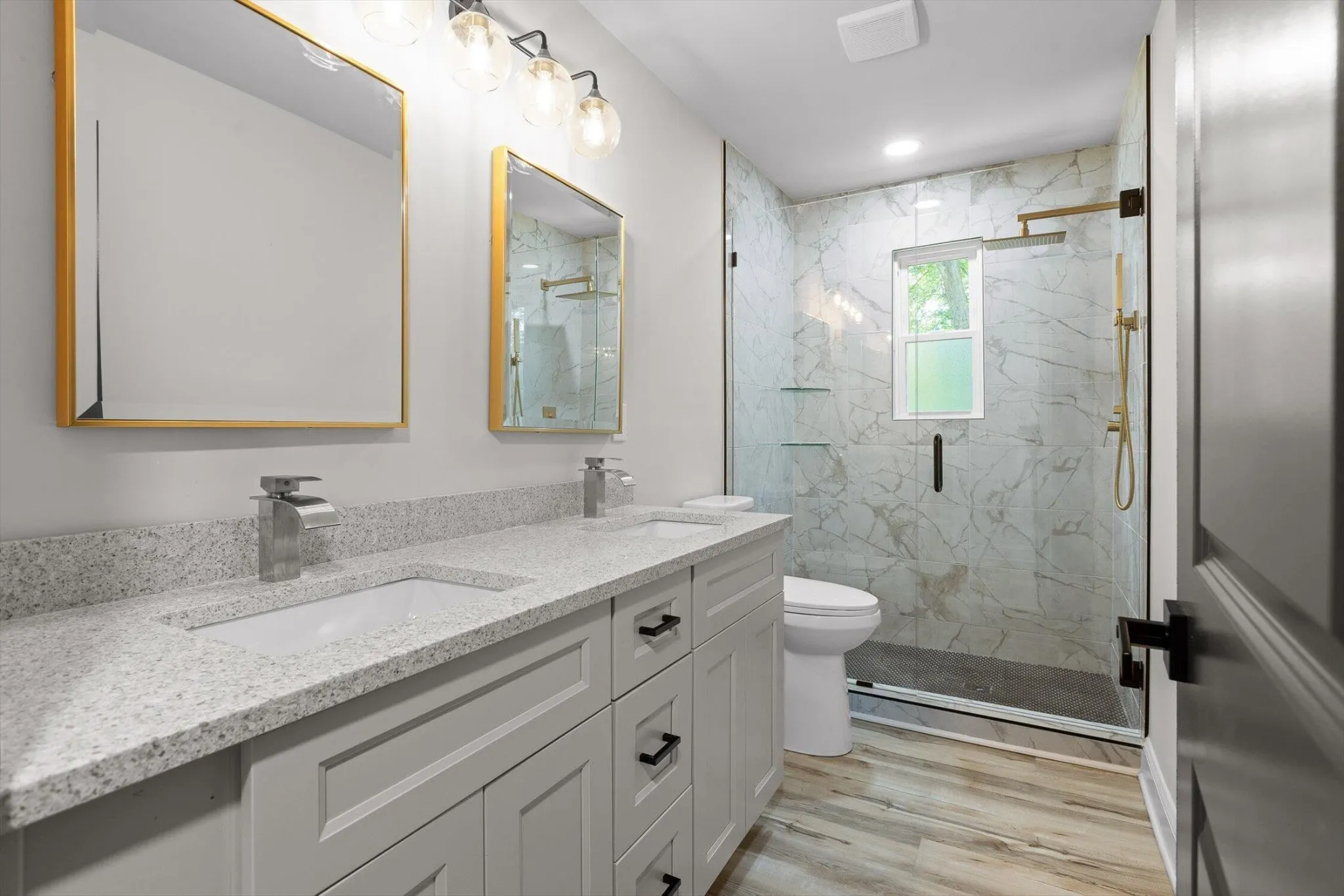 Every bath is fully remodeled with tile showers, new tubs, tile surrounds, upgraded cabinetry, flooring, fixtures, and lighting. Nearly every surface shines: new sheetrock, interior and exterior paint, all new flooring, new windows and doors, Hardie-style siding, and a brand-new roof. A tongue-and-groove open-gable front porch adds welcoming character, while extensive landscaping highlights the natural beauty of the lot.
