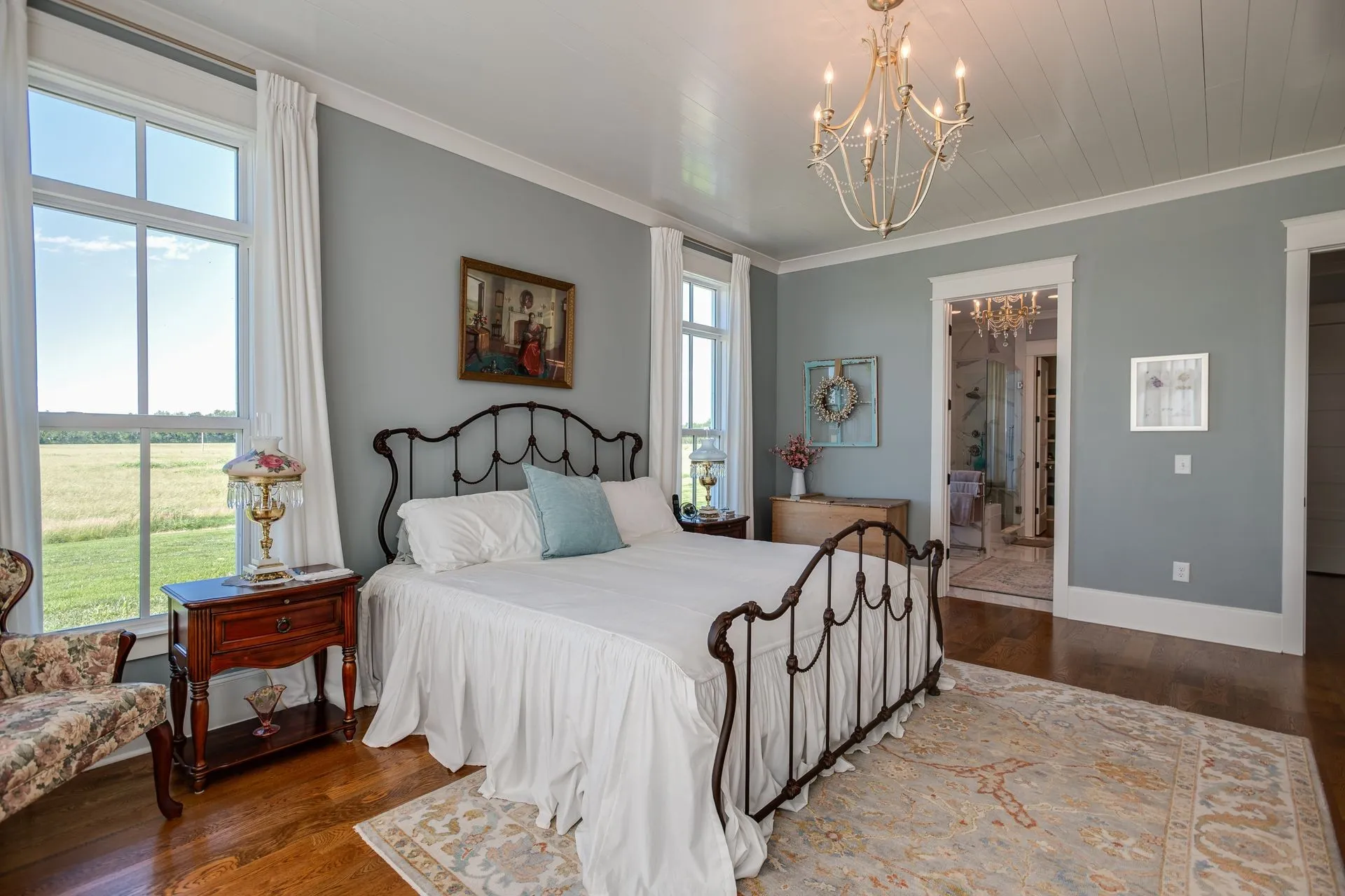 "LongDescription" => "The Bathroom's standout feature is a custom vanity crafted from an antique dresser, adding character and warmth to the room. Its original matching antique mirror is perfectly preserved and thoughtfully integrated into the design."