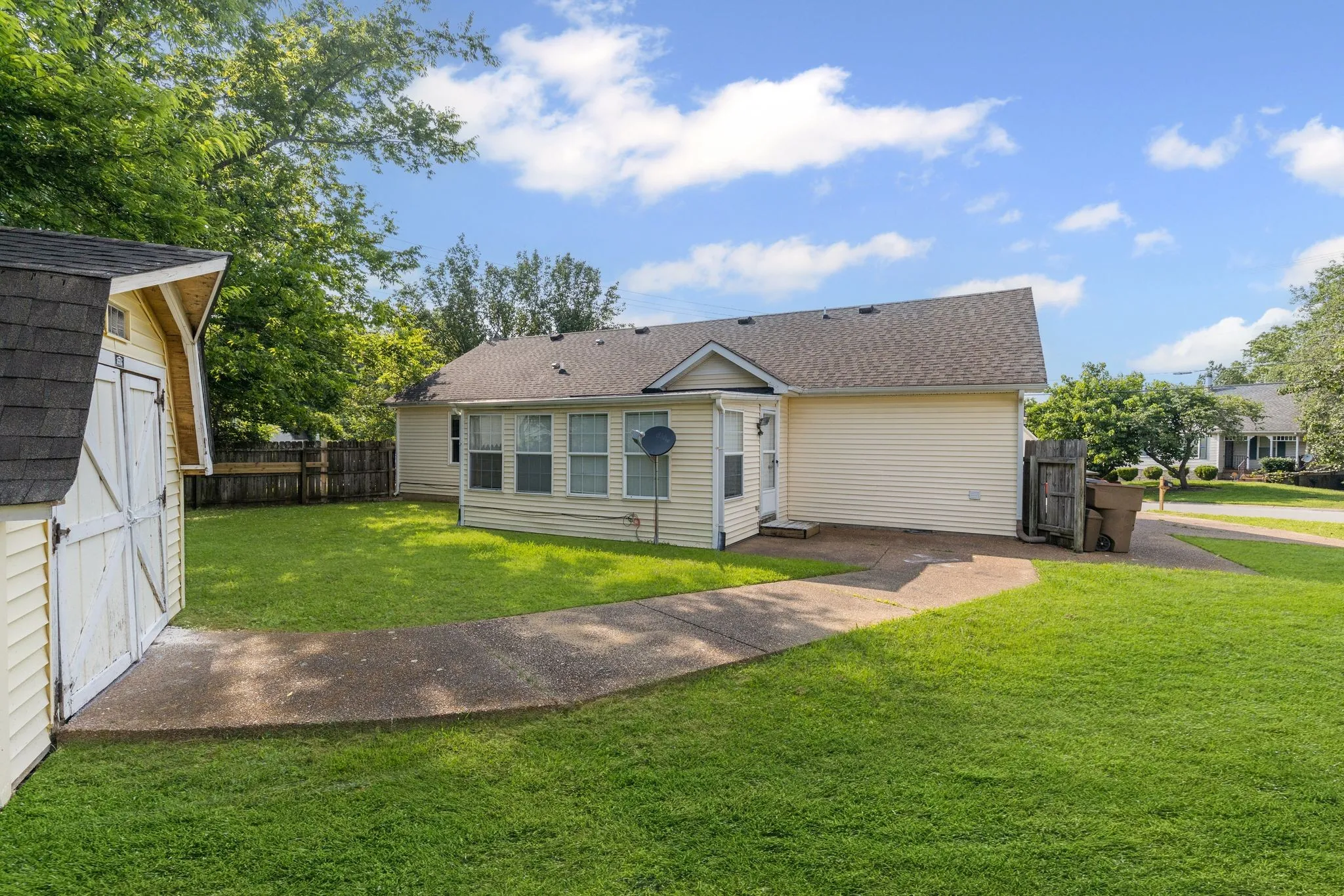 This beautifully updated one-level home offers comfort, space, and value in the heart of Antioch. With four bedrooms and two full bathrooms, the property features brand-new luxury vinyl plank flooring, fresh interior paint, and an updated kitchen with granite countertops and stainless-steel appliances. A bright and versatile sunroom adds flexibility for a home office, guest room, or additional living space. Located on a desirable corner lot, the home includes a storage building and no HOA restrictions. The exterior has been professionally pressure-washed, and the entire home has been cleaned, making it truly move-in ready.