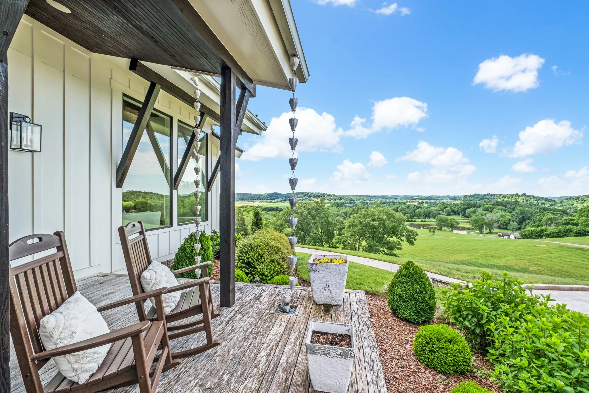 Hilltop home with breathtaking views of Williamson county. Home custom designed and built by an architect and structural engineer. Open floor plan with views from every room. Private country living less than 10 miles from I65 and downtown Franklin. Gorgeous wood flooring throughout and custom finishes. In ground pool and outdoor entertaining area.
