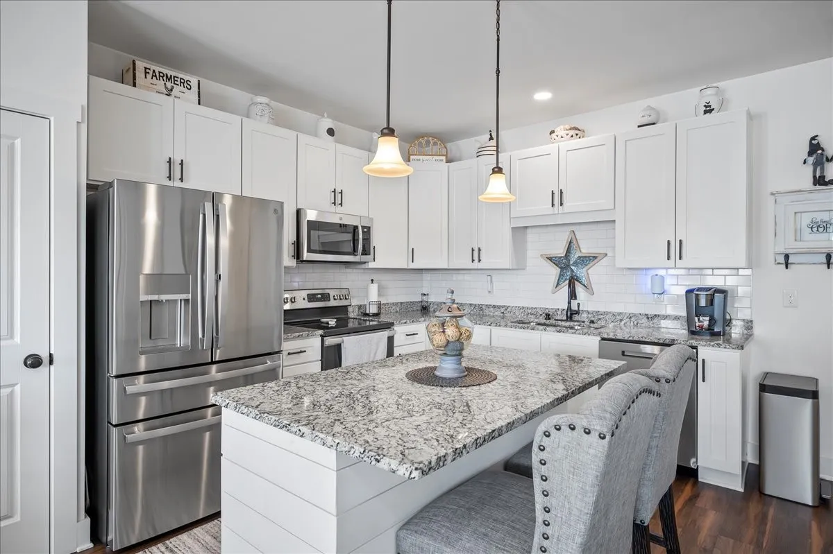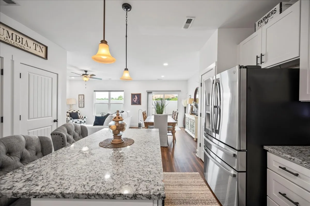 +"PublicRemarks": "Stylish, Updated, and Move-In Ready – End-Unit Townhome with Two-Car Garage! This beautifully maintained townhome offers modern upgrades, thoughtful details, and unbeatable convenience. From the brick front exterior to the epoxy-coated two-car garage equipped with ceiling fans, overhead storage racks, and an electric vehicle charger, every feature has been curated for comfort and functionality. Step inside to discover a light-filled interior with custom window treatments, new flooring on the stairs and upper level, and upgraded finishes throughout. The kitchen is a standout with shiplap accents on the island complete with two upholstered chairs, a top-of-the-line dishwasher, upgraded faucet and hardware, a spacious pantry and a hidden TV cabinet above the refrigerator. Who really uses that cabinet for anything anyways? A custom chandelier adds a touch of charm in the stairwell, while both full bathrooms have been updated with new showerheads and modern fixtures. Upstairs you will find a well appointed primary suite with ample closet space as well as a dedicated laundry room which is complete with a washer and dryer. Outside, enjoy a private back patio which comes complete with patio furniture and a newly added privacy fence, ideal for relaxing or entertaining. Recent maintenance includes termite and HVAC service performed. Located just minutes from the interstate with quick access to Columbia and Spring Hill, you’ll enjoy close proximity to shopping, dining, and entertainment while tucked into a well-kept community. Don’t miss this turnkey gem—where every upgrade is already done, and all that’s left to do is move in! But wait, it gets even better! This community is planning exciting new amenities, including a pool, clubhouse, restrooms, grilling area, covered patio, and a kids’ play area—bringing even more value and fun to everyday living."