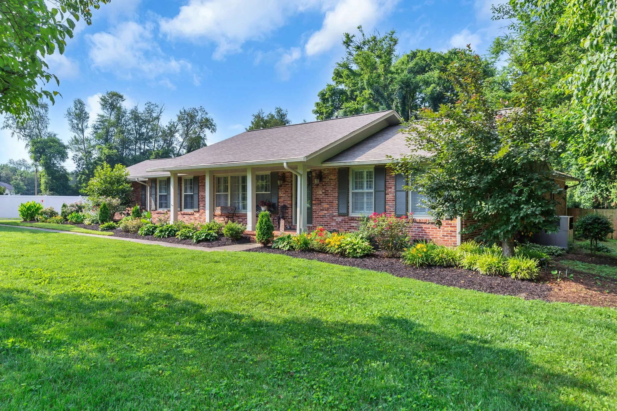 Bricked Ranch Style Home is in a Fantastic Neighborhood with Mature Trees. Hardwood Flooring, Wet Bar, a Separate Room Behind the Bookcase with its Own Entrance, New Kitchen Cabinets and counter tops. Kitchen Opens to dining room. A Den with Built-in Bookcases, a Fireplace for those Cozy Nights for Snuggling or Reading, Attached Covered Carport, Connecting Heated and Cooled Man Cave, a Back Porch that is Perfect for Coffee in the mornings! Treed Lined Fenced Back Yard. New Roof.