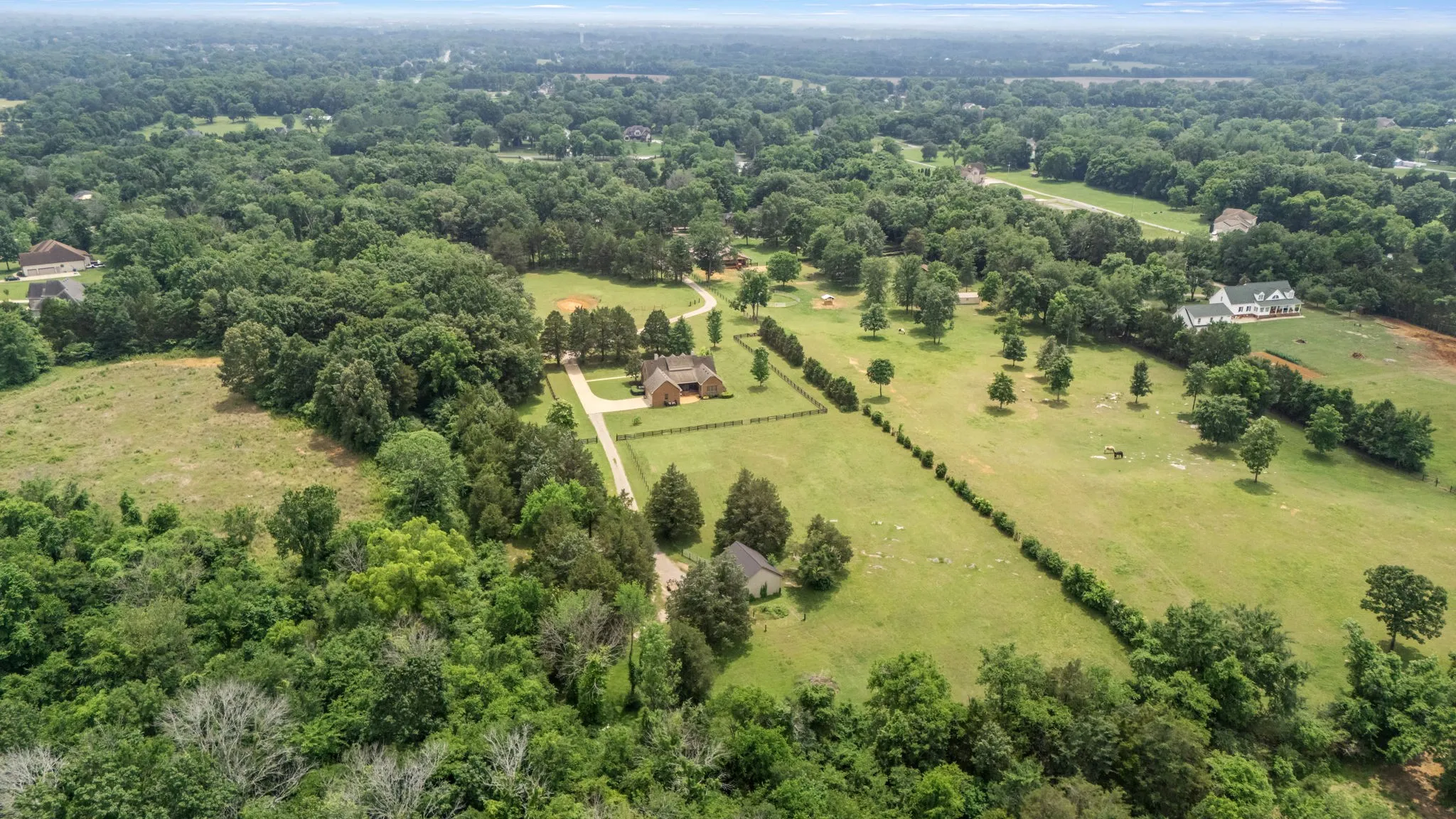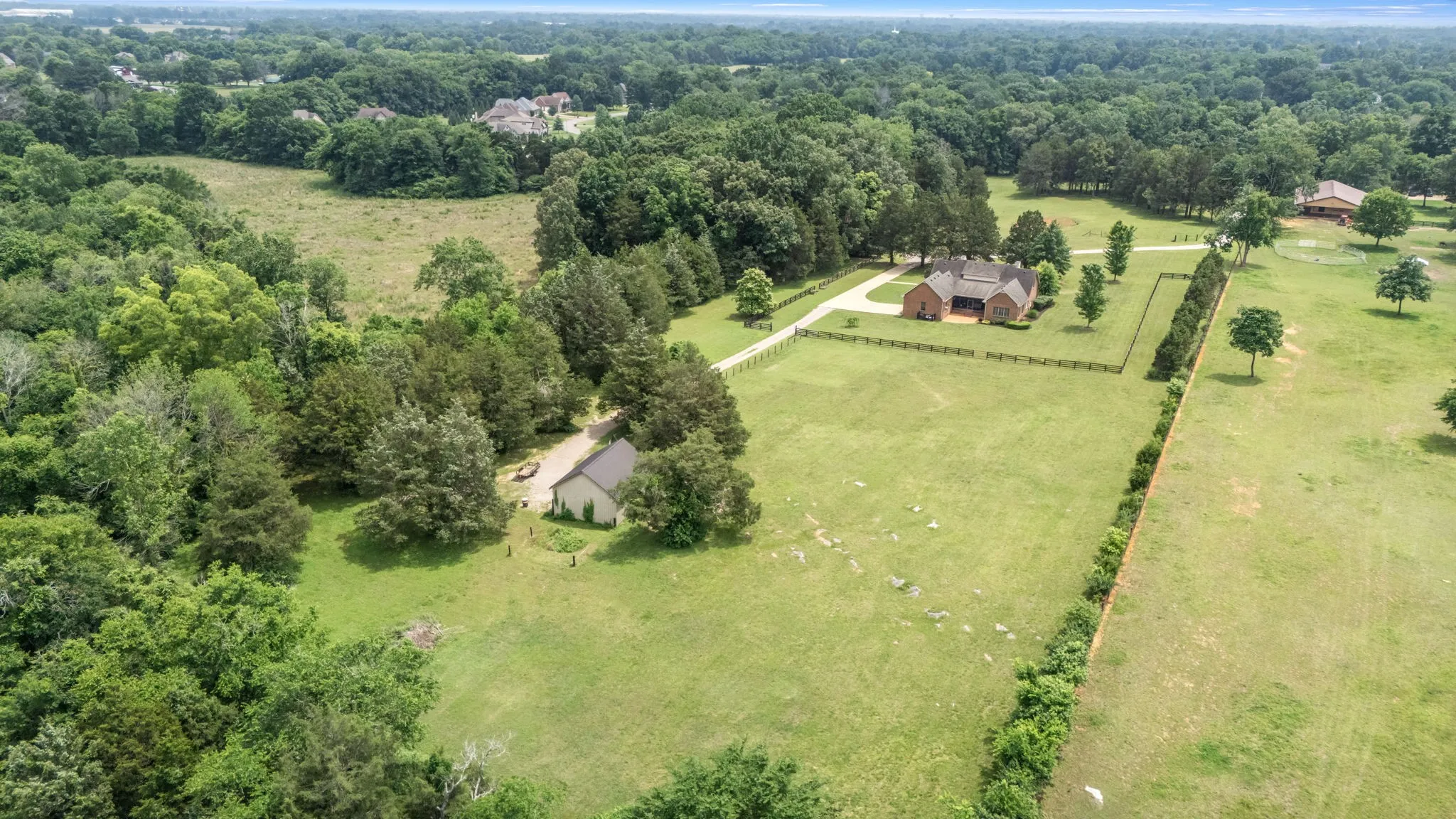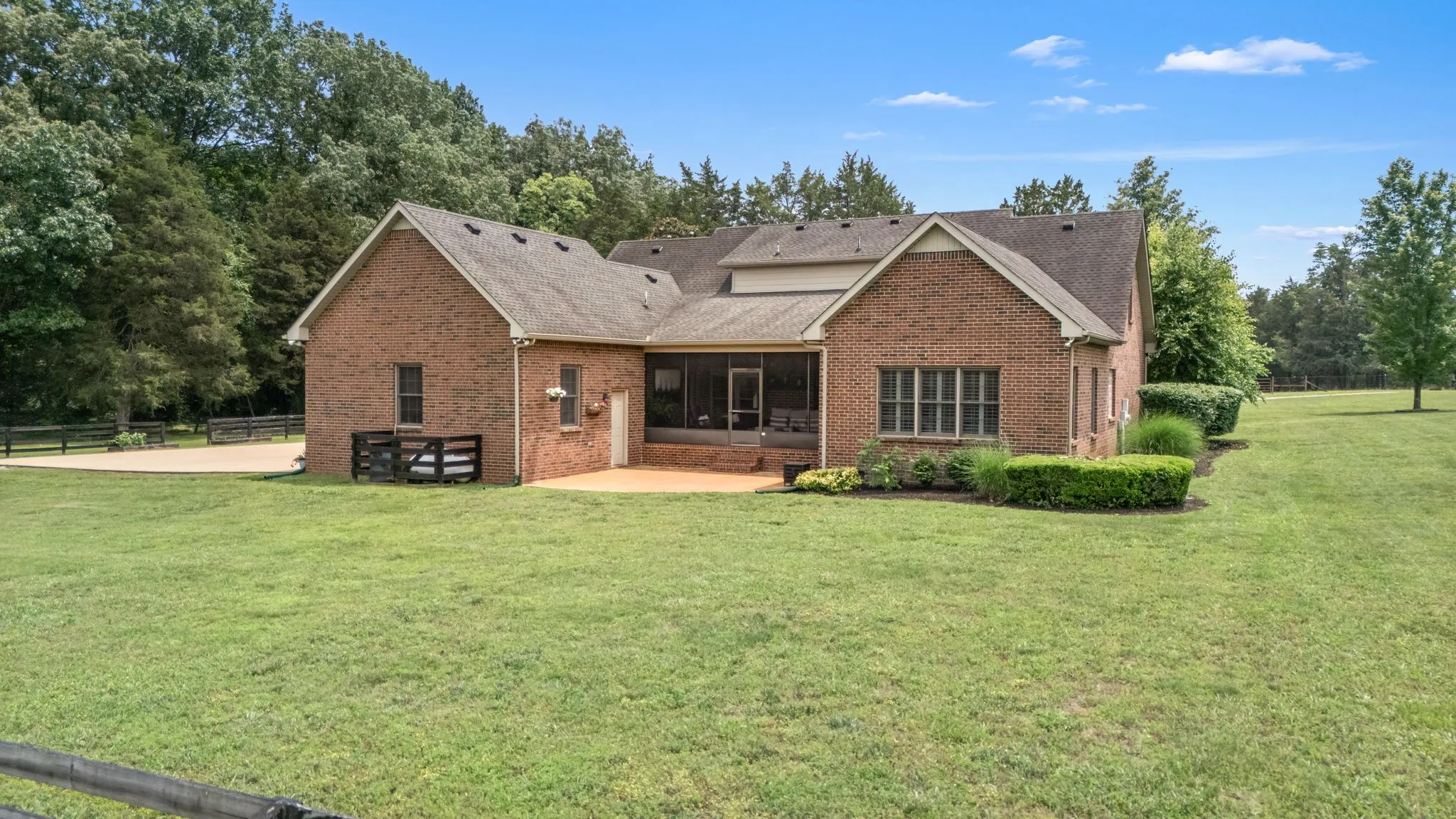Step into a home that blends comfort, charm, and practical upgrades in all the right places—set on 5 usable acres with fenced pastures ready for your animals. Septic permit is for 3 bedrooms. Home has 4 rooms that may be used as bedrooms, but only 3 are permitted for septic use. Floorplan in pictures. Tucked away at the end of the road with no backyard neighbors, this property offers privacy galore and peaceful surroundings. A versatile 3-bay outbuilding provides plenty of room for the boat, ATVs, and your recreational gear, adding to the everyday convenience of this beautifully maintained home. /// Inside, enjoy hickory hardwoods, plantation shutters throughout, and a kitchen with double ovens and soft-close cabinets. The kitchen is designed for everyday ease and entertaining alike, featuring double ovens, soft-close cabinetry, a farmhouse sink, walk-in pantry, and durable commercial-grade flooring. New paint on all trim, doors, and ceilings just prior to listing so you’ll find no smudges or fingerprints here! /// Enjoy meals in the spacious formal dining room, then unwind on the newly added screened porch—accessible from both the kitchen and the primary bedroom. An adjacent patio offers the perfect spot for grilling and outdoor gatherings. /// The main-level primary suite offers comfort and privacy, while two upstairs bedrooms are joined by a Jack-and-Jill bath and feature built-in study nooks. New carpet upstairs was installed days before listing. The mudroom entry off the garage includes a convenient half bath, and the laundry room is well-appointed with a sink, cabinets, and hanging space. The walk-in attic provides incredible storage potential. /// Freshly painted walls and ceilings, new gutters on the back of the home, and thoughtful design throughout make this home move-in ready!