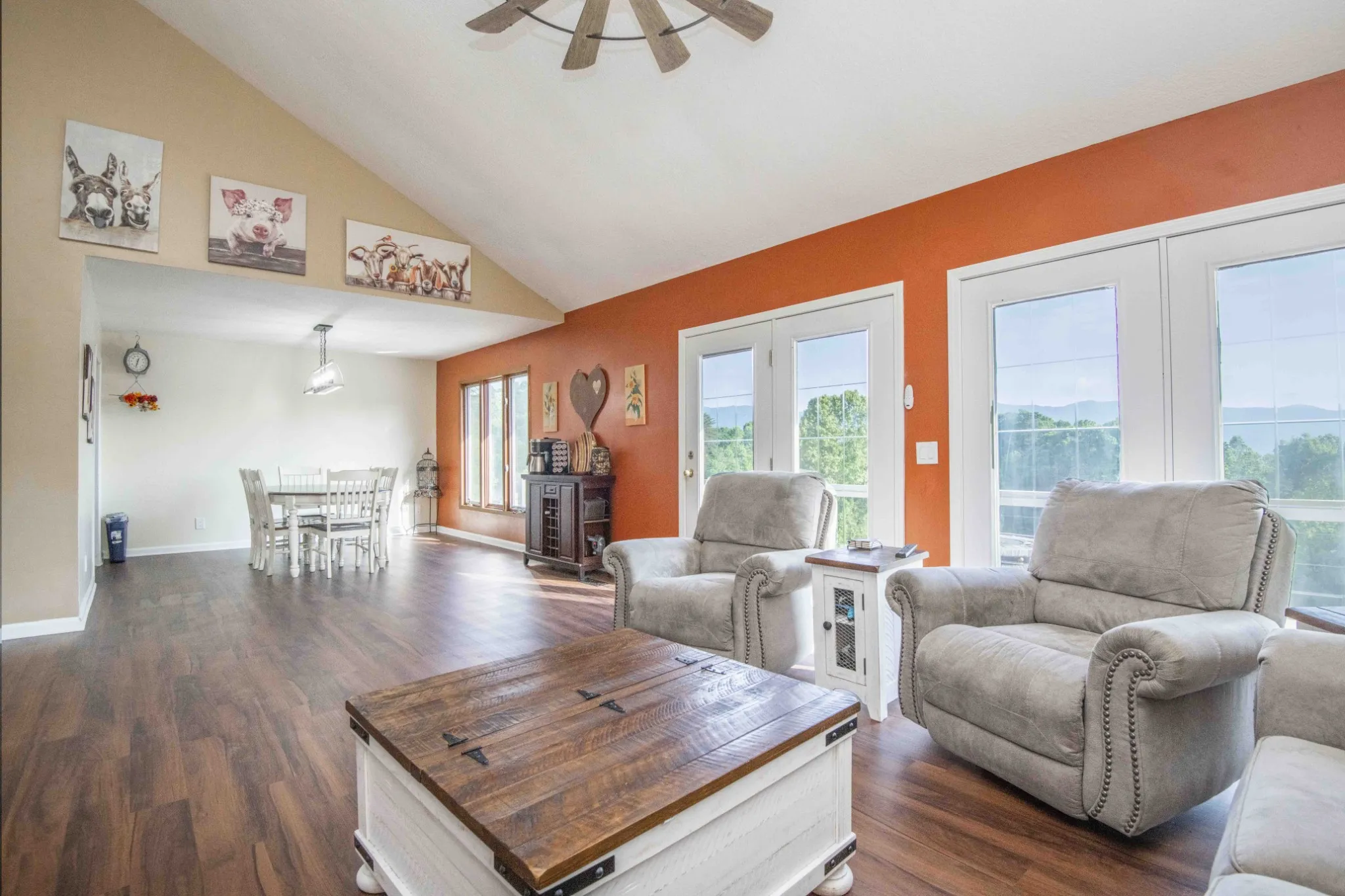 Huge PRICE REDUCTION! Welcome to your slice of peaceful Paradise or perfect Mimi Farm, surrounded by stunning mountain views. 813 Stiner Ln. has 5.3 gorgeous fenced acres with a Barn that has electric and water for your animals. Enjoy waking up with your morning coffee and sunrises or evening wine and sunsets on the 52′ deck being freshly painted. This beautifully maintained 3 bedroom, 3 bathroom basement rancher has had many updates, such as new flooring, new appliances, new sump pump, 4 yr old HVAC, 8 yr old roof, a 10×16 storage building for your yard tools, and more. The large Master bedroom and ensuite are on the main level as well as a guest room and ensuite, living/dining room, fireplace, kitchen and garage, while the 3rd bedroom / ensuite is downstairs with a rec room, fireplace and a large bonus room that can be an office, workout room, craft/hobby room or just extra storage for your holiday decor. A peaceful creek runs along the bottom of the property line and acts as a boundary. There are multiple riding trails so close, there is no need to trailer your ATVs and Powell Valley Marina on Norris Lake is only 4 miles away while LaFollette Golf course is 5 miles down the road. If this sounds like your kind of Paradise, don’t wait, schedule your private showing Today! Sellers are relocating and are under contract on a home in another state. Entertaining ALL OFFERS!
