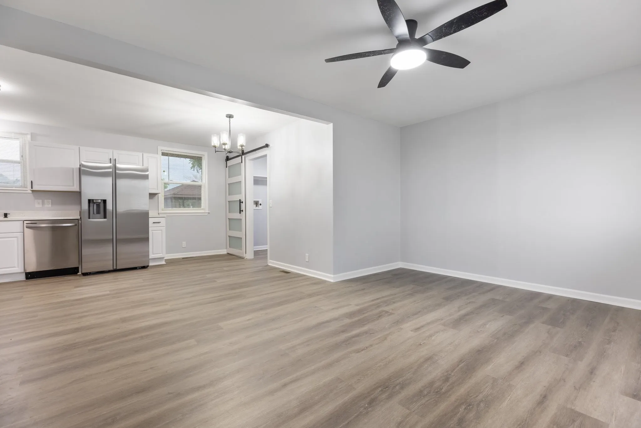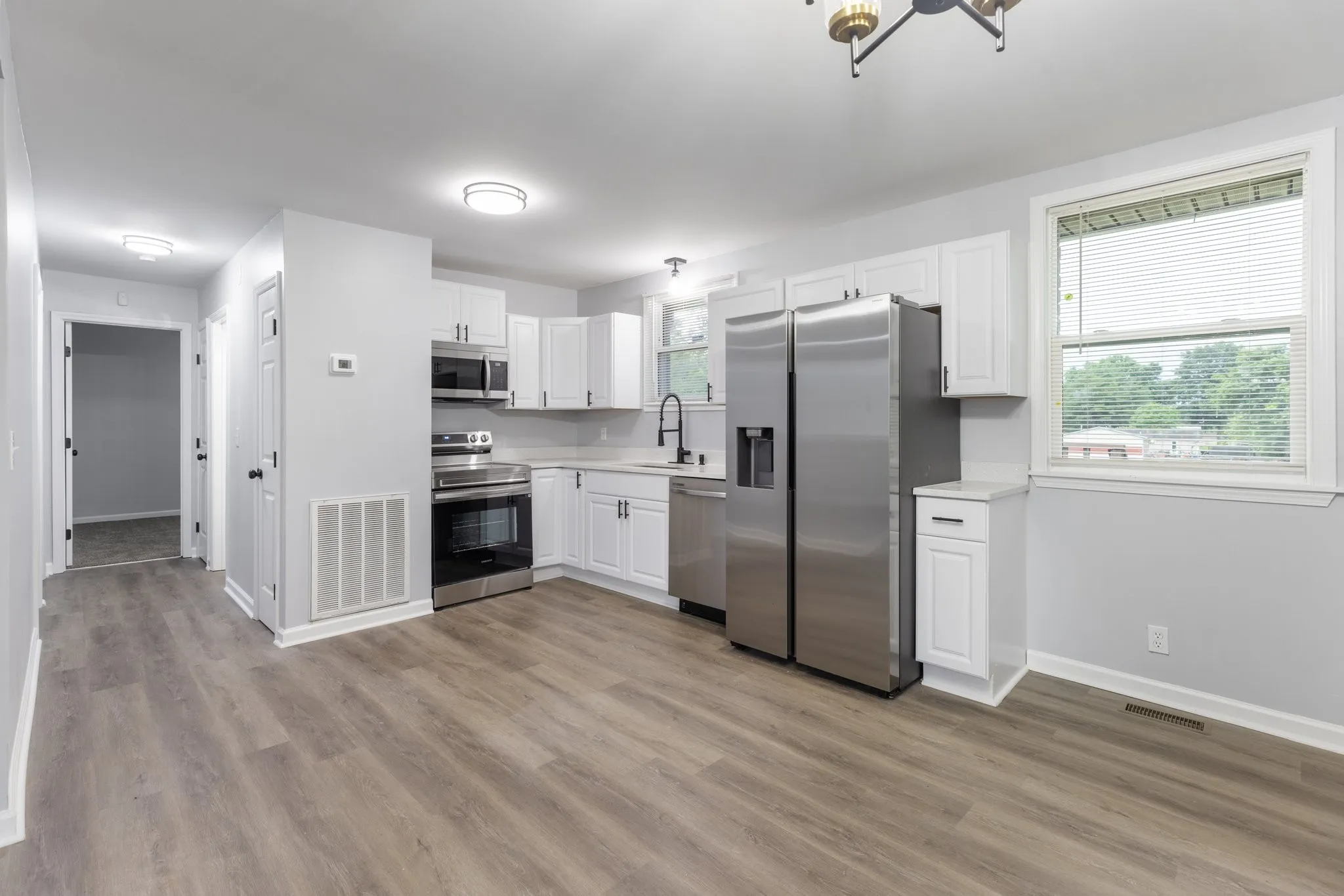 Discover this beautifully renovated ranch-style home situated on a spacious 0.49-acre lot. This 3-bedroom, 1-bathroom residence has been completely updated with new flooring and fresh paint throughout. The open-concept kitchen features brand new sink, cabinets, countertops, and appliances. The bathroom has been fully remodeled, combining style with functionality.
