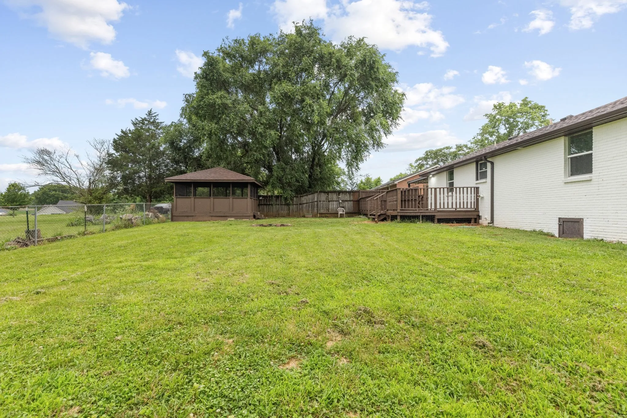 Additional upgrades include a new HVAC system, a new roof, and new gutters, ensuring you can move in with complete peace of mind. The backyard offers a fenced area and a screened gazebo, perfect for enjoying the outdoors. There’s also more cleared and usable land just beyond the fence!
