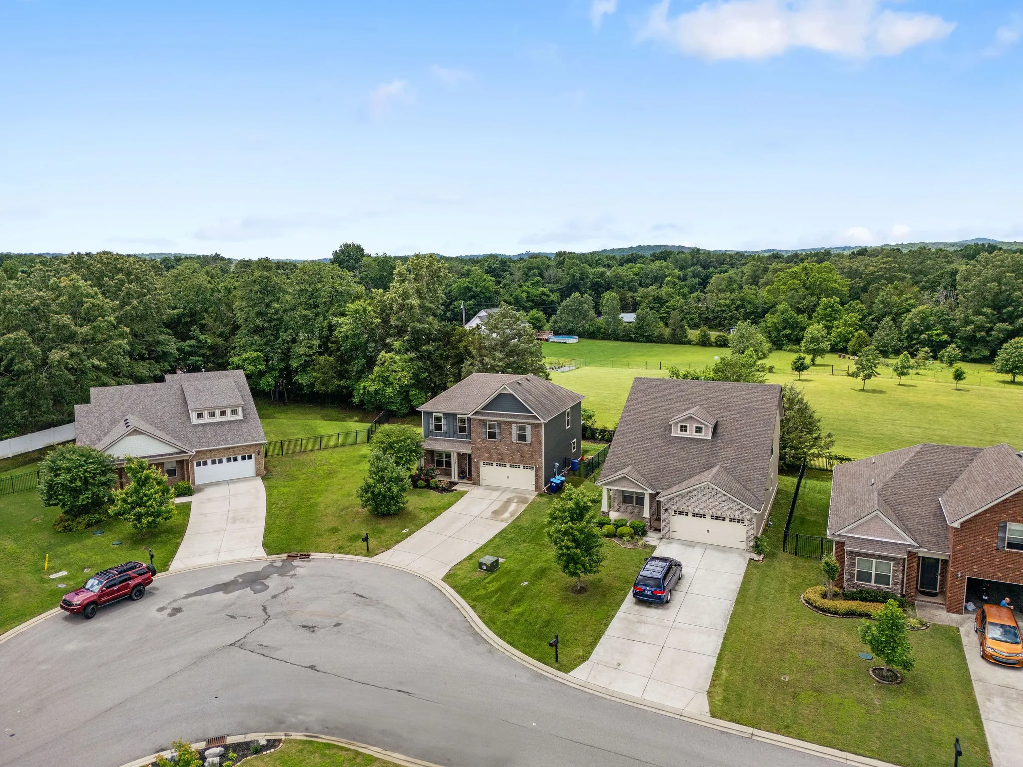 Welcome to this STUNNING 4 Bedroom, 2/1 Bath home in the great neighborhood of South Haven in Murfreesboro! Located at the end of a street on a cul-de-sac, enjoy endless privacy and peace. As you walk up to the home, you’ll notice the covered porch—perfect for sipping morning coffee and enjoying the serene neighborhood. Step through the front door and into a spacious living room with a ceiling fan that instantly makes you feel at home. Natural light pours in through plentiful windows, brightening every corner. French doors open into the dining area, which flows seamlessly into the kitchen. The GORGEOUS kitchen features dark wood cabinetry and fresh granite countertops – an entertainer’s dream! There’s even a window above the sink so you can take in peaceful backyard views while doing dishes. Downstairs also includes a laundry room for added convenience. Upstairs, you’ll find the oversized primary bedroom complete with ceiling fan and beautiful tray ceilings. The primary suite includes a HUGE walk-in closet and a luxurious bathroom with a giant soaking tub, separate shower, and dual sinks. The additional upstairs bedrooms are spacious and multifunctional – perfect as a bonus room, home gym, or office. Outside, enjoy a private covered back porch and a STUNNING tree-lined view. This home is complete with a 2-car garage, keeping you and your vehicles protected from the weather year-round. This community has it all – with a community pool and playground as well! Schedule a showing and make this one yours TODAY!