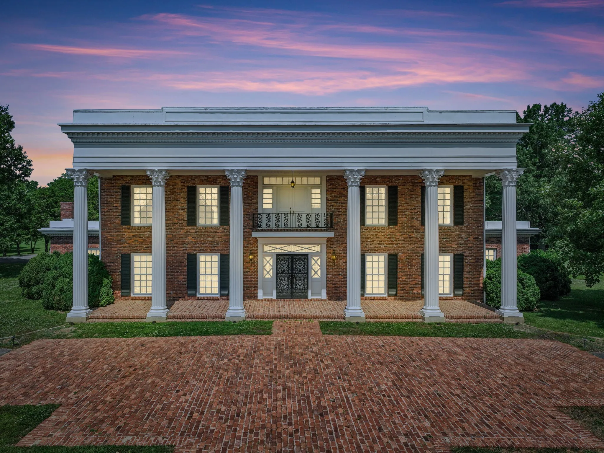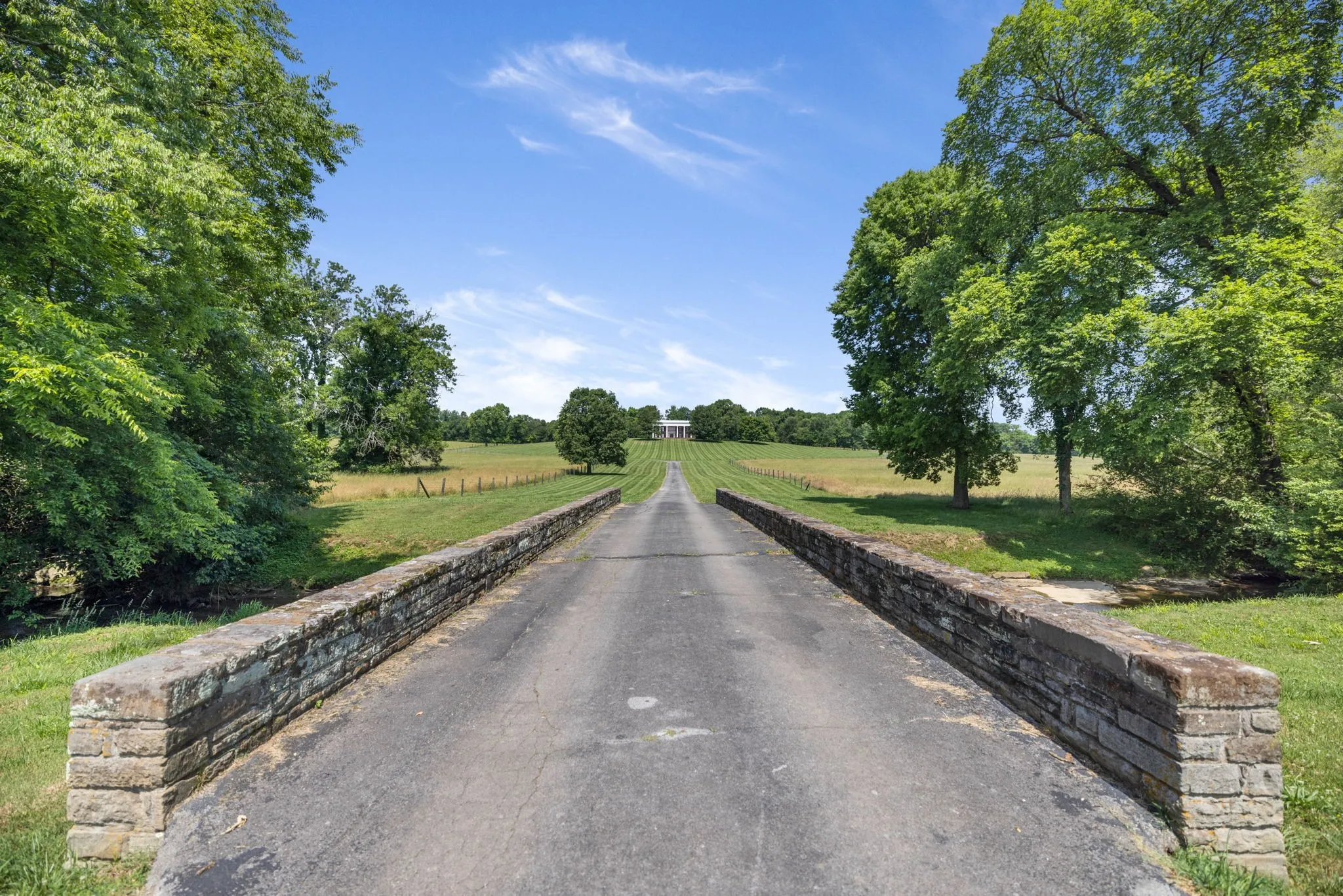 Perched atop picturesque rolling hills, this enchanting estate offers an expansive view of the surrounding landscape. Six stately Corinthian columns create a grand entrance, while a quaint bridge spans a stream winding through the property’s verdant acreage. Ten acres of wooded land provide a haven for wildlife enthusiasts on this sprawling 85-acre retreat. Featuring 6 bedrooms and 5.5 baths, including a main-floor primary suite, this residence offers ample space for comfortable living. A home office, refreshing in-ground pool, & a three-car garage complement the spacious back porch, ideal for gatherings. Noteworthy is the historic brick facade, salvaged from a downtown Nashville landmark, lending character to the home. While boasting timeless appeal, this property offers the opportunity for modern updates to suit individual tastes. Welcome to a world of tranquility & potential. Buyer/Buyers agent to verify all pertinent information, including school zones. Agent is related to sellers.
