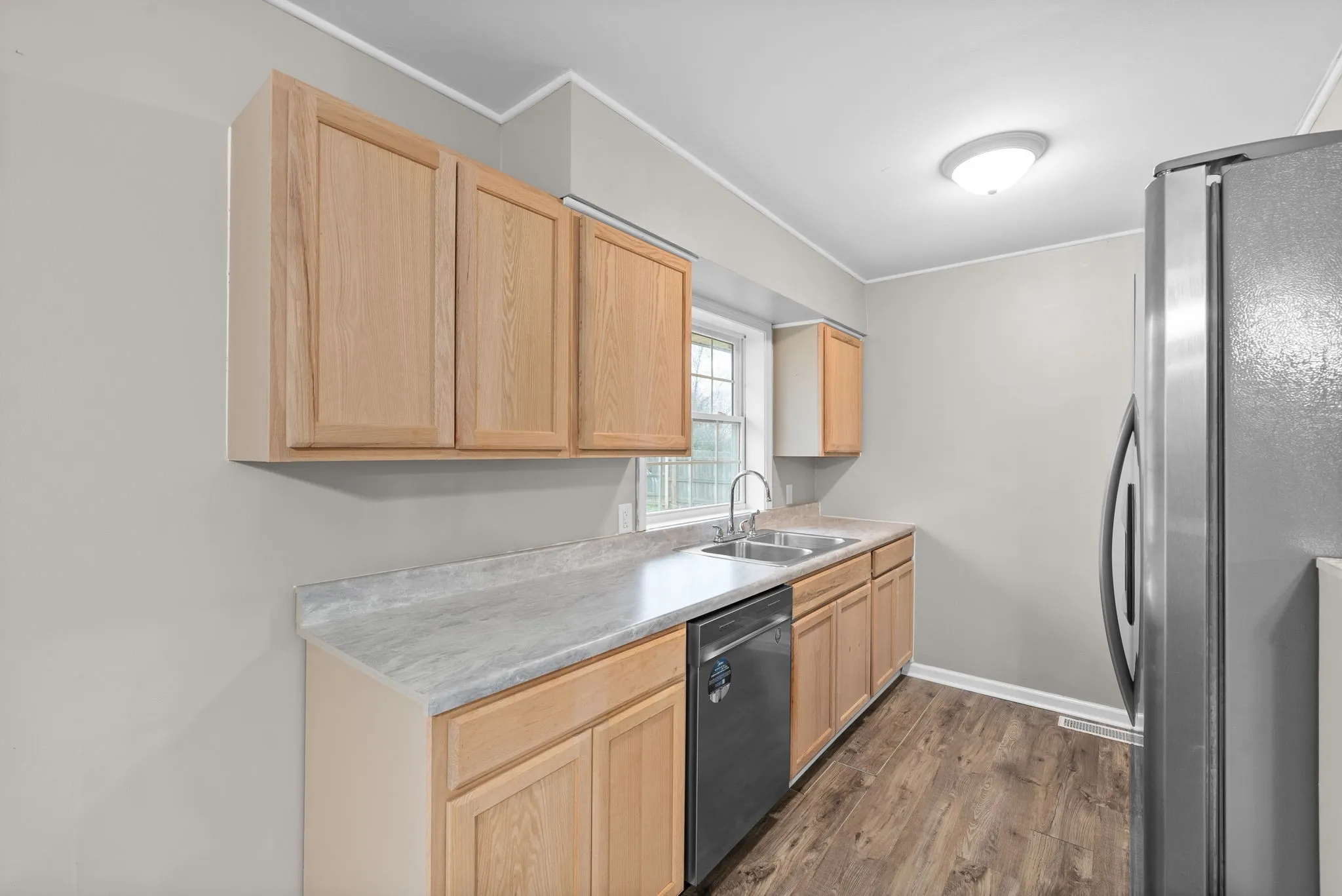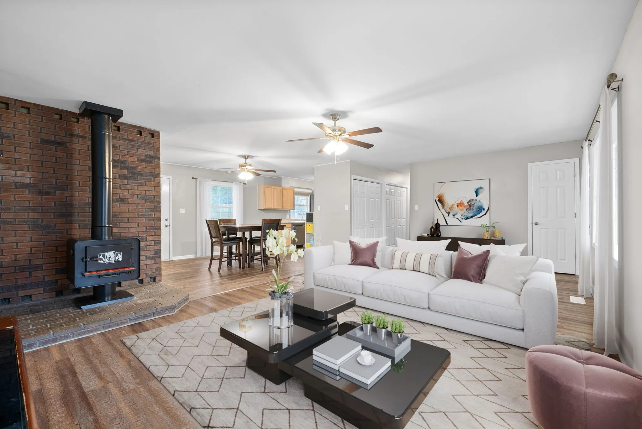 Charming All-Brick Ranch with Modern Updates and Outdoor Appeal Step into this beautifully updated all-brick ranch home that blends timeless charm with modern conveniences. Relax on the inviting covered front porch, perfect for enjoying a quiet morning coffee or an evening breeze. Inside, the open floor plan seamlessly connects the living room, dining area, and kitchen, offering a bright and spacious layout ideal for entertaining. The home features durable laminate flooring & hardwood in the bedrooms, complemented by a cozy wood-burning fireplace, creating a warm and welcoming ambiance. The remodeled kitchen boasts sleek stainless-steel appliances, updated cabinetry, and modern finishes, making meal prep a delight. Outside, enjoy the privacy of the fenced backyard, complete with a patio perfect for barbecues or outdoor gatherings. The oversized paved driveway and a 24’ x 20’ detached garage provides ample space for parking, storage, or a workshop. Updated windows bring in plenty of natural light, adding to the home’s energy efficiency and appeal. This move-in-ready gem combines comfort, style, and convenience in one package—don’t miss out on making it yours!