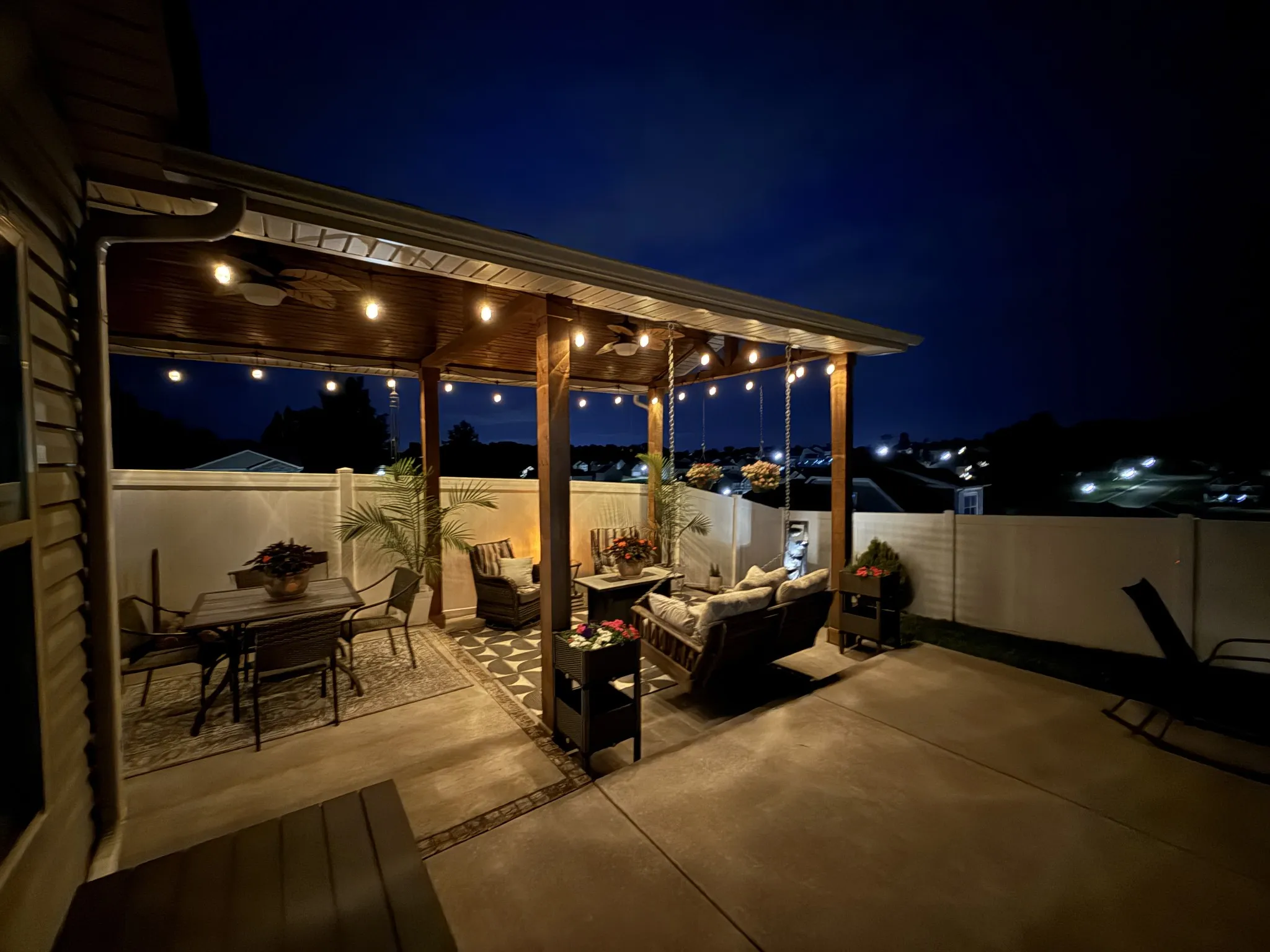 "LongDescription" => "String lights and cozy seating create the perfect nighttime escape — peaceful, private, and picture-perfect."