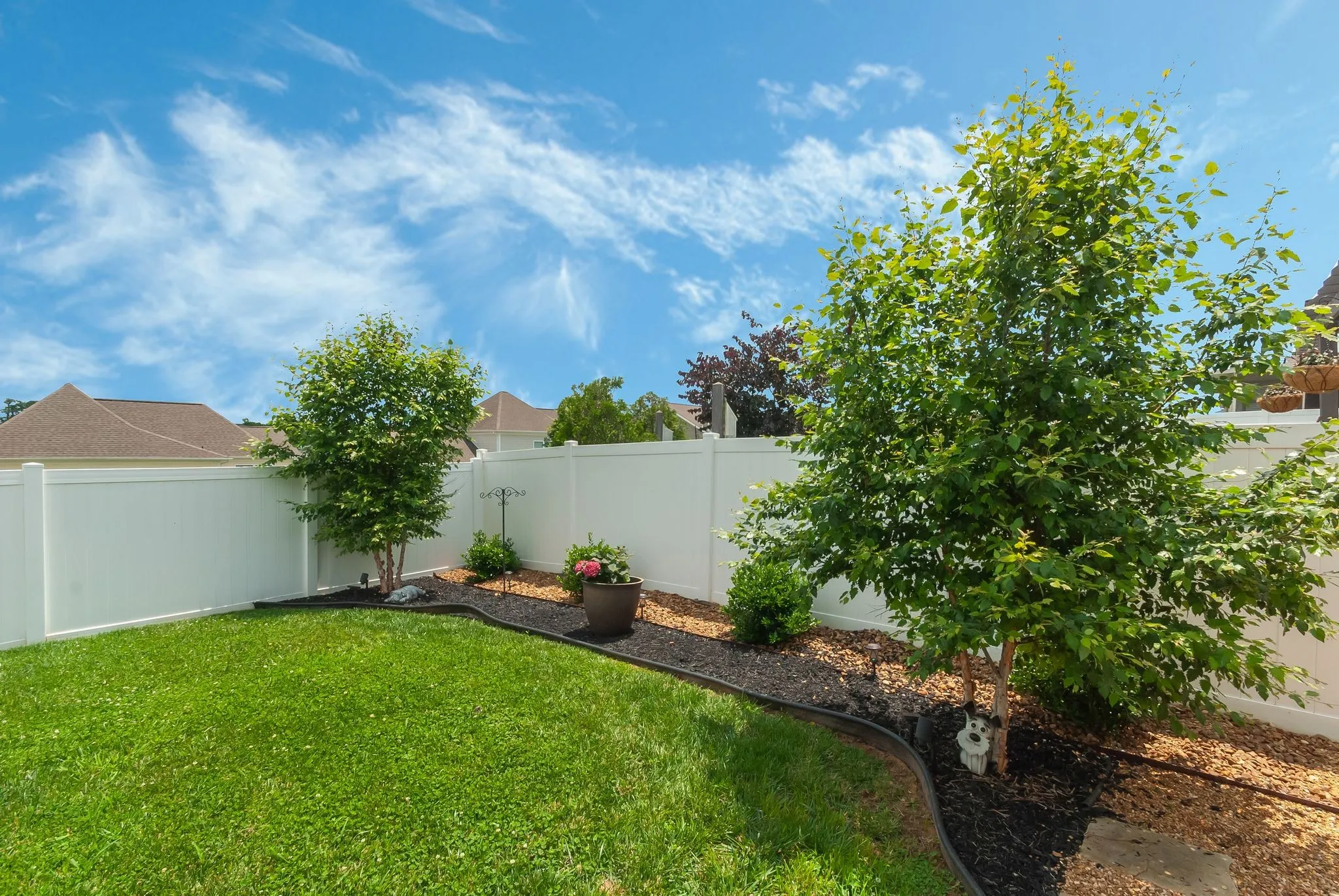 "LongDescription" => "Fenced and thoughtfully landscaped with fresh sod, trees, and drainage — ready for pets, play, or peaceful lounging."