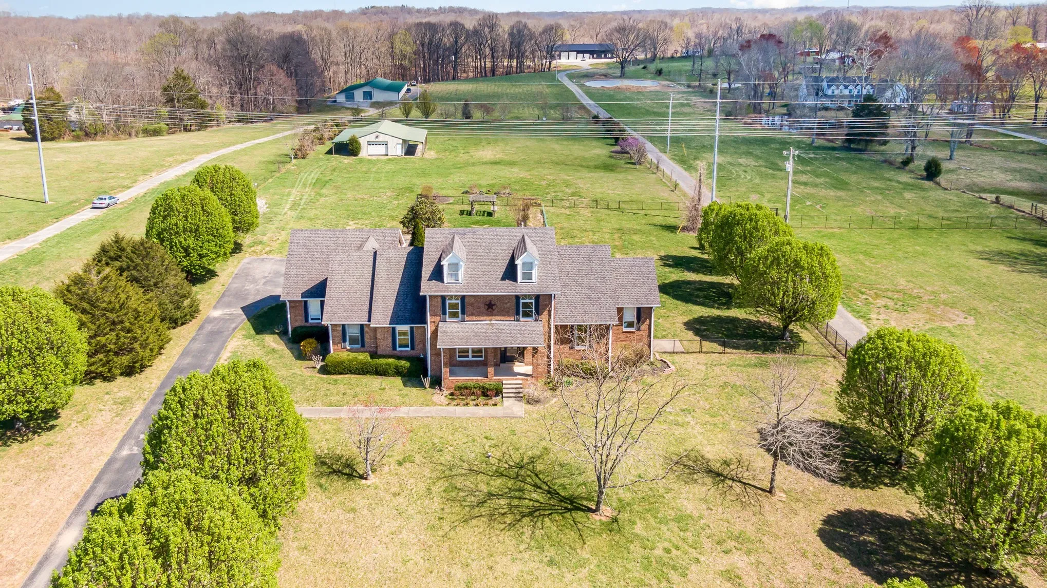 Beautiful home on 5.66 acres been renovated. 4300 Approximate sq foot brick home. 30×50 pole barn. 12×25 covered space for equipment. 20×40 inground pool. Inside renovations kitchen has been completely redone with painted cabinets, island granite. pantry, flooring, and stainless-steel appliances, lighting, flooring thru-out primary bedroom on the main level with a bathroom that is gorgeous. Large spacious tile shower, soaking tub, very roomy California closets to hold lots of clothes. All rooms are very oversized with family room, Florida room, eat in kitchen, 2 bedrooms upstairs with a kid’s bonus room, flex room, plus another room could be a 4th bedroom, theater room, den, office. Updated colors, flooring, tile, fixtures, doors, lighting, In the country but city close fenced with gate entrance. Upstairs has 1058 of attic unfinished. Great for entertaining covered patio and porch plus patio around the pool. Florida room overlooking pool great for an office, custom front doors, NEW 50-year roof and gutters plus down spouts, and pool pump. bring your horses and cattle and chickens and enjoy your rural living with city close
