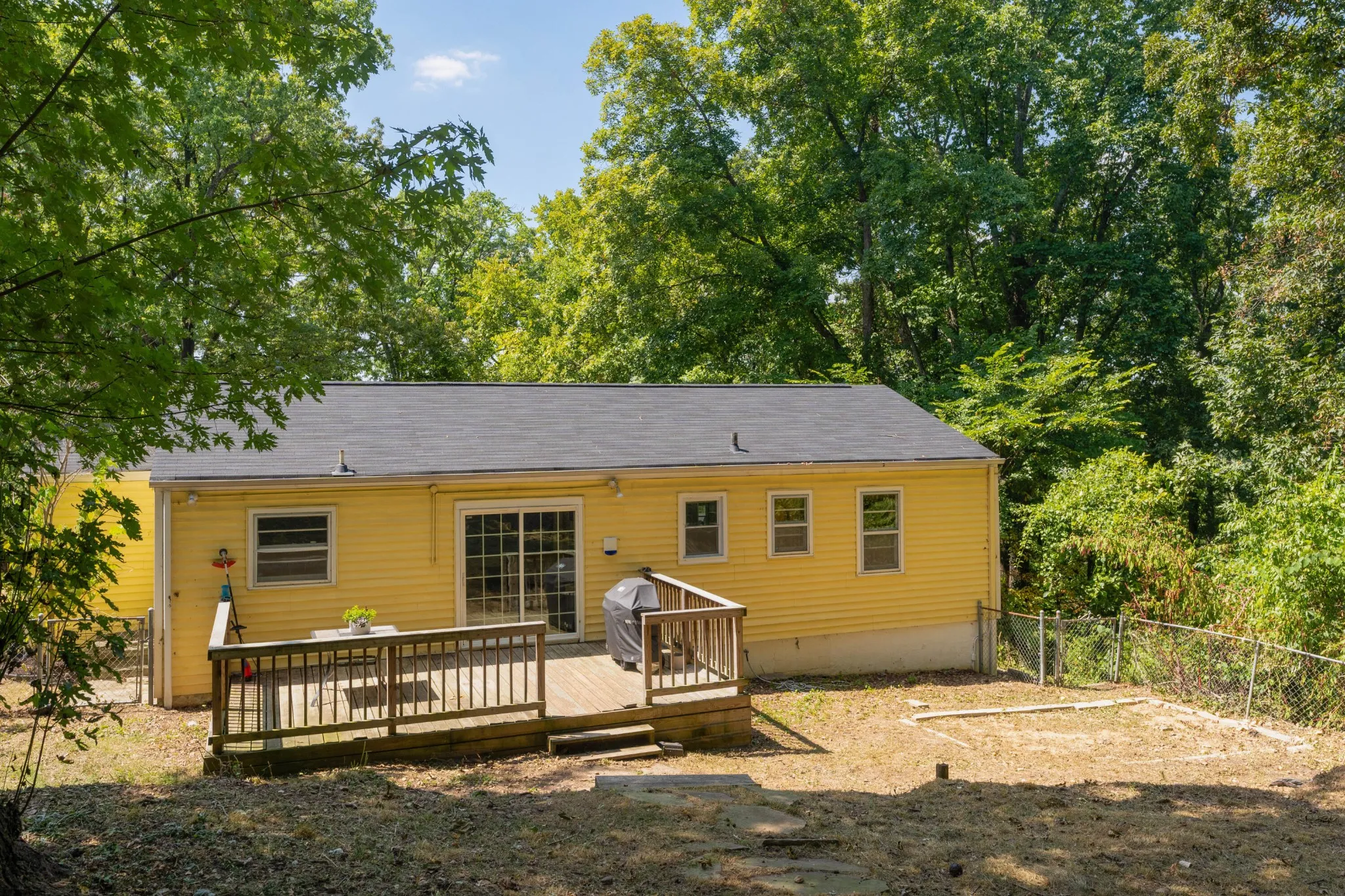 Super-versatile, 4 bedroom, 3.5 bath home just 10 minutes from downtown Chattanooga and convenient to schools, hospitals, shopping, restaurants and more! This one level over a finished daylight basement will appeal to a variety of lifestyles with en-suite bedrooms on both levels and many recent updates, including newly landscaped front yard, over-seeded and cleared back yard, new LVP flooring and paint in the basement, and a new sew sewer line. The main level has a formal living room, a kitchen with a double sink, stainless appliances and a pass-through counter to the dining room. The dining room has a sliding glass door to the rear deck, providing a nice flow for indoor to outdoor entertaining and a central location to keep an eye on kids or pets in the fenced back yard. There are 3 bedrooms and 2 baths on the main level, including the primary which has a private bath with a pedestal sink and separate shower, while the hall guest bath has a tub/shower combo. Head downstairs where you will find a family room with built-in cabinetry, separate exterior access, a half bath and a second bedroom suite with a large private bath that has a dual vanity with vessel sinks, a garden tub, separate shower and laundry room. This level could easily be used as separate living quarters or a more private master retreat. Simply a fantastic opportunity for the buyer seeking a home in an established neighborhood close to downtown Chattanooga so please call for more information and to schedule a private showing today. Information is deemed reliable but not guaranteed. Buyer to verify any and all information they deem important.