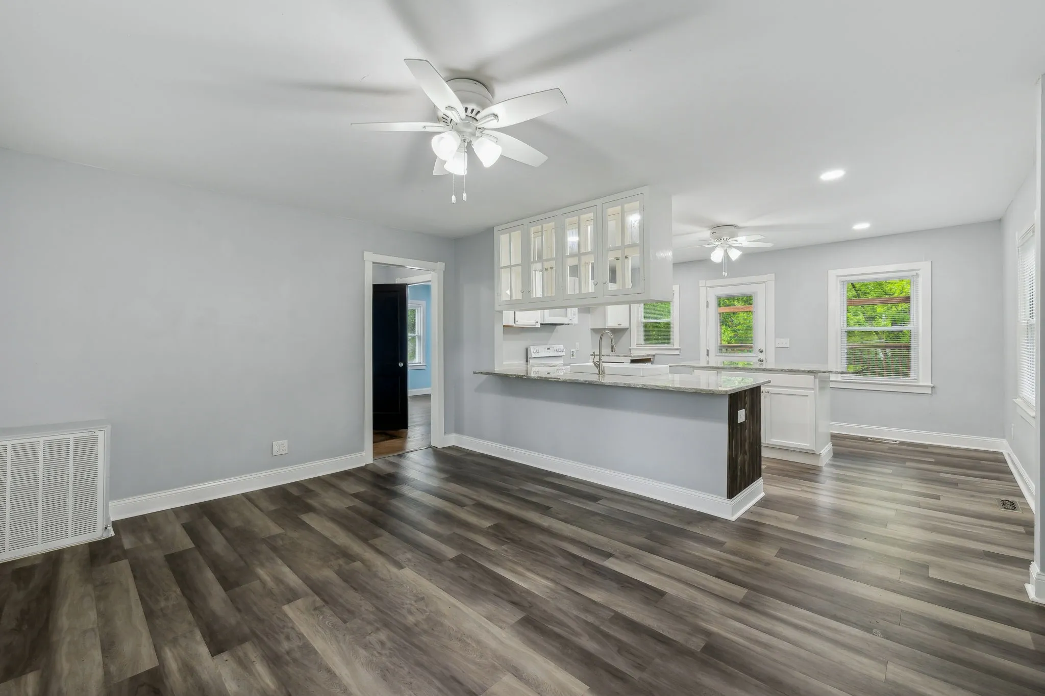 Open Sunday, June 22 from 2 to 4. Completely renovated from top to bottom, 1700 Owen Ave blends classic charm with modern comfort. This 2-bedroom, 1-bath home offers quality finishes throughout, including durable LVP flooring in the main living areas and refinished hardwoods in the hallway and bedrooms. The kitchen features white cabinetry, granite countertops, an oversized farmhouse sink, and a convenient combo washer/dryer unit. The bathroom includes a new tub with timeless tile surround and updated fixtures. Recent improvements include new plumbing, electrical, insulation, drywall, a new roof, and a 2021 HVAC system with all-new ductwork. Ceiling fans add comfort throughout, and the tall crawl space provides additional storage. Outside, enjoy a private, tree-lined backyard with a spacious 16×16 deck—perfect for relaxing or entertaining. A gravel driveway offers off-street parking. Zoned for Highland Park Elementary, Whitthorne Middle, and Columbia Central High. Just minutes from downtown Columbia, this fully renovated home is a standout opportunity in a convenient location.