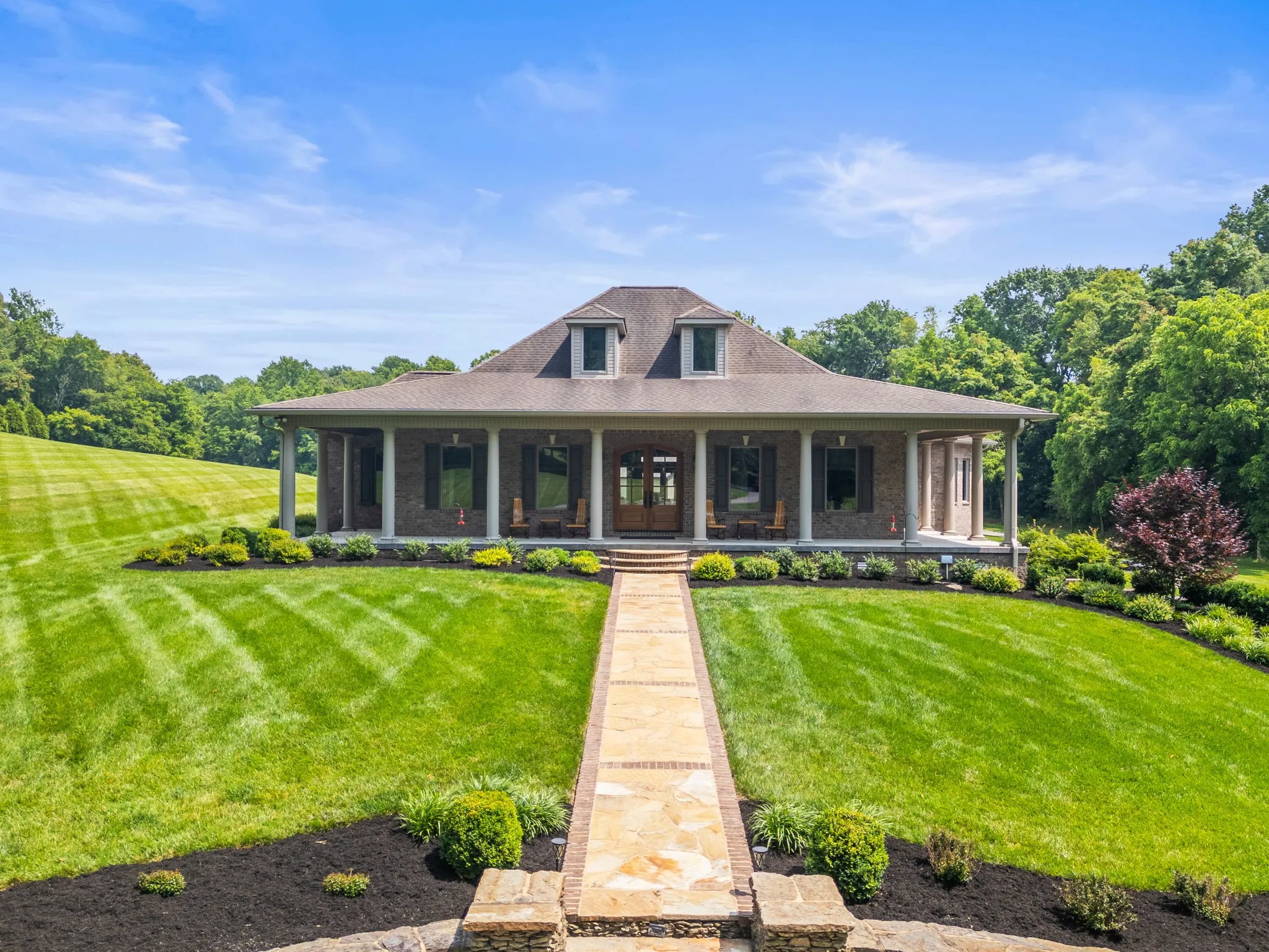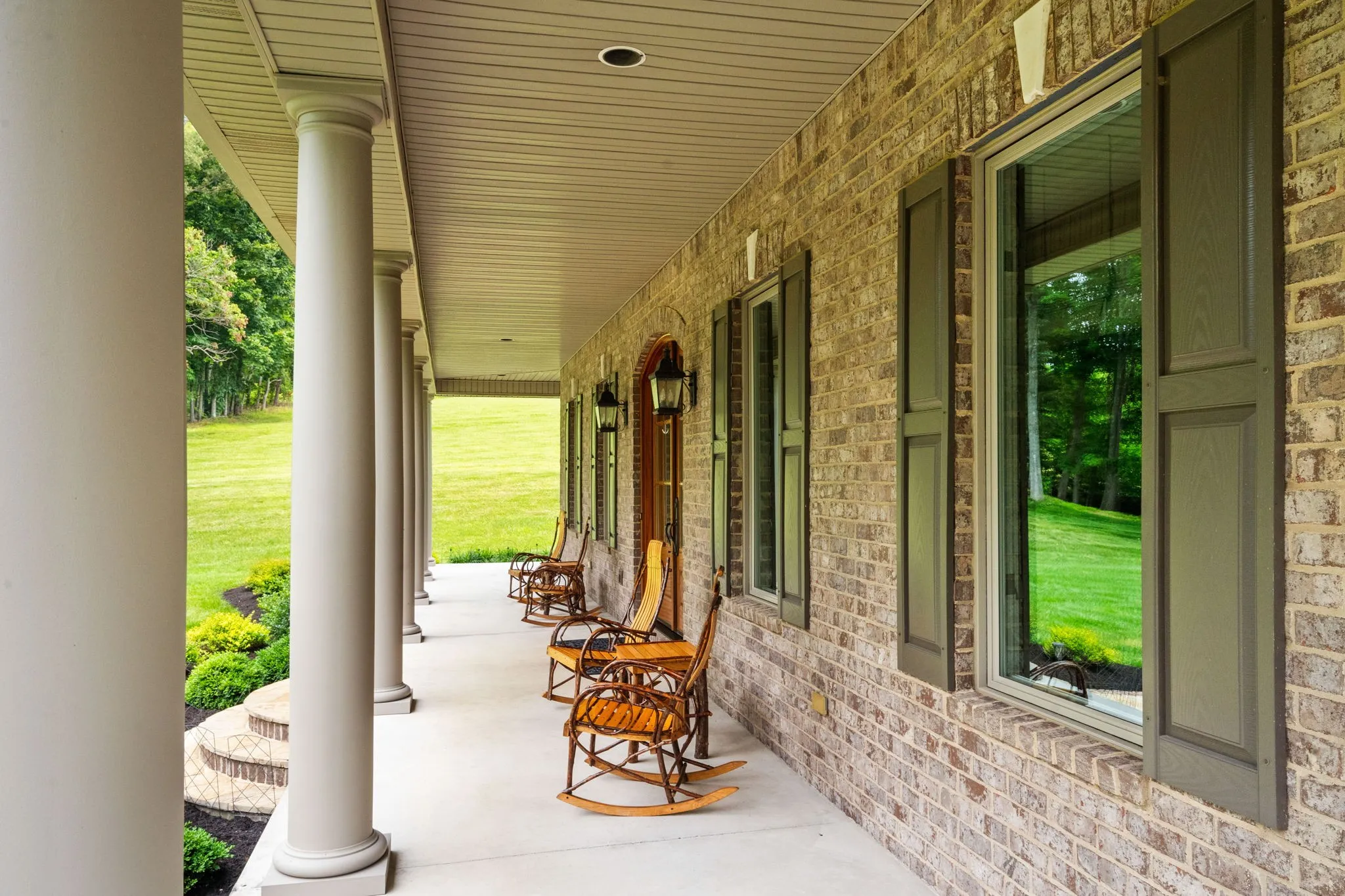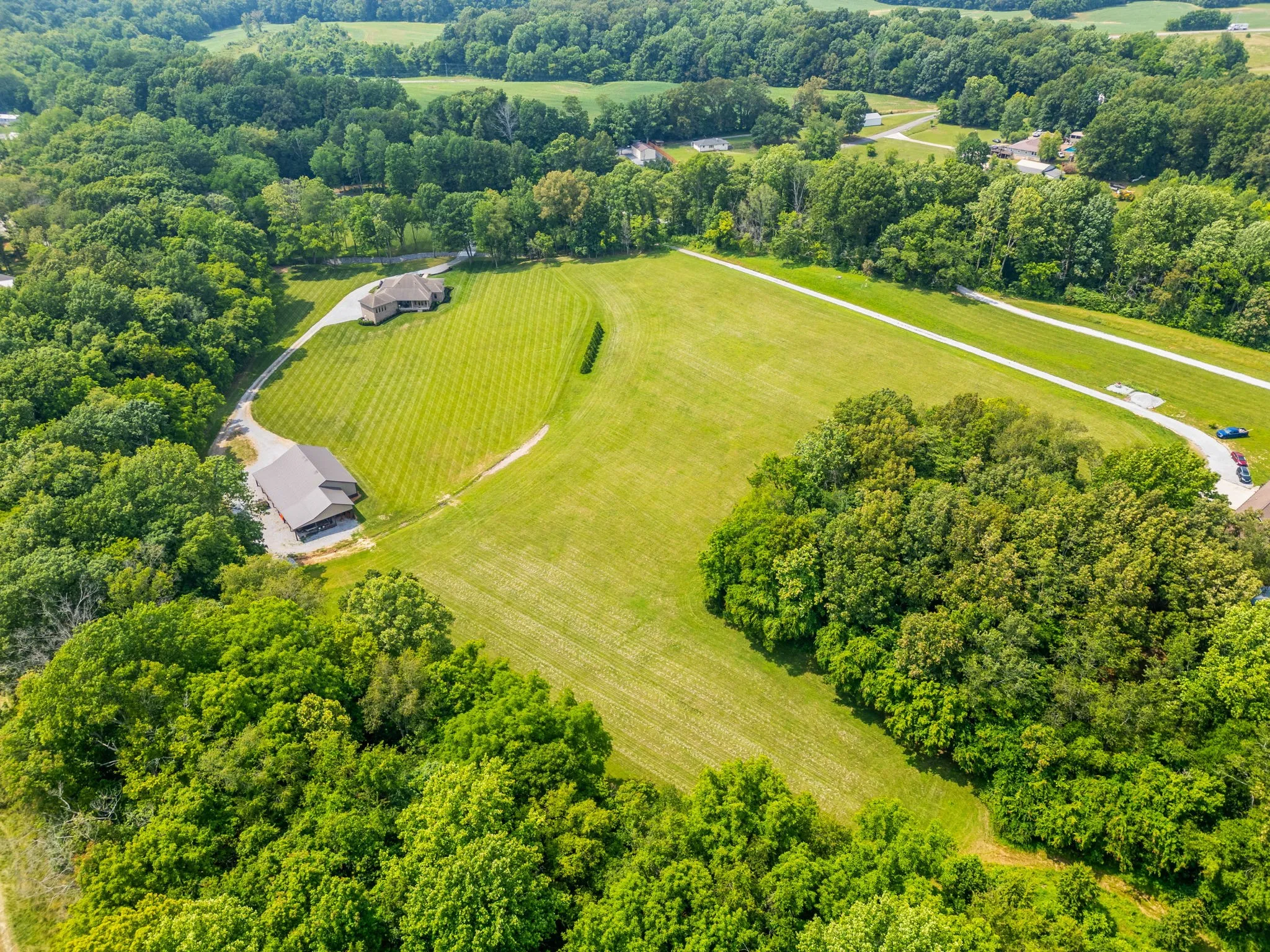 +"PublicRemarks": "This beautiful custom home with timeless design has 12 acres of manicured privacy. The stunning all-brick estate with wrap around porch, huge columns and a set of solid mahogany front doors lead into an open concept that is warm and inviting. Home features a 9x18 foyer with barrel ceiling, chef's kitchen w/ss appliances, DCS gas range and double ovens, the solid maple cabinetry, granite counter tops w/stone back splash, Bosch dishwasher, walk-in pantry w/extra shelving for storage, great rm with stone fireplace, surround sound and custom built-in cabinets and lighted shelving, crown molding throughout tells you this house was all custom built. Heirloom qualities in this home are on full display, ceilings that are 10, 12 and 15 ft, 6 ft casement windows for natural light, custom black-out shades when needed, handmade white oak flooring, porcelain tile and natural stone tile, french doors leading out to patio from primary and living rms, landscaping 2 yrs old with irrigation. Basement with 10 ft ceilings, a flex room thats 17x27 (3rd bedroom) 2 separate garage doors with workshop between. All attached shelving and cabinets will remain. 56x90 bldg with 40x60 enclosed. This property could easily be converted into a mini farm and the building into a stable. LOCATION, LOCATION, LOCATION. This property is minutes off I-24W, 30 min. from Nashville and 20 min. from Clarksville."