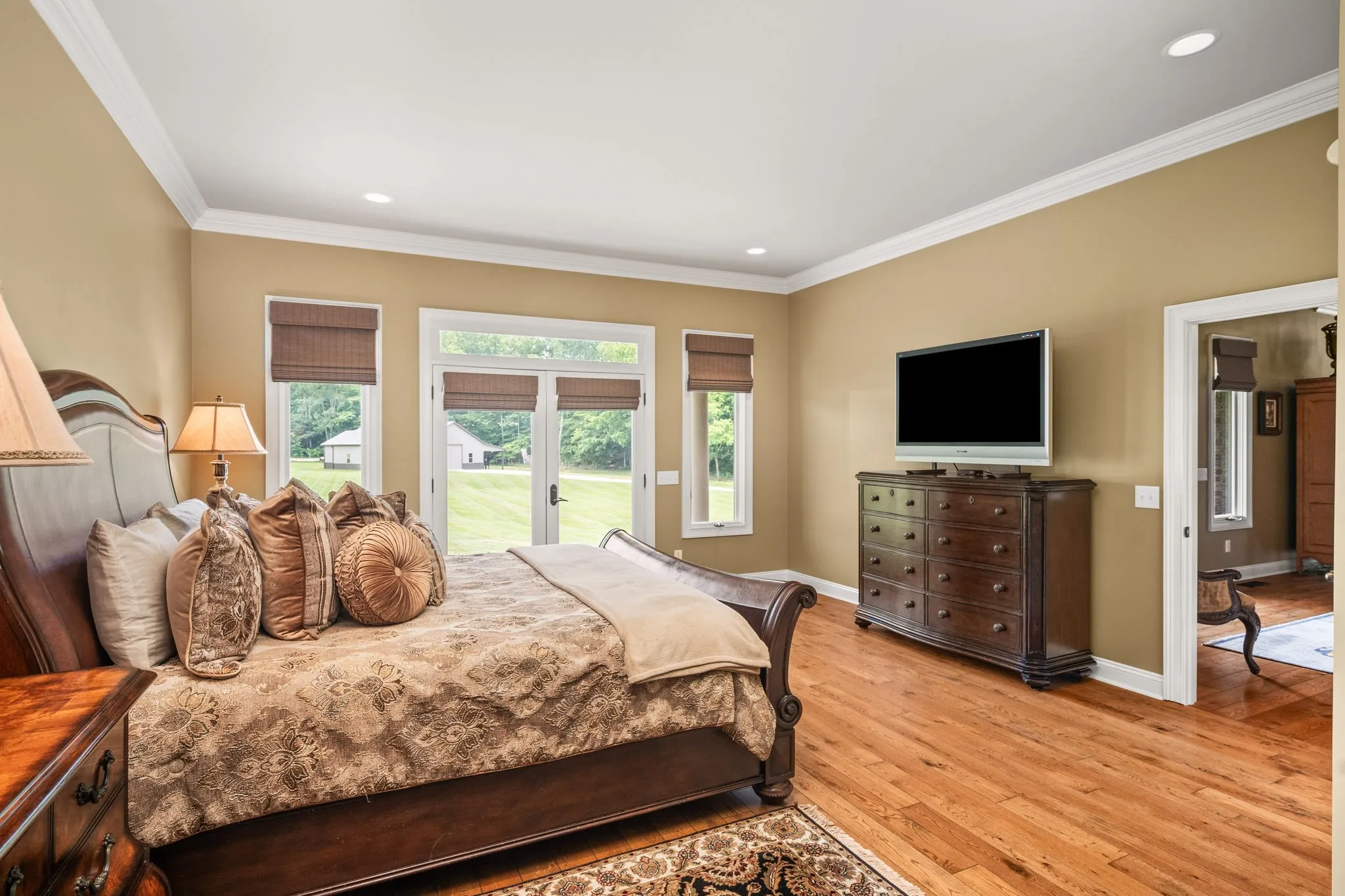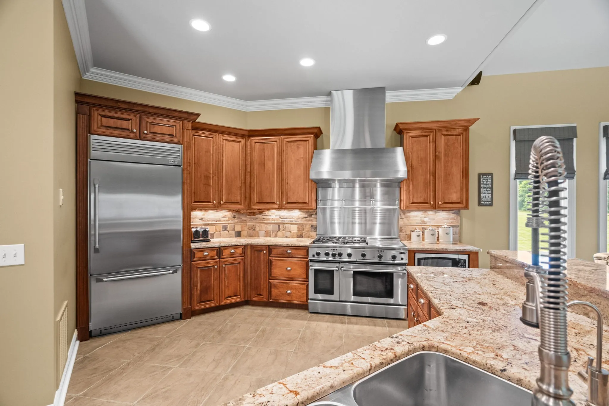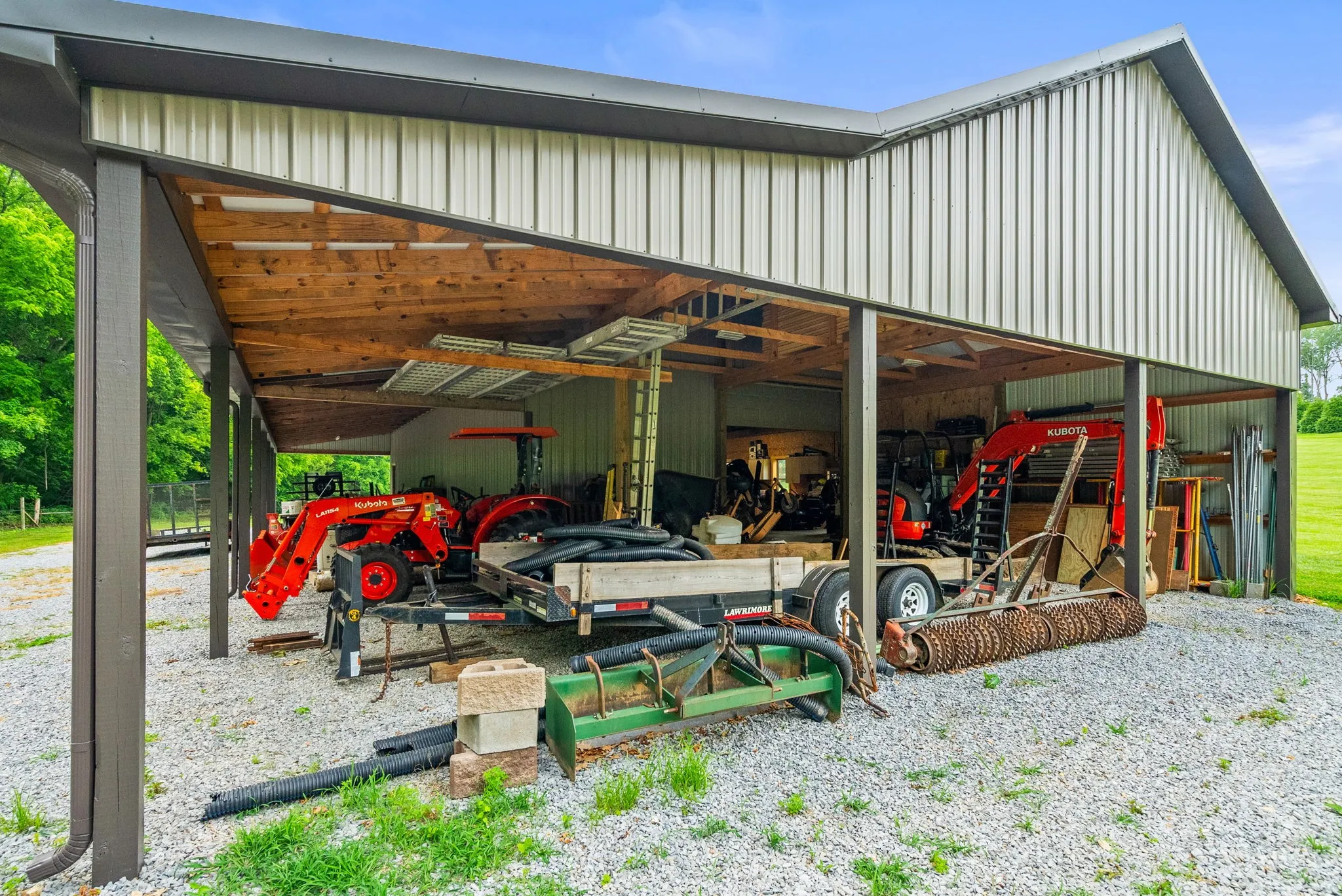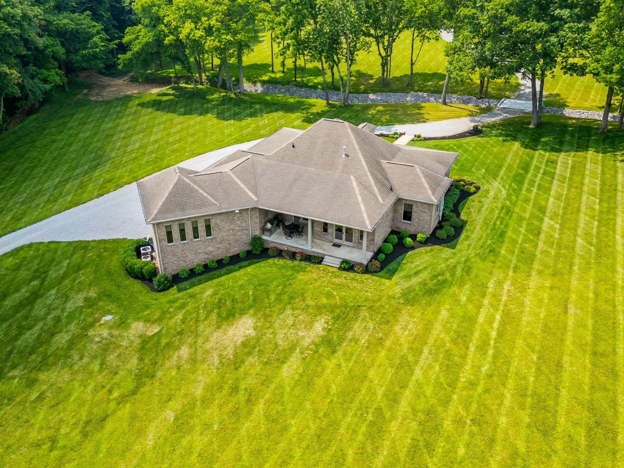 +"PublicRemarks": "This beautiful custom home with timeless design has 12 acres of manicured privacy. The stunning all-brick estate with wrap around porch, huge columns and a set of solid mahogany front doors lead into an open concept that is warm and inviting. Home features a 9x18 foyer with barrel ceiling, chef's kitchen w/ss appliances, DCS gas range and double ovens, the solid maple cabinetry, granite counter tops w/stone back splash, Bosch dishwasher, walk-in pantry w/extra shelving for storage, great rm with stone fireplace, surround sound and custom built-in cabinets and lighted shelving, crown molding throughout tells you this house was all custom built. Heirloom qualities in this home are on full display, ceilings that are 10, 12 and 15 ft, 6 ft casement windows for natural light, custom black-out shades when needed, handmade white oak flooring, porcelain tile and natural stone tile, french doors leading out to patio from primary and living rms, landscaping 2 yrs old with irrigation. Basement with 10 ft ceilings, a flex room thats 17x27 (3rd bedroom) 2 separate garage doors with workshop between. All attached shelving and cabinets will remain. 56x90 bldg with 40x60 enclosed. This property could easily be converted into a mini farm and the building into a stable. LOCATION, LOCATION, LOCATION. This property is minutes off I-24W, 30 min. from Nashville and 20 min. from Clarksville."