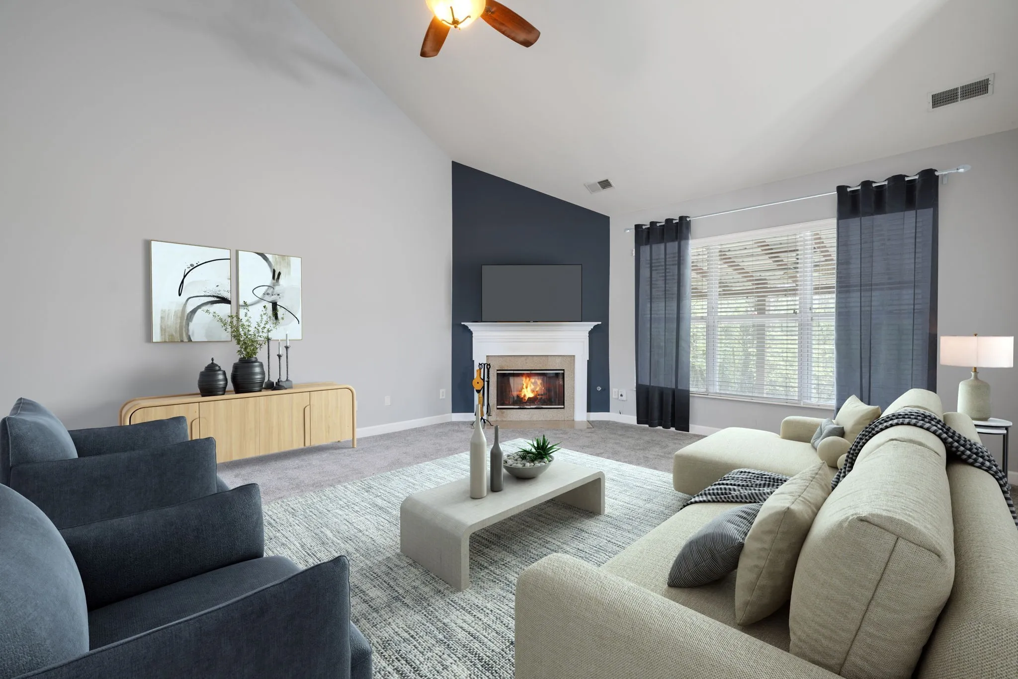 Interior Features High Ceilings, Kitchen Island, Pantry, High Speed Internet, Entrance Foyer, Ceiling Fan(s)