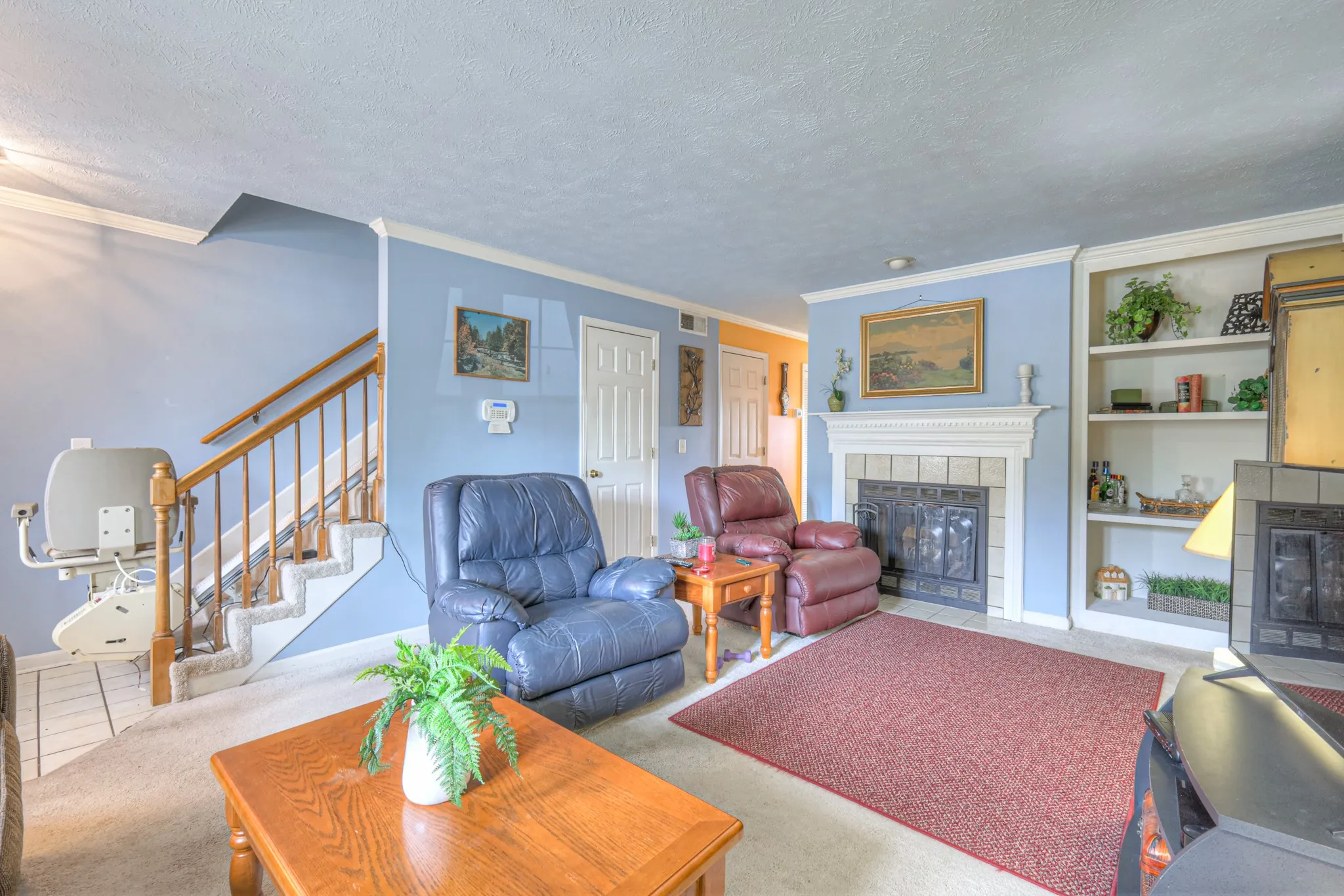 Lovely 2-story townhome featuring a welcoming living room with a fireplace and built-in bookcase. The cozy kitchen offers efficient space and charm, opening to a private, fenced back patio—perfect for relaxing or entertaining. 2 bedrooms and 2 full baths on the second level. Recent updates include new windows (March 2022) and a brand-new HVAC system (June 2024), offering peace of mind for the new owner. Convenient layout and low-maintenance living make this home a great option! 5 minutes to I-24, shopping, restaurants and entertainment. Chair lift for easy access to the second floor.