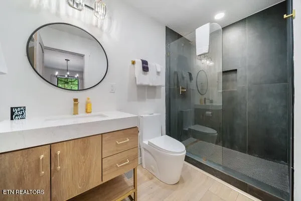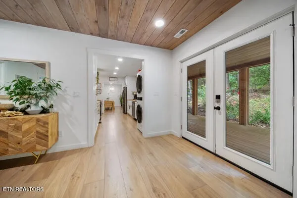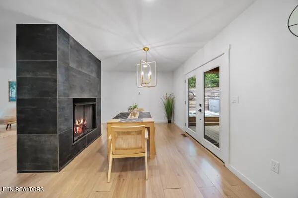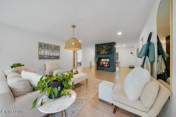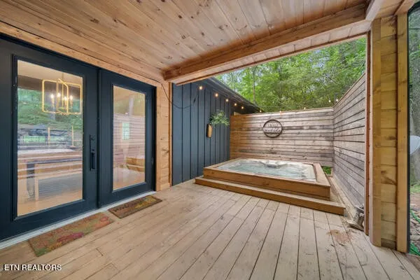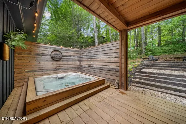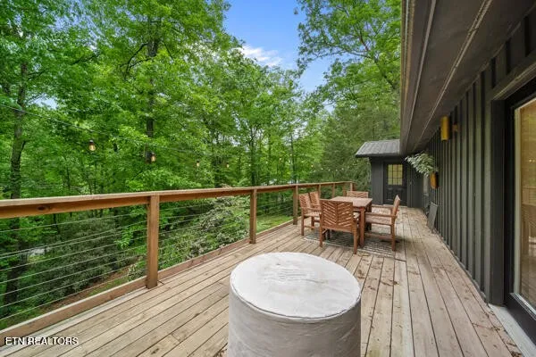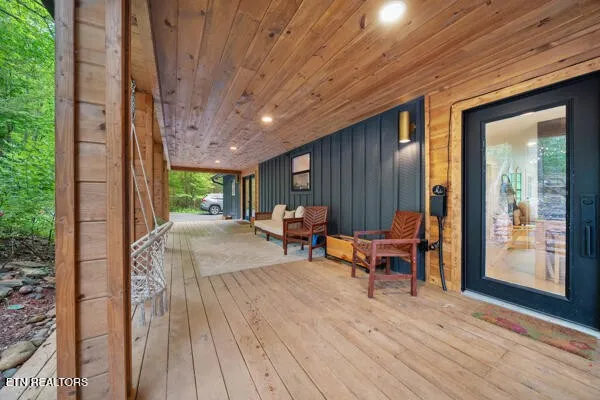 The best of both worlds! Here’s the perfect short-term rental or permanent residence located in the arts & crafts community of Gatlinburg! This luxurious mountain retreat is currently a successful short-term rental, but would make the perfect permanent home or 2nd home too. The entire home was recently renovated from the ground up, and left no stone unturned. Approaching the property you see the expansive covered front deck just waiting for you to relax and enjoy. From the front porch you can enter the home through two different sets of glass French doors. Through one set of doors you enter into the dining area accented by the gorgeous double-sided fireplace that adjoins the huge great room and den. To the left of the den you will find the large primary bedroom with a single cedar wall adding the perfect touch of mountains to the space. The large primary bathroom has a large and inviting black tile walk-in shower. To the right side of the den you will find bedrooms #2 and #3, and also a full bathroom complete with a beautifully tiled large walk-in shower. To the left of the dining area is an amazing chefs kitchen complete with white cabinets and beautiful wooden counter tops. Beautifully crafted stone backsplash and walls add to this incredible kitchen. Continuing through the kitchen you enter a large flex space that is currently used as a second den, but would also be the perfect space for a game room or home theater. Behind the flex space is the 4th bedroom and 3rd full bathroom. The rear of the home features a second large deck/porch that can be accessed from the den, and also from the 4th bedroom.