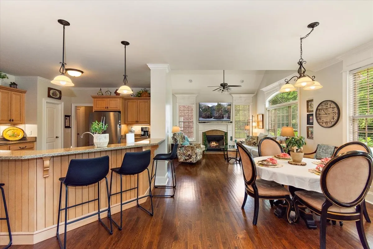 Stunning Open Floor Plan with Modern Amenities. This beautifully designed property features soaring ceilings and abundant natural light, creating a spacious and inviting atmosphere. The layout encourages a seamless flow between living areas, perfect for entertaining and family gatherings. Freshly refinished hardwood floors throughout add elegance and warmth to the space. Exquisite millwork enhances the aesthetic appeal, showcasing craftsmanship and attention to detail. You will enjoy cooking and entertaining in the large kitchen complete with new double ovens and new dishwasher. Enjoy a tranquil retreat in the private suite, which includes an exclusive deck entrance—a perfect spot for morning coffee or evening relaxation. A cozy breakfast room bathed in natural light offers a charming space for casual dining. Two fireplaces add comfort and warmth, providing inviting spaces for relaxation during cooler months. The beautiful deck extends your living space outdoors, ideal for entertaining or enjoying peaceful moments in your private back yard. The property is complemented by a stylish black aluminum fence, ensuring both privacy and security while adding to the home’s aesthetic. And finally, it will be hard to find a home with more attic storage! Nestled in a tranquil community, this home offers a peaceful retreat from the hustle and bustle of city life. This home perfectly blends luxury and comfort, making it an ideal choice for those seeking a refined living experience. Don’t miss the opportunity to own this extraordinary property that truly has it all. Contact us today to schedule a viewing!
