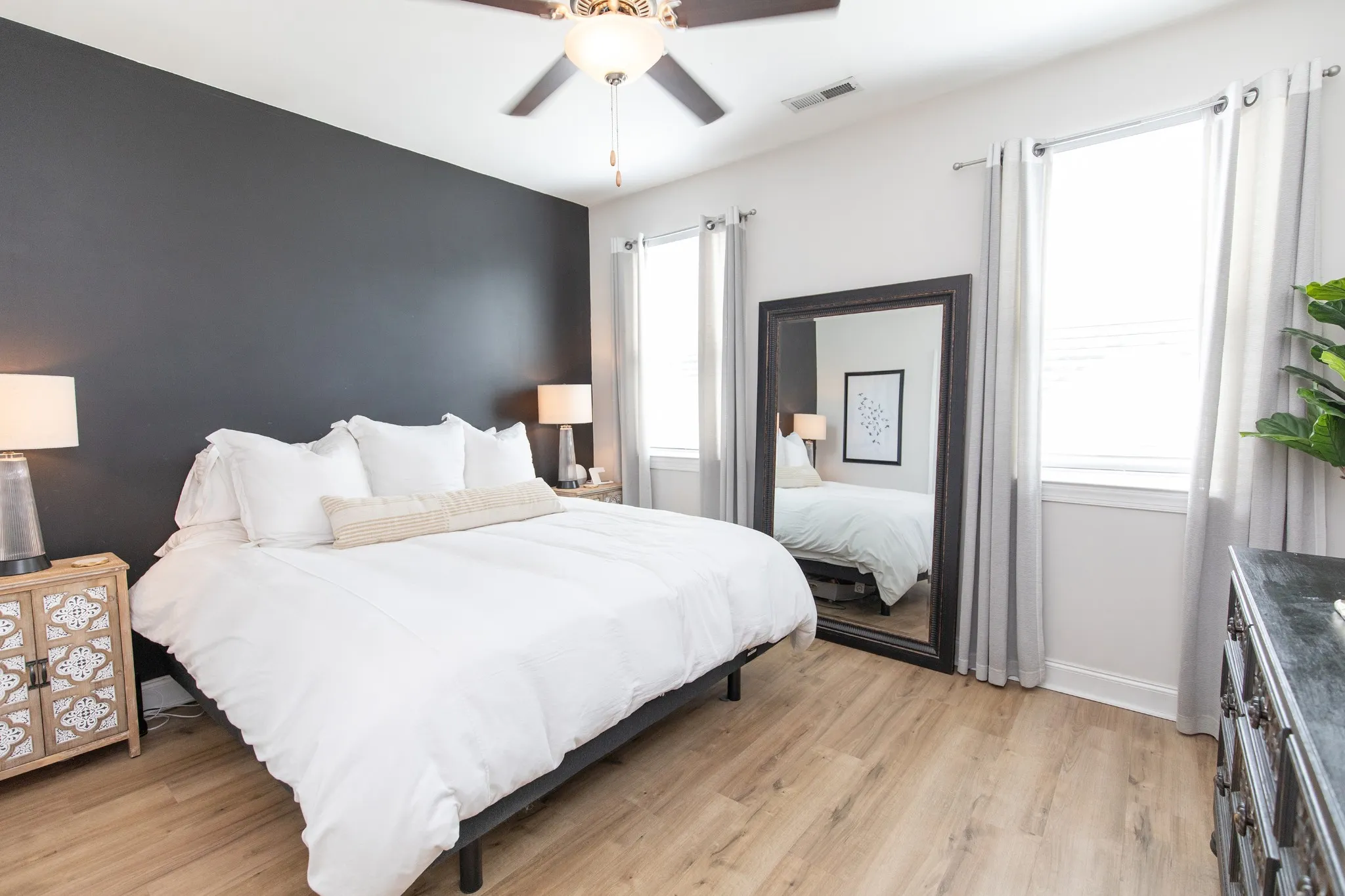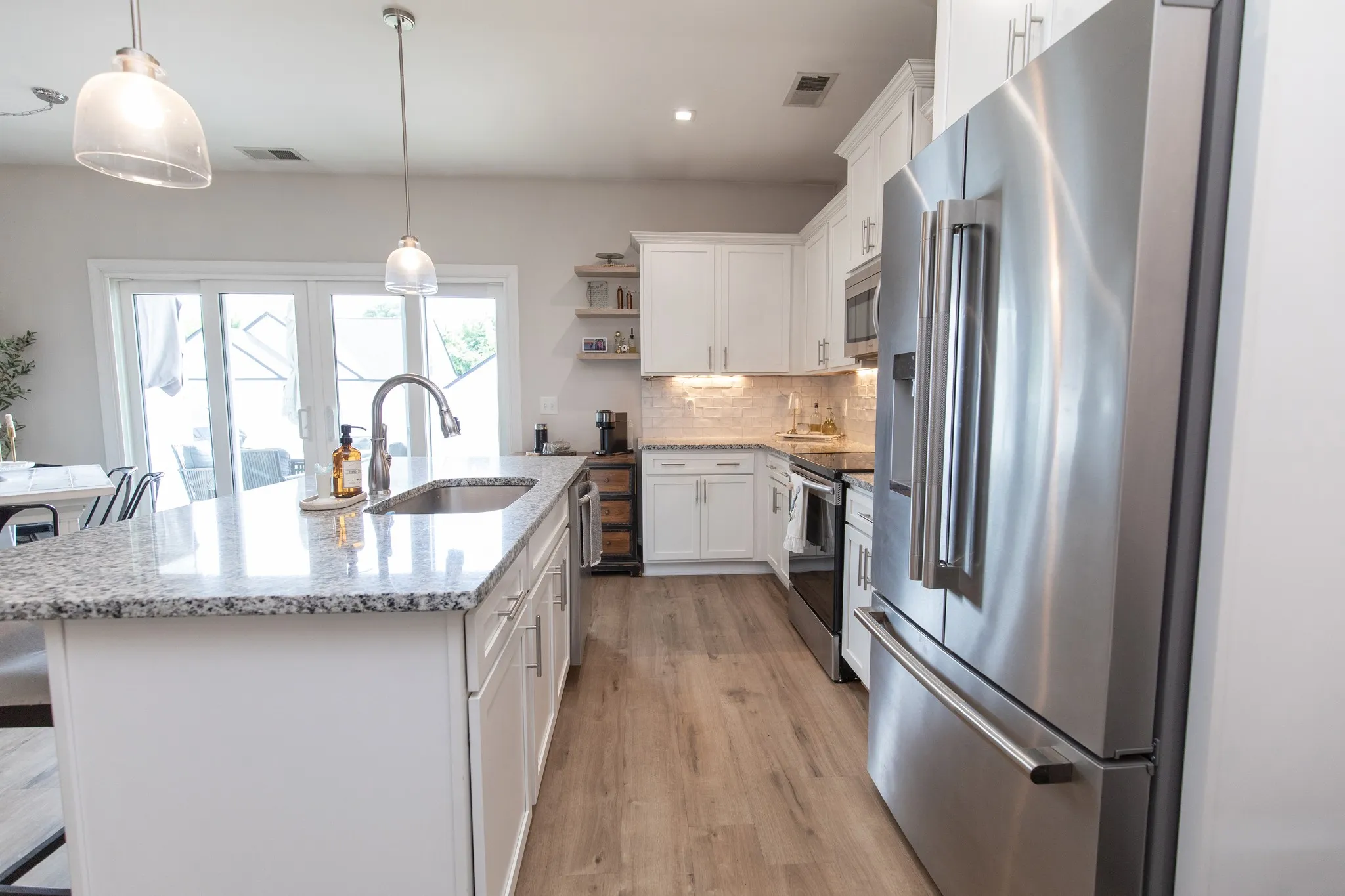 Tucked away in the heart of Springfield, you’ll fall in love with this charming three-bedroom, two-and-a-half bathroom, spacious two-story home with two car garage. Beautifully designed with high ceilings, laminate wood flooring throughout, and an open floor plan creates a warm and inviting vibe perfect for hanging-out or entertaining. Granite countertops, decorative tile backsplash, beautiful shaker cabinetry, large island, and stainless-steel appliances are perfect for cooking and mingling with family or friends. The large primary ensuite features a custom tile walk-in shower with coordinating tile flooring, granite countertops, and a large walk-in closet. Upstairs you’ll find two bedrooms, one-bathroom, large walk-in closets and easily accessible walk-in storage areas. Step outside to the backyard where the covered patio and privacy fence adds another element of being outside for a relaxing evening to grill or watch TV. The striking white house adorned with black trim and partial stone exterior and impressive curb appeal coupled with its convenient location to shopping and restaurants makes this house a very special place to call home.* Up to $2000 lender credit when using our preferred lender, Fairway Independent Mortgage.*