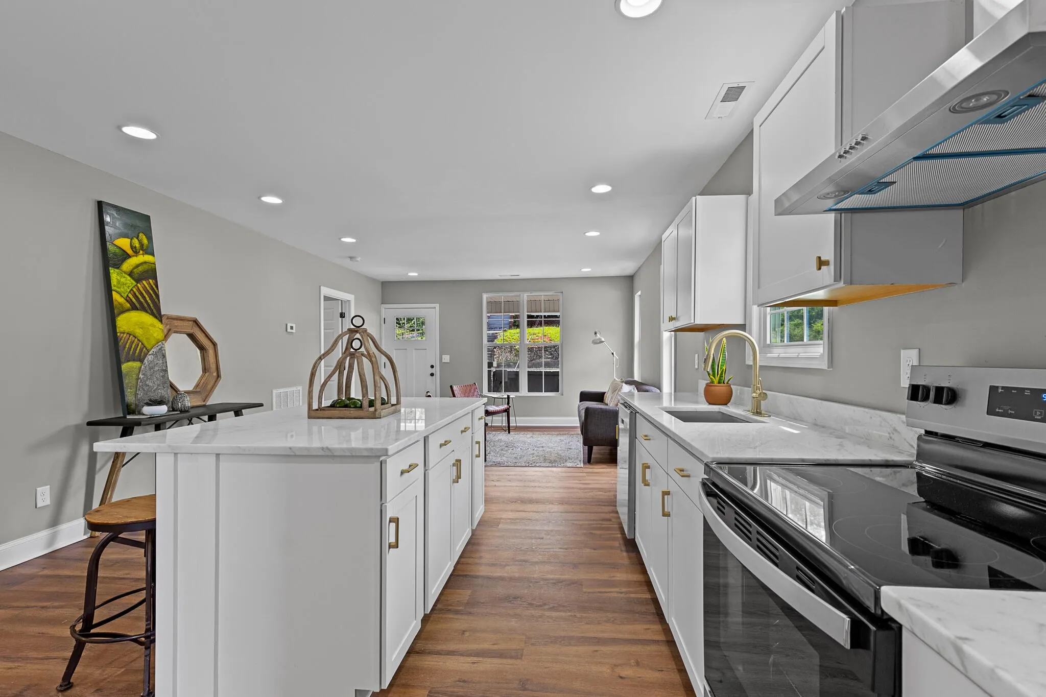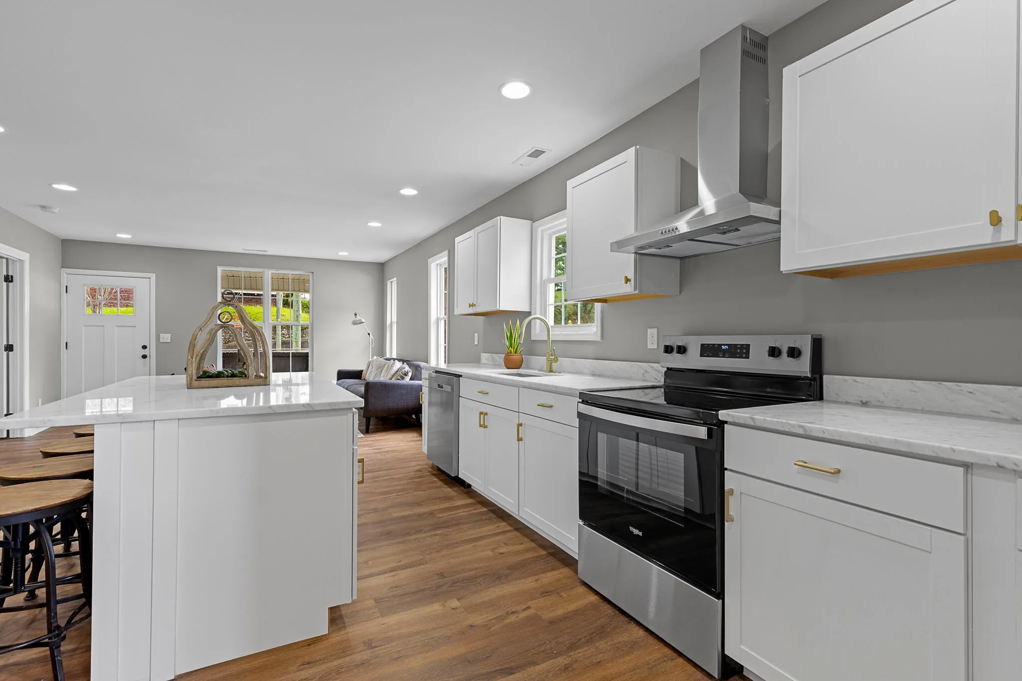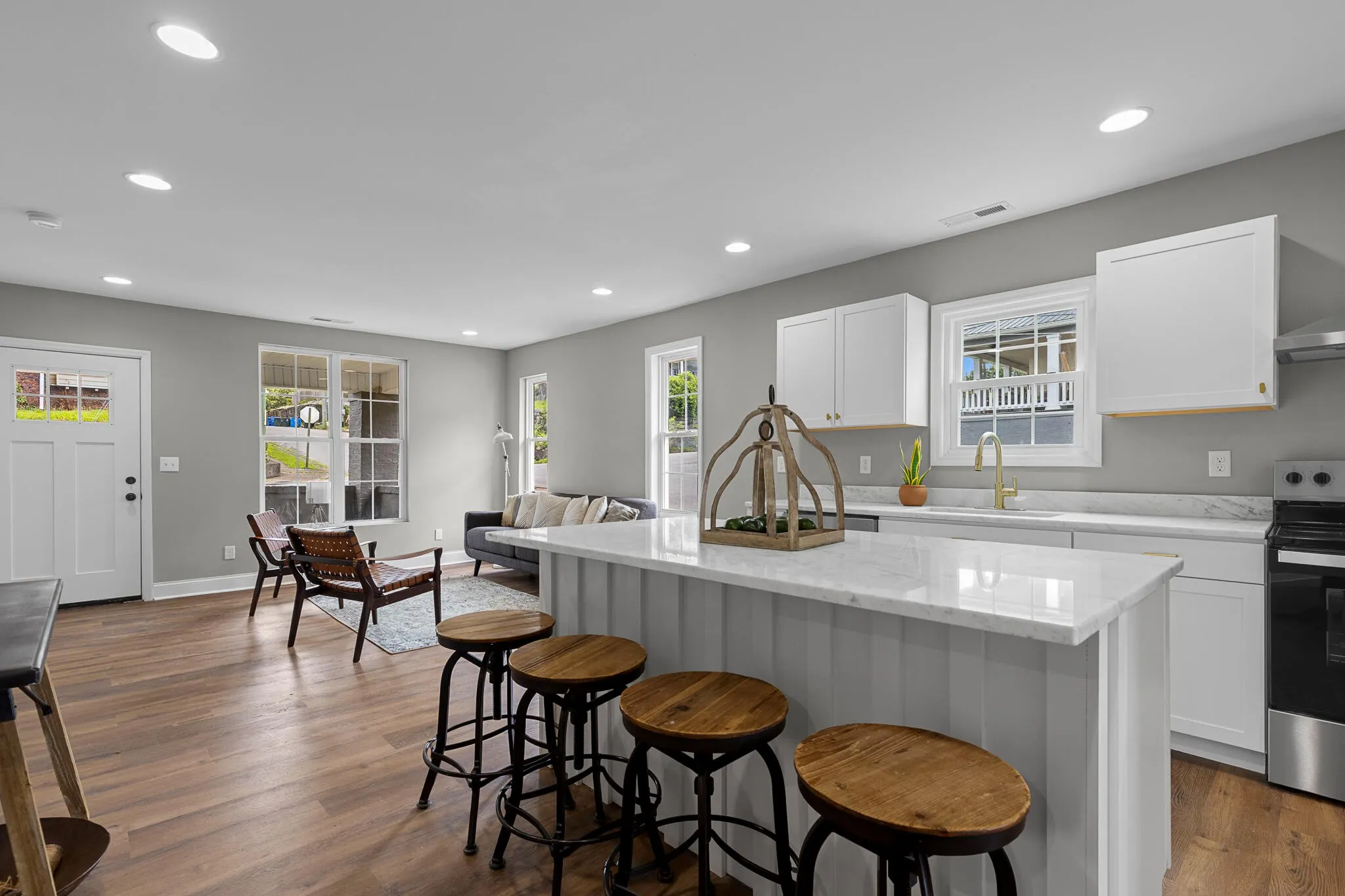Step inside to discover an open-concept floorplan filled with natural light, highlighting brand new appliances, custom built-in cabinetry, and an oversized kitchen island that serves as the centerpiece for both entertaining and everyday life. The home’s fully refinished interior is thoughtfully designed for comfort and functionality.