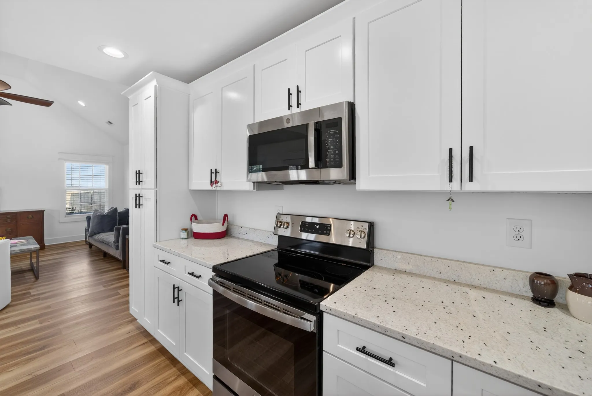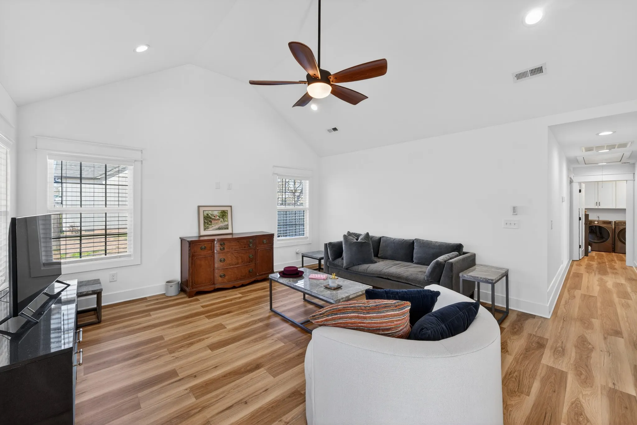 Welcome to this impressive one-story, beautifully crafted residence offering convenience and curb appeal – perfect for family living and entertaining alike! This home is thoughtfully designed and every room is bright and cheery. This 3 year old open-concept modern home offers 1500 square feet of living space and sits on a flat 1/3 acre corner lot. The front entrance opens to a spacious great room flooded with natural light and features beautiful vaulted ceilings creating a warm and inviting atmosphere. The large kitchen is any cook’s dream, complete with loads of storage space, GE appliances, granite countertops, and an oversized granite island. The sunlit dining area easily fits a table for 6 or 8 with room for your own buffet or sideboard. The master bedroom showcases trey ceilings, an oversized walk-in closet and an en-suite with a large walk-in shower and double sinks in a granite countertop. Two generously sized additional bedrooms (or office space) are just across the hall as well as a full 2nd bath. The home offers LVP flooring and recessed lighting throughout. Outdoors offers a front and back porch and a large, private, fenced-in backyard perfect for cookouts, fire pits and a pool. Take a 5 minute walk to the quaint downtown of Lewisberg for shopping, restaurants and services. Highway I65 is 8 minutes away, Franklin and Nashville a 40 or 50 minute drive north. This home is move-in ready and awaiting your personal touch – we’d love to show it to you! #saywhen