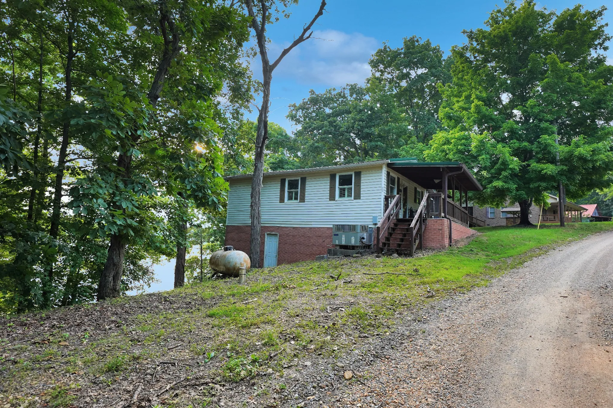 Bring your fishing pole and prepare to make memories at this quaint cottage on Barkley Lake! This 2BR-1BA plan is mostly furnished and waiting for the new owner. Amazing view from the den/sunroom which could be another bunkroom! Covered front deck, spacious screened in porch, step sections to the water and small lot to maintain. Numerous upgrades to include HVAC-metal roof- house plumbing and more. New water well in 2018. Small boat launch just down the road or Blue Creek ramp is within 2 mile drive. Neat seasonal or weekend getaway!