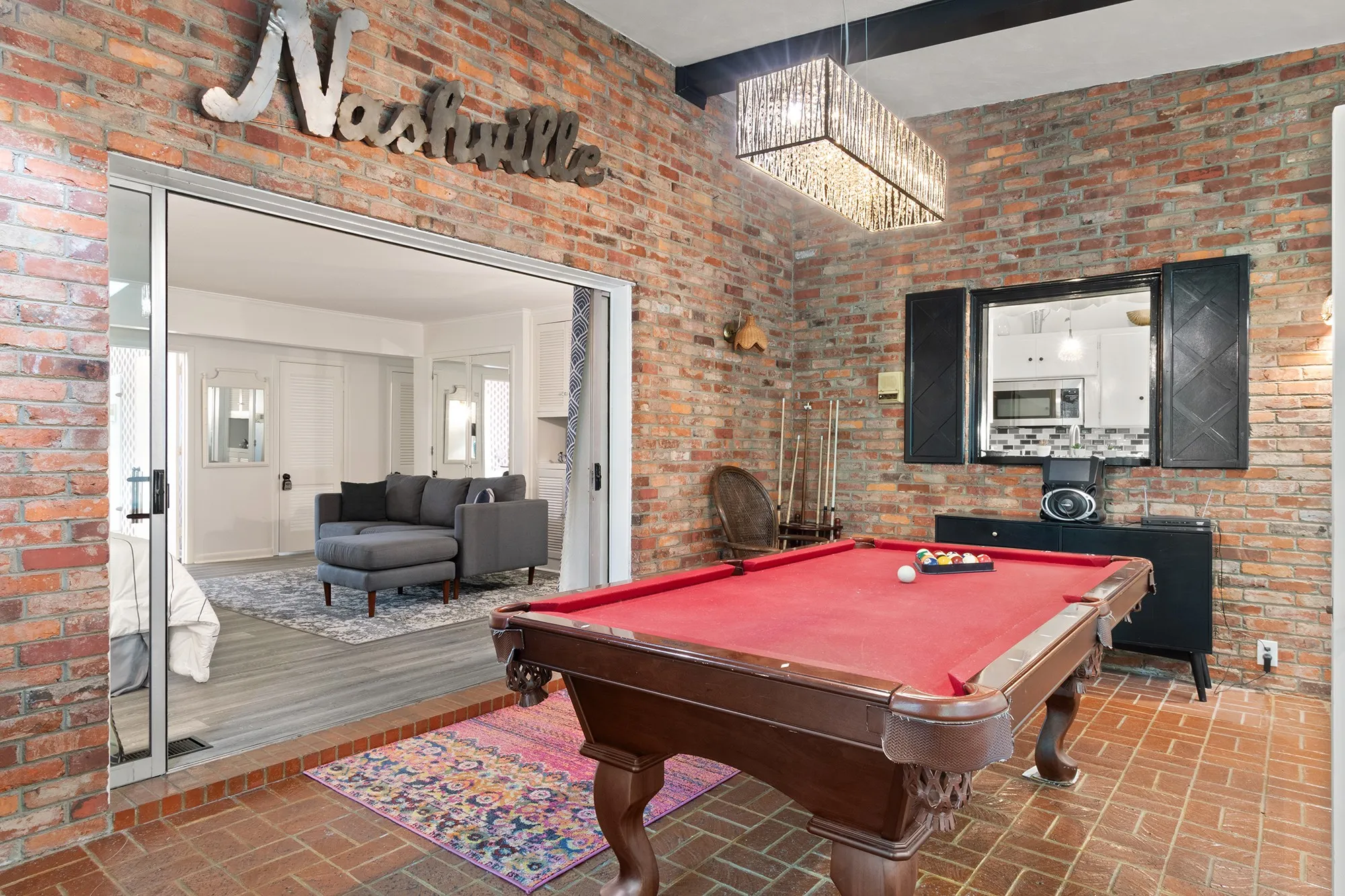 An extraordinary mid-century modern home on a gorgeous lot, all merely 10 minutes from downtown via Ellington Parkway! 4 bedrooms and 4 bathrooms with a fun mid-mod design! Solid, brick home has been fully renovated but maintains the unique and original character of this home. Enjoy the pool room or recreate it to be a listening room fit for Nashville music lovers. Relax as a family in the oversized gathering room with a wall of windows and natural light from the skylights above. The back patio is spacious and looks out over the most beautiful yard. This home is the perfect place for a family to build their lives with space to spread out all on one level. Cool enough for the most discerning Nashvillians!