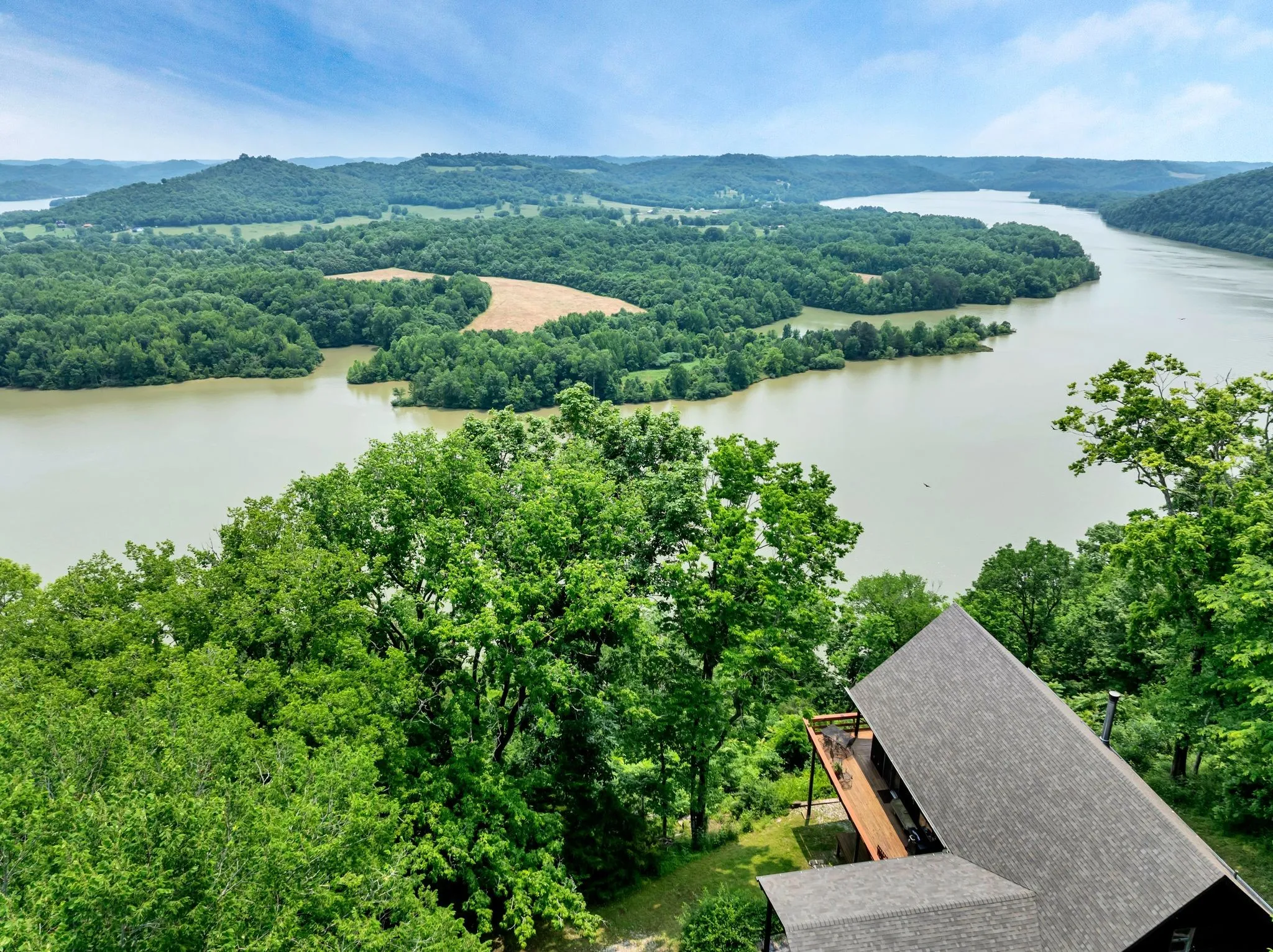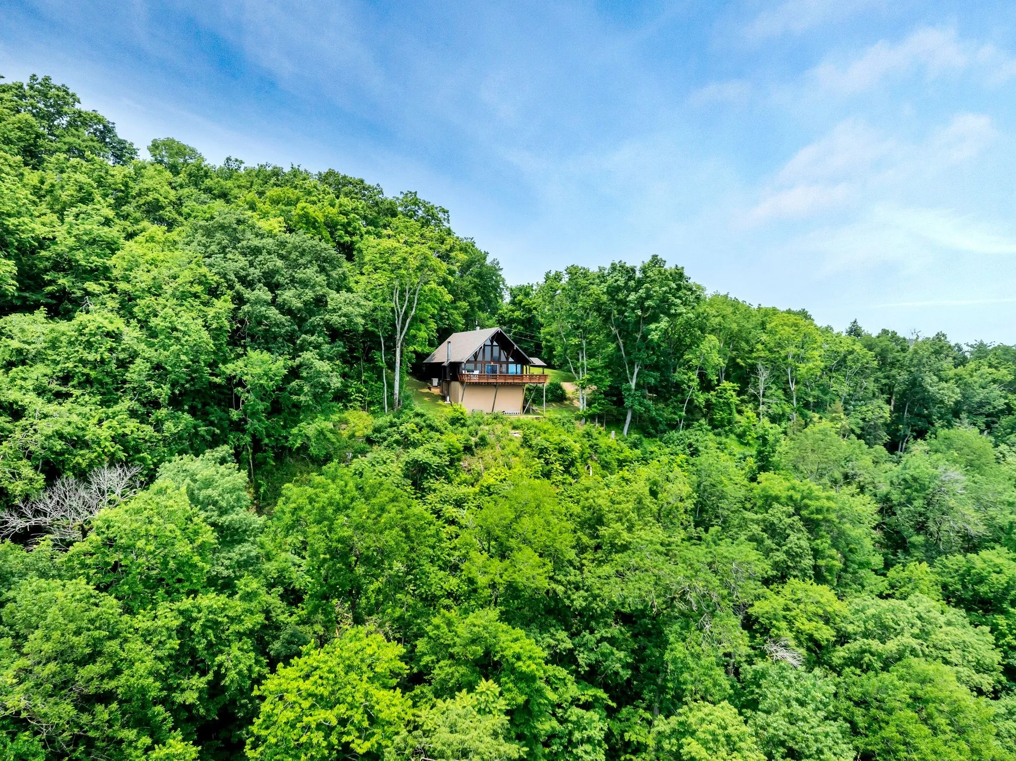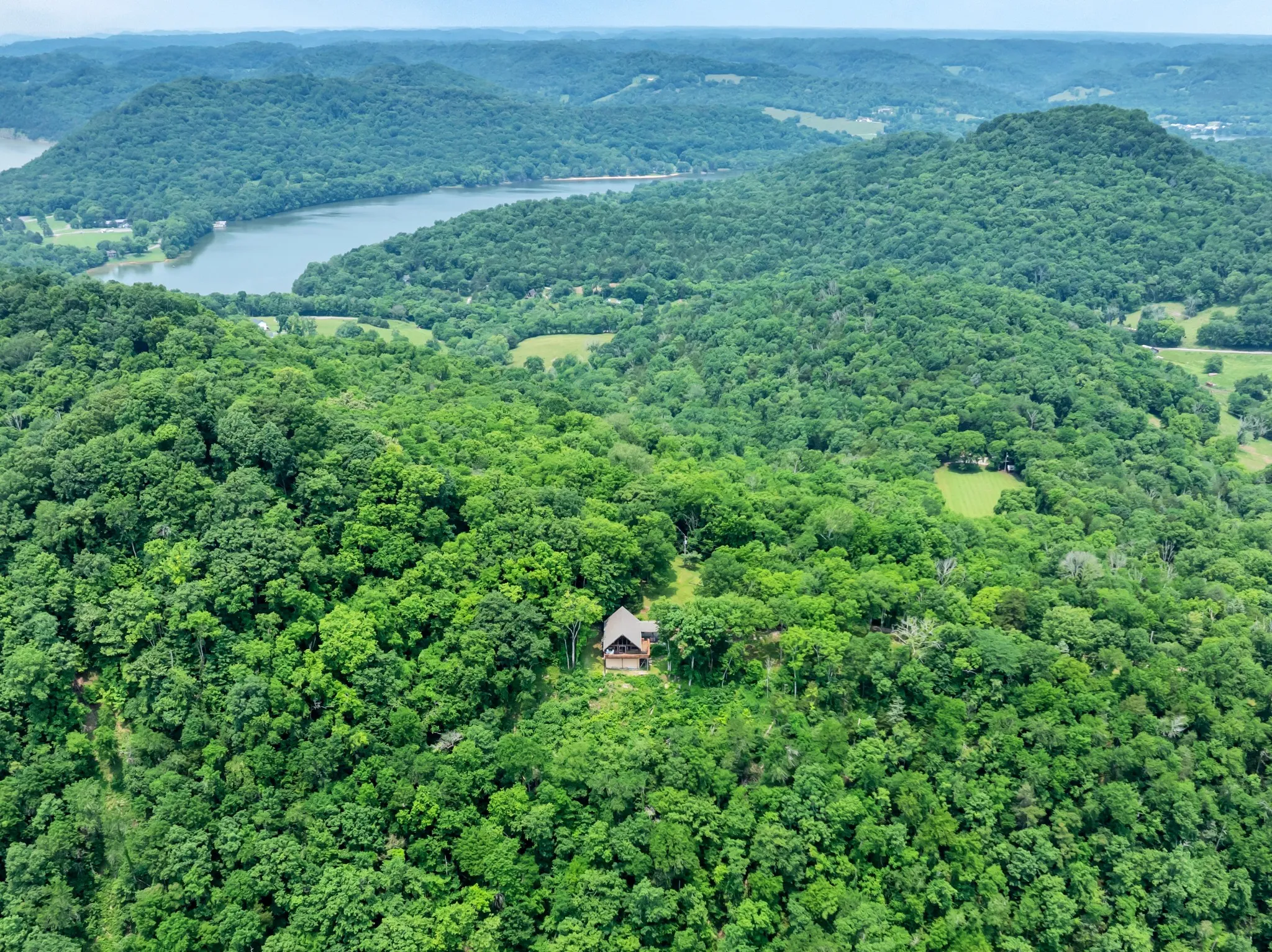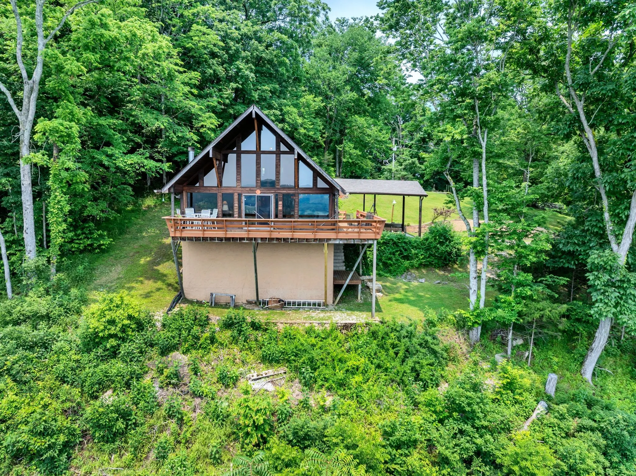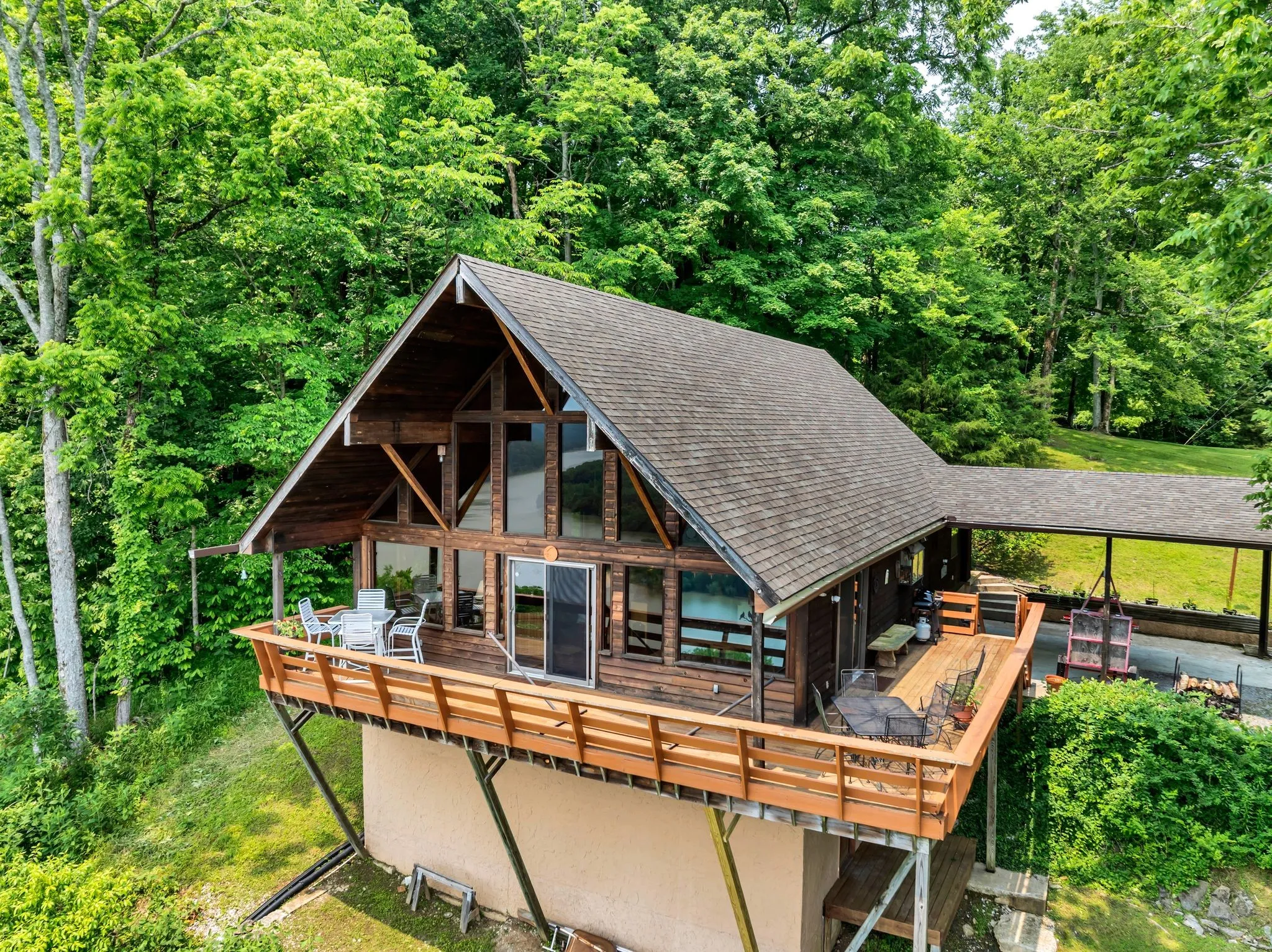 Rustic A-frame western cedar home on 118 secluded mostly wooded acres with panoramic bluff views of Cordell Hull Lake. 2BR, 2BA, a den (also used as 3rd BR guest room), open great room. Surrounded by nature, private, off road retreat offers peace, privacy & stunning natural beauty- perfect for tranquil getaway or full time living. 2 parcels sold as 1; new roof, gutters, H2O heater, many new windows;1053sf workshop basement; 563 ft road frontage, 3580 ft bluff frontage; utilities to house only; 1 mile to boat ramp; 1hr from BNA. Furnishings available .1053sf workshop basement; 563 ft road frontage, 3580 ft bluff frontage. No Smith Cty septic letters available from 1987, but has been inspected with no issues. Owner Agent