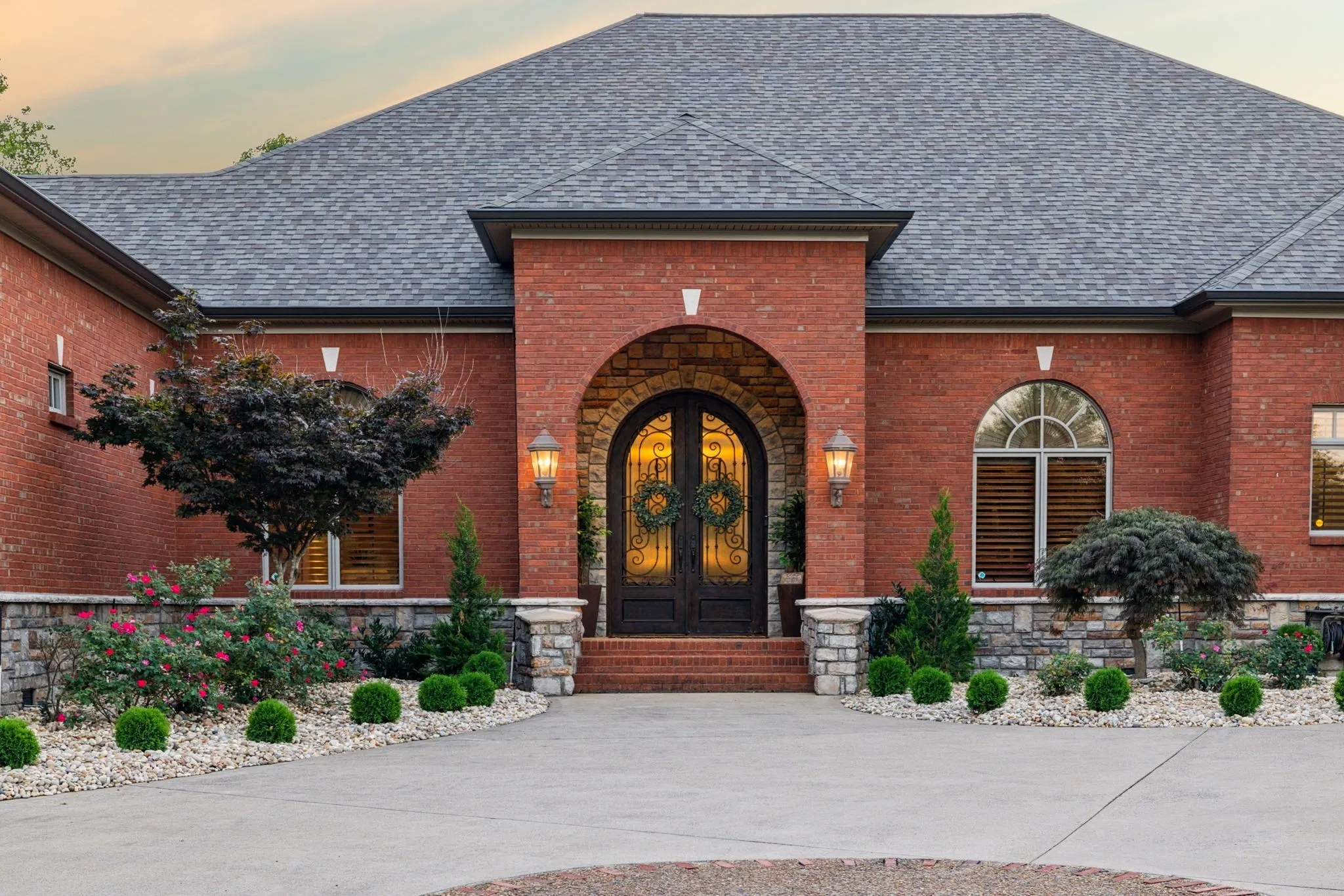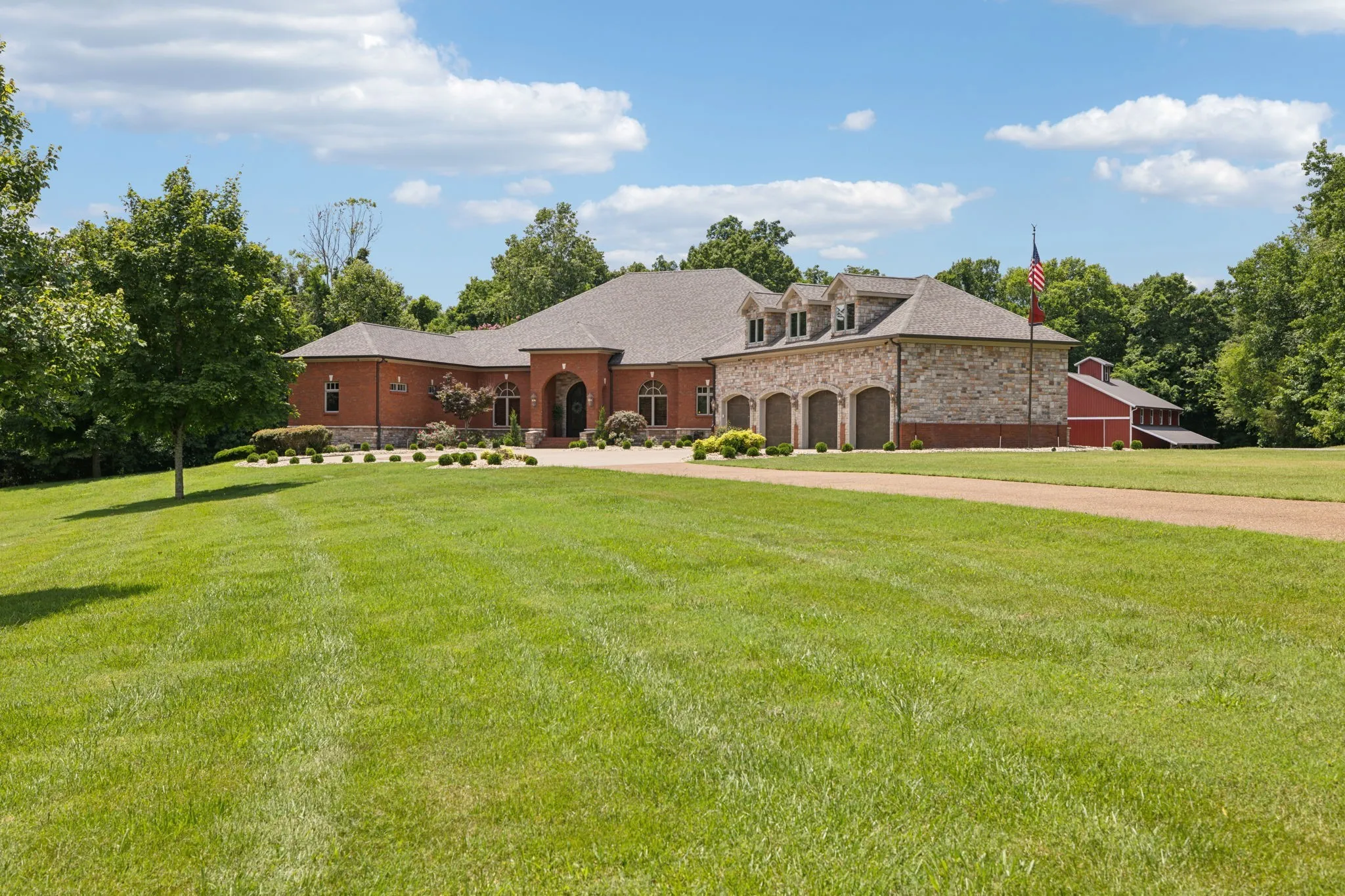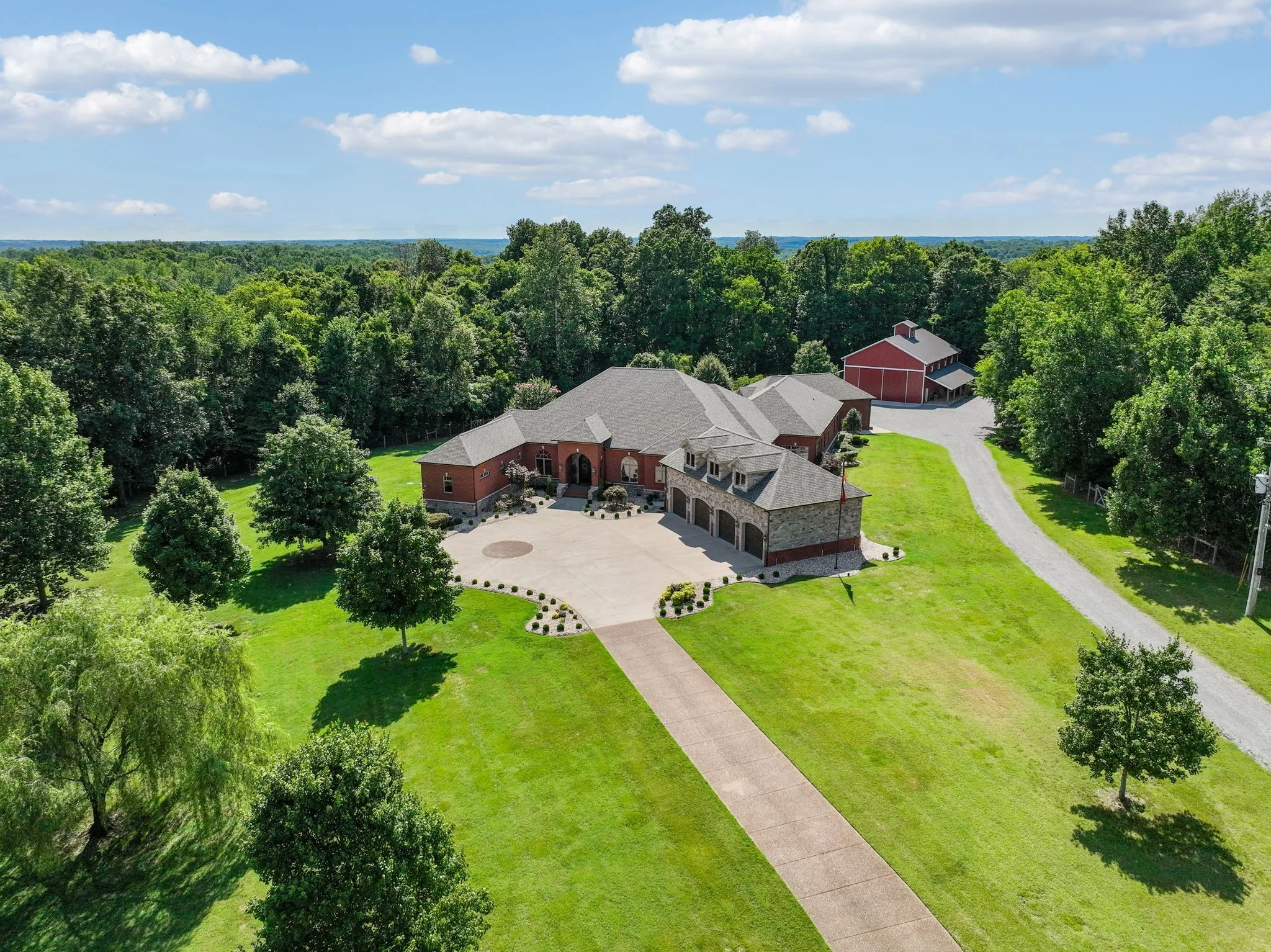 Just outside of Nashville is this Exquisite Home nestled in the Picturesque Countryside of Clarksville, Tn. Privacy is assured on this Gated Property sitting on 17+ acres with Greenbelt status. This Tranquil Paradise is a Luxurious Retreat including Magnificient Tigerwood Floors, 16-foot Coffered Ceilings in the main living area, a Chef's Kitchen complete w/ Stainless Steel appliances: Oversize Refrigerator, 6-Burner Gas Cooktop, Double Ovens plus Microwave, Compactor, Ice Maker, and Wine Fridge. Your family will relax together in the dreamy Theatre Room located over the 4-car Heated and Cooled Garage with 2 EV Power Outlets. Your guests can stay in the Sumptuous Guest House for long or short visits. Every day you will have a front-row seat to the most spectacular sunsets viewed from your peaceful Sunset Terrace which features an enormous Stone Firepit. The 60x40 Barn can house any recreational vehicle, tools, and equipment. This home and property have been \n
