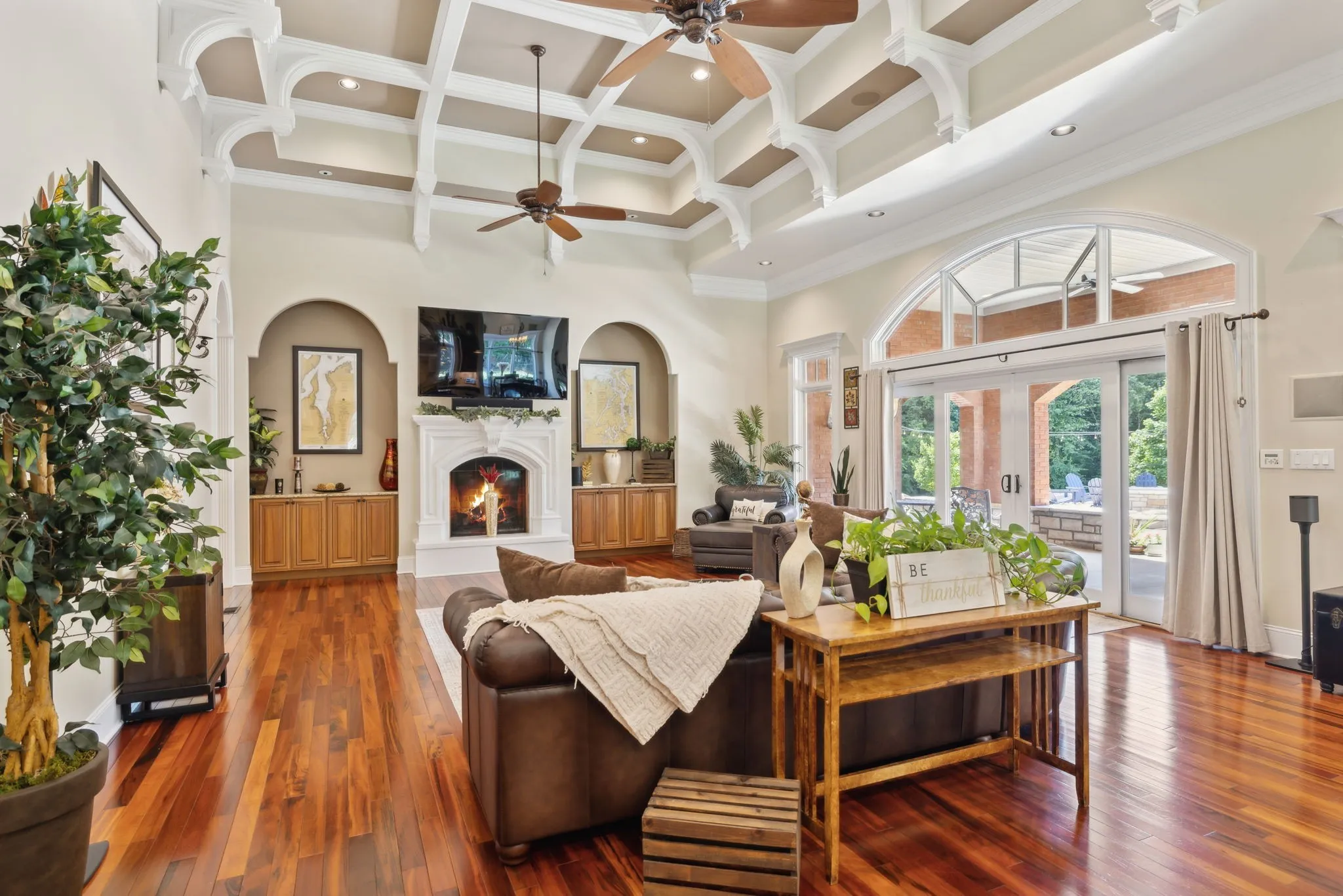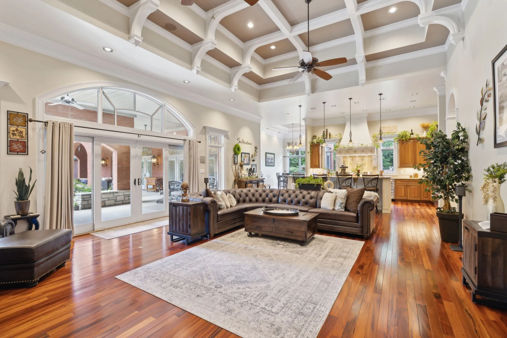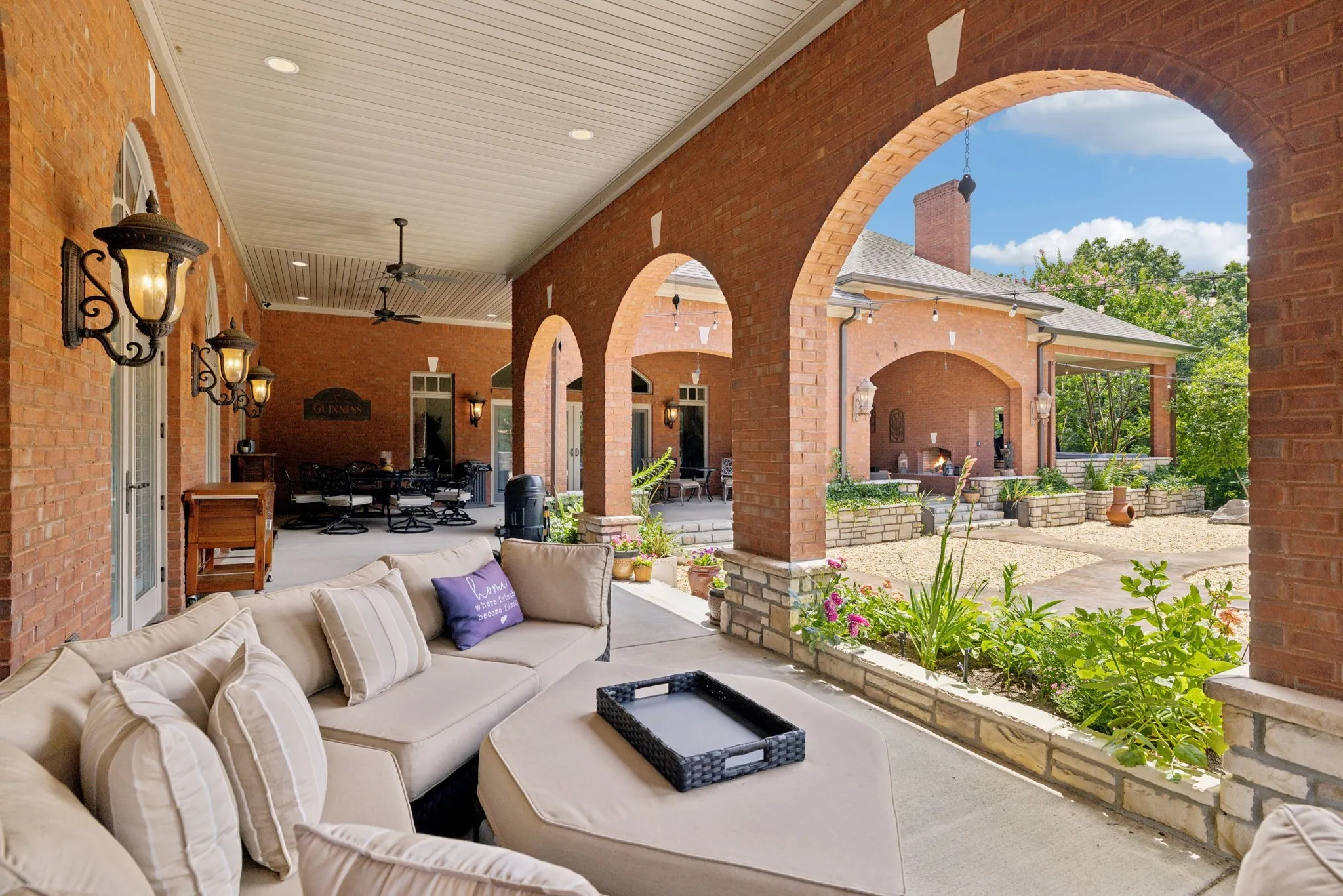 Just outside of Nashville is this Exquisite Home nestled in the Picturesque Countryside of Clarksville, Tn. Privacy is assured on this Gated Property sitting on 17+ acres with Greenbelt status. This Tranquil Paradise is a Luxurious Retreat including Magnificient Tigerwood Floors, 16-foot Coffered Ceilings in the main living area, a Chef's Kitchen complete w/ Stainless Steel appliances: Oversize Refrigerator, 6-Burner Gas Cooktop, Double Ovens plus Microwave, Compactor, Ice Maker, and Wine Fridge. Your family will relax together in the dreamy Theatre Room located over the 4-car Heated and Cooled Garage with 2 EV Power Outlets. Your guests can stay in the Sumptuous Guest House for long or short visits. Every day you will have a front-row seat to the most spectacular sunsets viewed from your peaceful Sunset Terrace which features an enormous Stone Firepit. The 60x40 Barn can house any recreational vehicle, tools, and equipment. This home and property have been \n