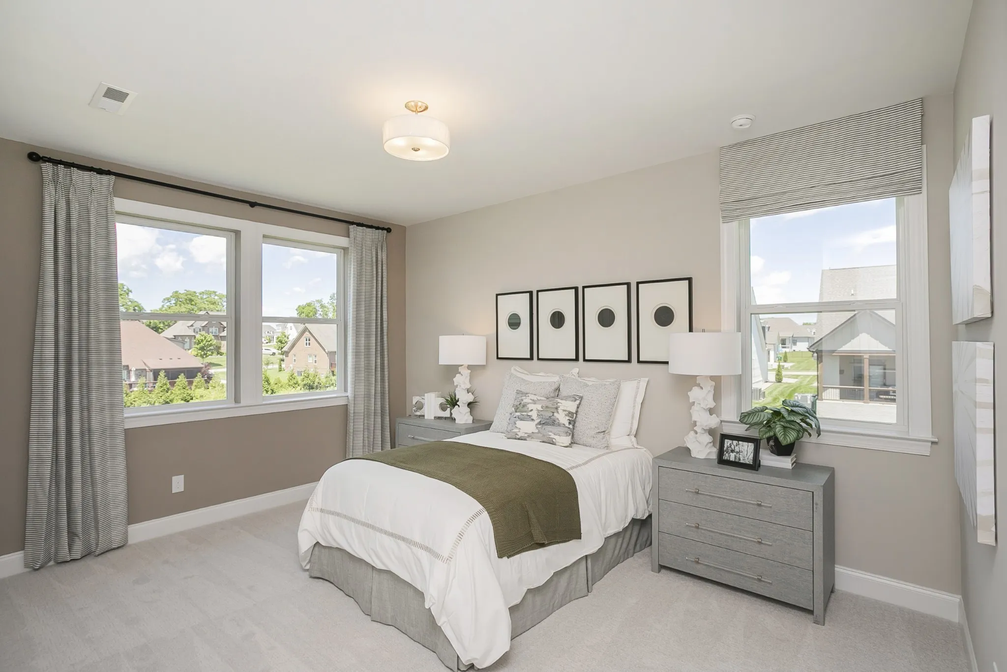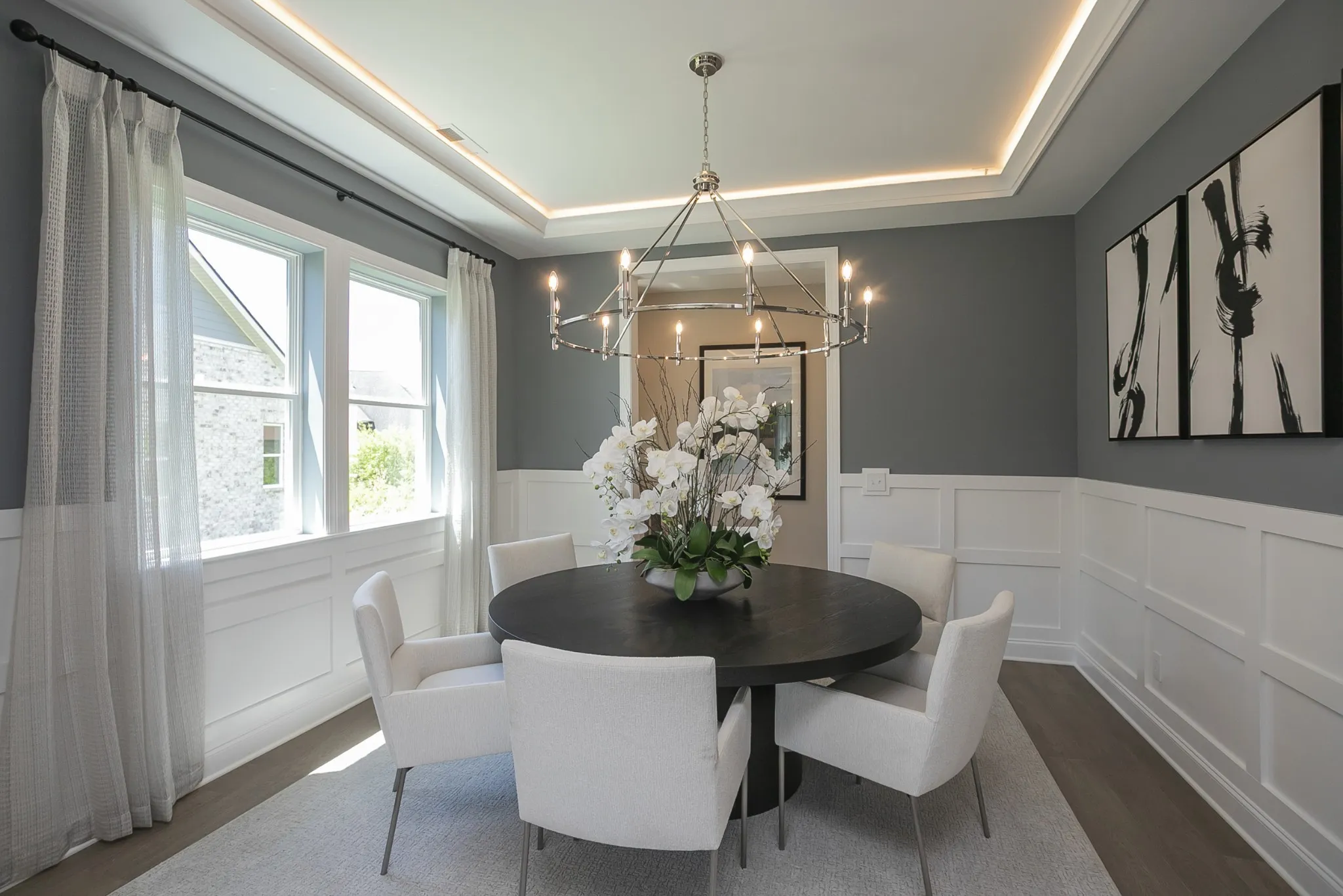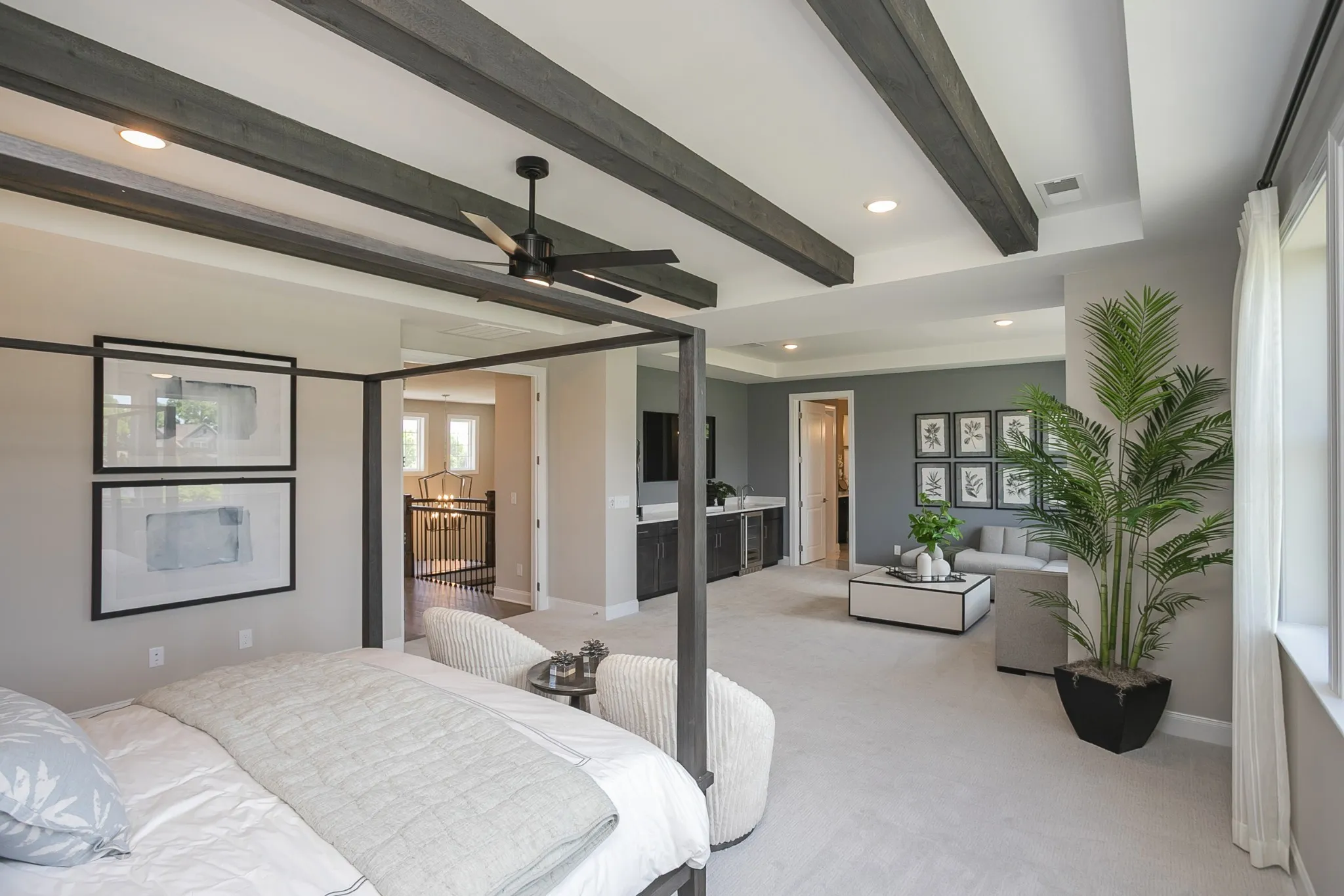 LUXURY FINISHES AND UPGRADES ARE ALREADY FACTORED INTO THE PRICE FOR A SEAMLESS BUYING EXPERIENCE. Welcome to the breathtaking Harmon floorplan, a showcase of thoughtful design, luxurious finishes, and unparalleled craftsmanship. Boasting 5 bedrooms, 4 bathrooms, and a 3-car garage, this home offers both elegance and functionality. This is also our model home. Step into a grand two-story entryway that flows seamlessly into the spacious living and dining rooms, featuring tray and beamed ceilings for added sophistication. The gourmet kitchen is a chef’s dream, complete with a walk-in pantry, a spacious island, and an adjacent nook that opens to a covered patio is perfect for entertaining. The main floor includes a private guest suite with a full bath and a conveniently located mudroom and laundry area. Upstairs, you’ll find a luxurious primary suite with a beamed ceiling, a private retreat, and a deluxe spa-like bathroom with a soaking tub, walk-in shower, and an expansive walk-in closet. Three additional bedrooms, two more bathrooms, and ample closet space complete the second floor. This home is the epitome of luxury and convenience, located in the sought-after August Park, which is less than 1.5 miles from each of the Williamson County Schools it is zoned for.