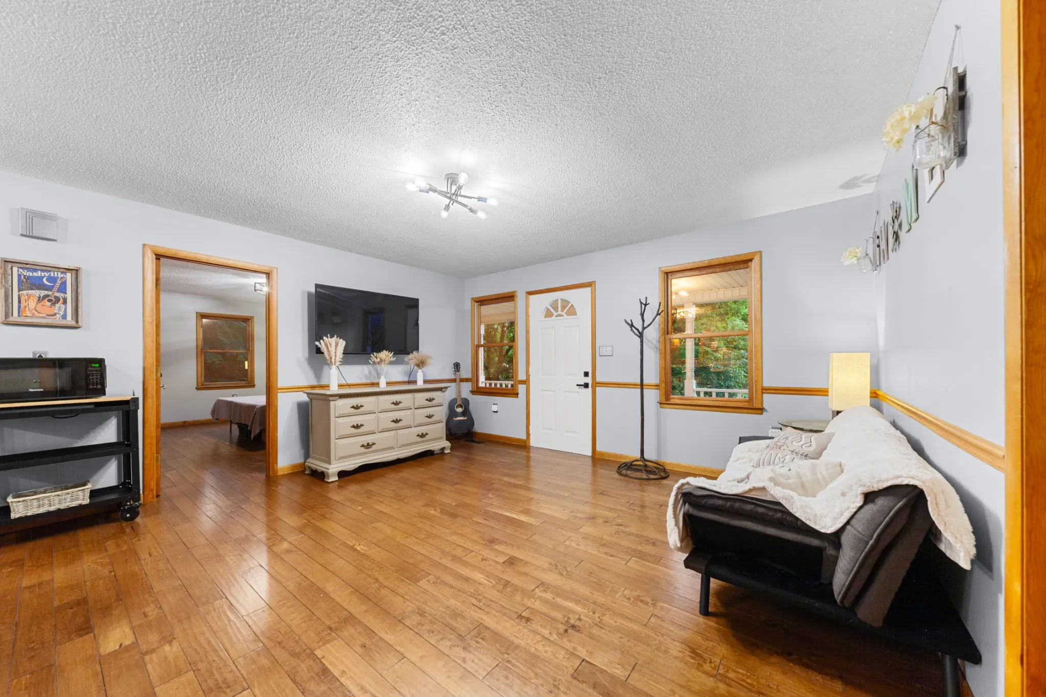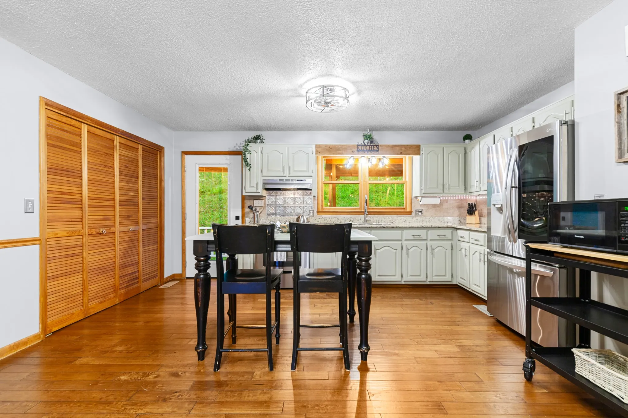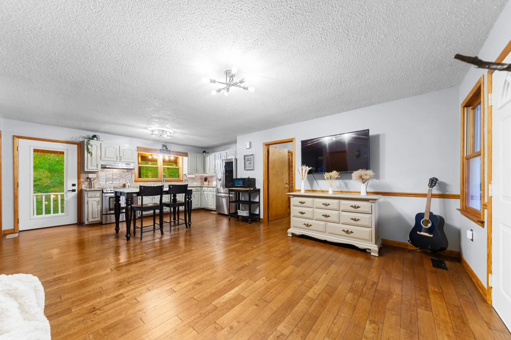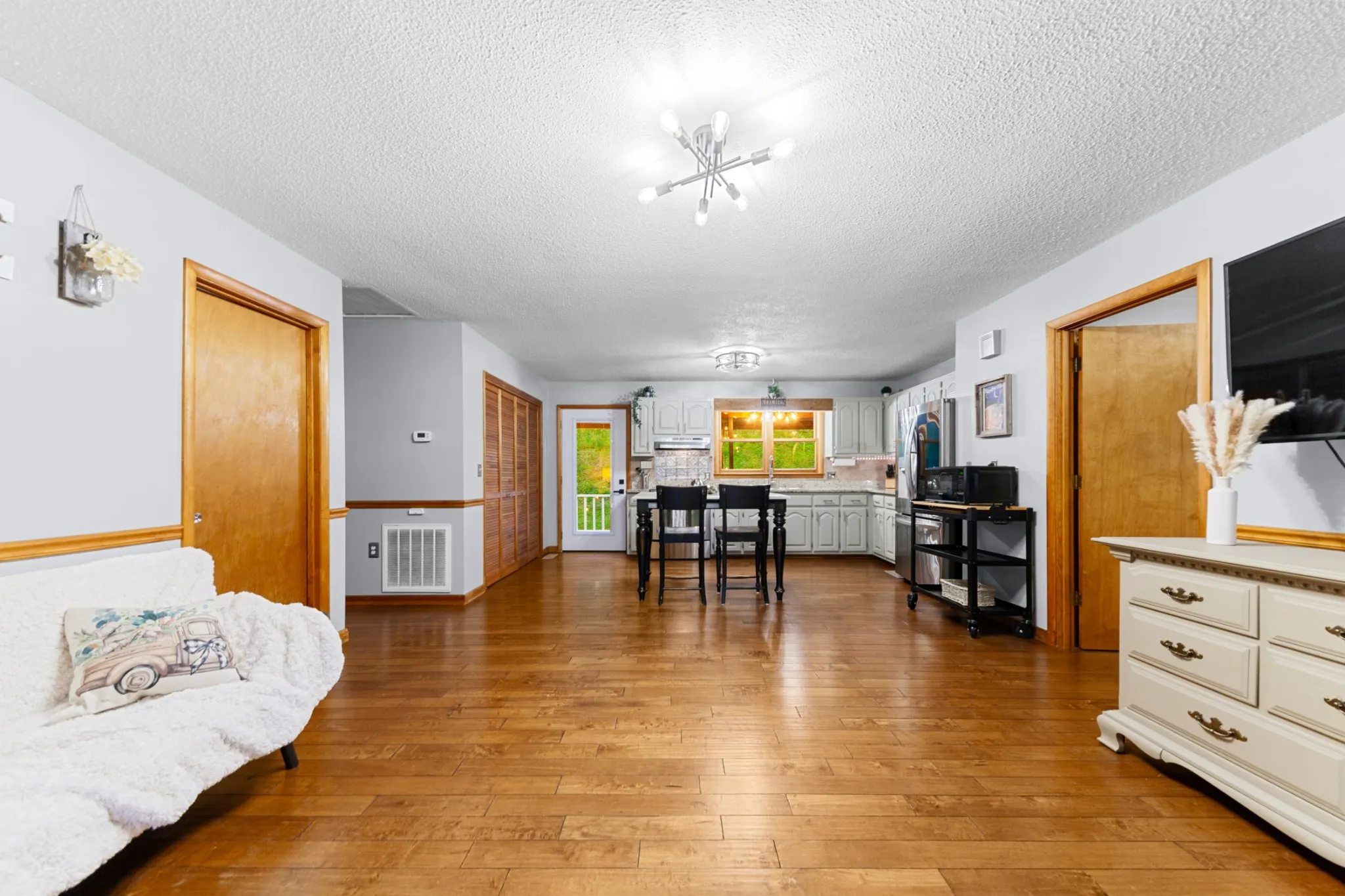 Charming 2BR/2BA single-family home nestled on a picturesque 2.80-acre lot just minutes from Pulaski and Hwy 64. This well-maintained home features an open floor plan with solid pecan hardwood flooring throughout, updated lighting and hardware, and fresh interior paint for a modern, inviting feel. The spacious kitchen comes complete with all built-in stainless appliances, and the washer and dryer remain. The large primary suite offers double closets and a roomy bath with double vanities and a linen closet.
