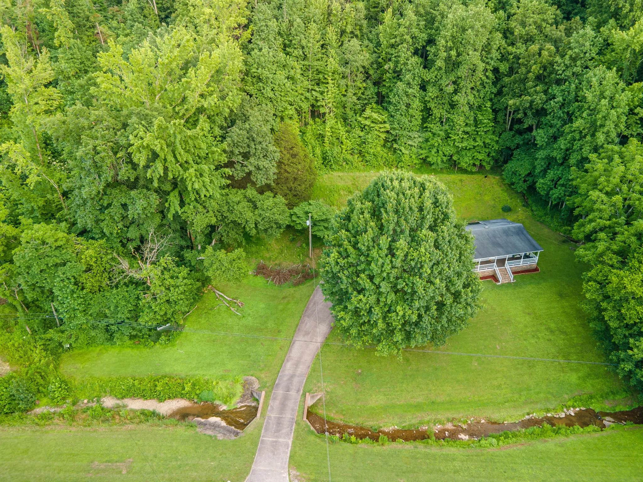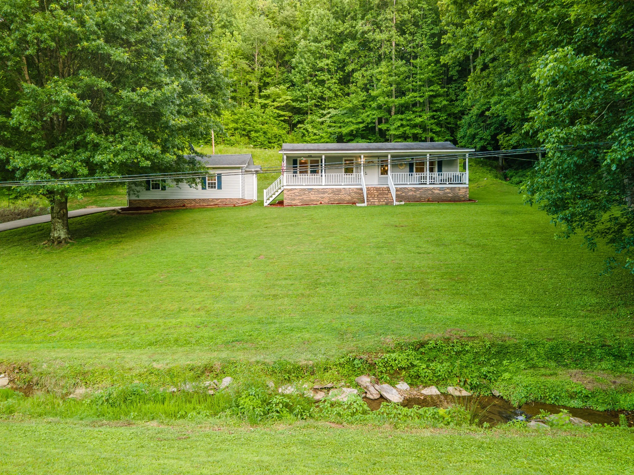 Enjoy peaceful mornings on the large covered front porch and relaxing evenings on the spacious back deck overlooking your private, wooded backyard. The property boasts excellent curb appeal with a concrete driveway, a fully insulated 2-car detached garage with a 240V outlet—perfect for a workshop and possible Future EV Charger—and a nice storage building with electricity. A peaceful creek, waterfall, and wooded hillside offer natural beauty and privacy. A rare blend of comfort, functionality, and serene outdoor living—don’t miss this one!