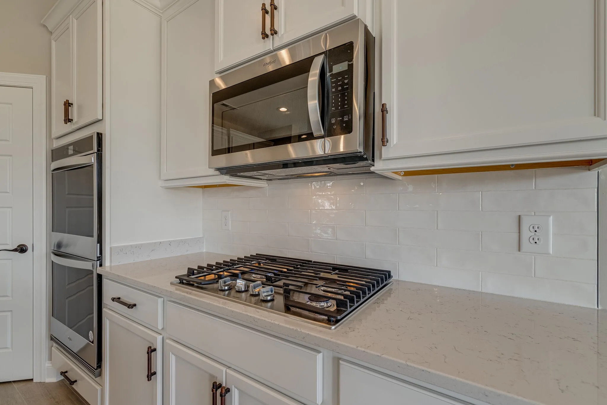 Builder to contribute $10,000 towards buyer’s closing costs. Welcome to your new home, where every detail reflects your desire for the best in family living.This beautiful home, with a harmonious blend of brick and Hardie board exterior, provides both elegance and comfort for move-up families seeking that much-needed extra space. Step into the grandeur of a two-story foyer and living room, leading you to the heart of the home where memories are waiting to be made. The primary suite on the first floor serves as a peaceful retreat with its luxurious amenities. An adjacent laundry room complete with cabinets and a practical mudbench welcomes you from the three-car garage, ensuring a clutter-free entry. Entertain guests in a separate dining room or focus in your private office. The open-concept kitchen, boasting beautiful cabinets, quartz countertops, and stainless steel appliances including a gas range and double ovens, is a chef’s delight. The tile backsplash and fireplace with intricate trim details add a touch of sophistication. Outside, privacy beckons with no neighbors behind, and a covered back porch offering a tranquil space to unwind. Modern conveniences such as a tankless gas water heater and white oak wood treads elevate daily living. Upstairs, three additional bedrooms, a flex room, a spacious loft, and generous attic storage ensure everyone has their own comfortable space.