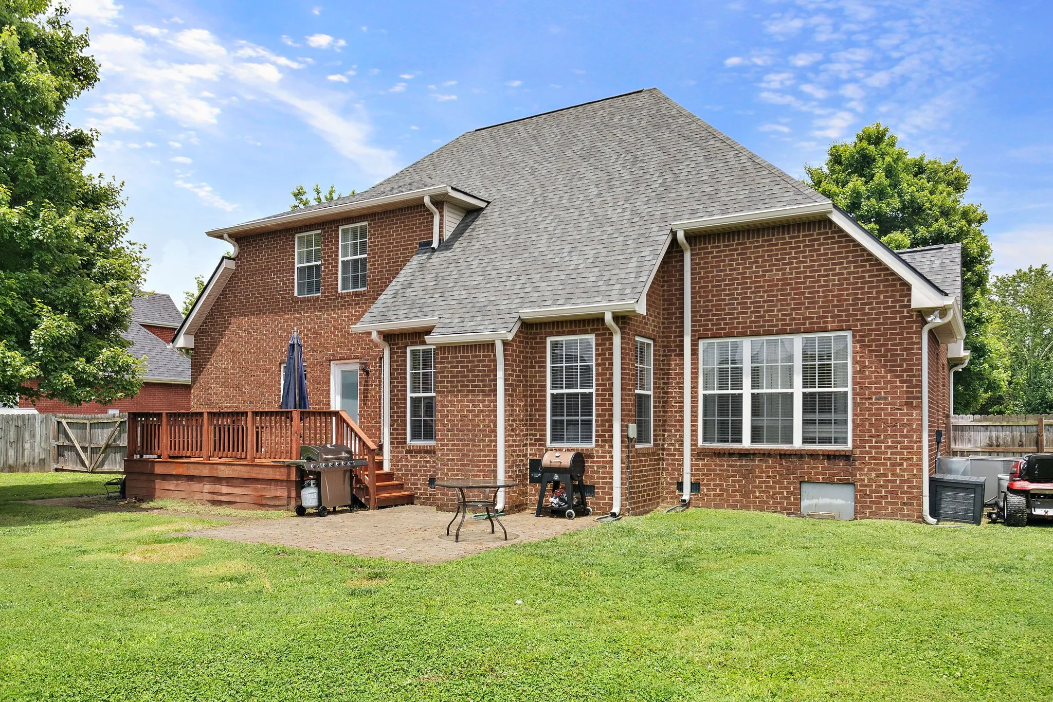Spacious, Stylish & Move-In Ready! This home features the ideal layout with main-level Owner’s Suite! Discover the perfect blend of comfort and style in this beautifully updated 4-bedroom, 2.5-bath home featuring an open concept living space and soaring 17-foot ceilings with a fireplace! The recently renovated kitchen is truly a standout—offering quartz countertops and modern finishes rarely found in this price range! Other notable upgrades are a new roof (3yr), new water heater (1yr) hardwood floors and new LVP flow through all of the living spaces and bedrooms, complemented by designer touches throughout. The thoughtful layout provides space for everyone, and three additional bedrooms upstairs and a large bonus room, plenty of space to relax or gather. Step outside to enjoy the fully fenced backyard with a large deck and paver patio—perfect for outdoor dining, pets and play! A two-car attached garage and a convenient location close to schools, and shopping complete the package. This home offers an amazing combination of space and features—schedule your showing today! Ask about 1-year home warranty and 1% towards lower rate with preferred lender.