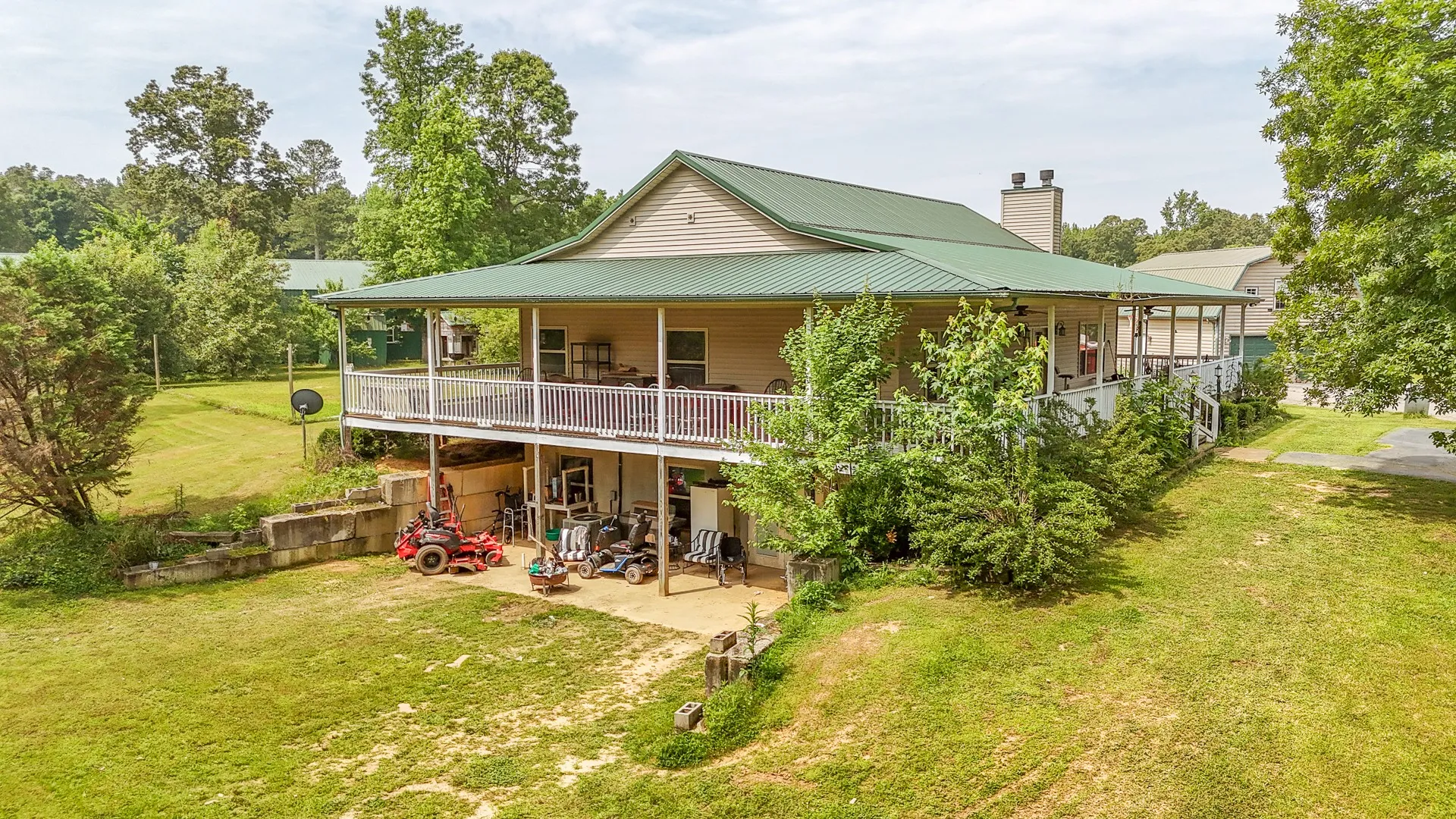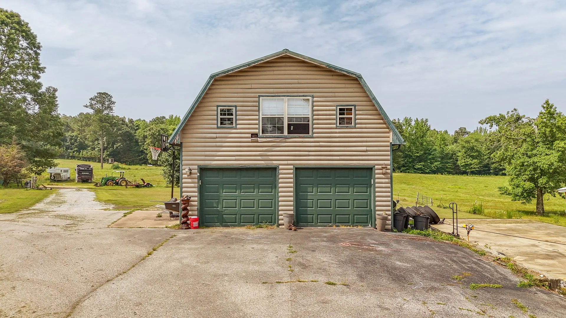 +"PublicRemarks": "Welcome to your private countryside retreat at 731 Barren Springs Rd in beautiful Hollow Rock, TN. Situated on 66 sprawling acres of mixed pasture and woods, this versatile property is a dream for farmers, hunters, and families seeking space, serenity, and multi-generational living. This stunning 6-bedroom, 4-bath custom home offers over 3,200 sqft of thoughtfully designed living space. The main level boasts soaring 10-foot ceilings, a warm and inviting living room with a gas fireplace, and a spacious kitchen featuring granite countertops, a large island, stainless steel appliances, and abundant cabinetry. The main level includes two bedrooms and two full bathrooms, including a luxurious primary suite with a walk-in closet, double vanity, soaking tub, and walk-in shower. The fully finished walk-out basement is ideal for in-laws, extended family, or rental potential—complete with a full kitchen, living room, four additional bedrooms, and two bathrooms. Step outside to find a detached two-car garage with a fully equipped 2-bedroom, 1-bath apartment upstairs—perfect for guests, renters, or a home office. The 96x40 barn/shop includes four horse stalls and a 96x20 lean-to, providing ample space for equipment, livestock, or hobbies. The property also features RV parking with water, septic, and both 50 & 30 amp hookups. Fenced and ready for livestock or crops, this land is a working farm paradise. The mix of open fields and marketable timber-rich woods makes it ideal for both agricultural use and recreational hunting, with abundant white-tail deer and turkey. Enjoy the peace and privacy of a long, secluded driveway—your rural escape is waiting. Don’t miss this rare opportunity to own a truly exceptional farm property in West Tennessee."