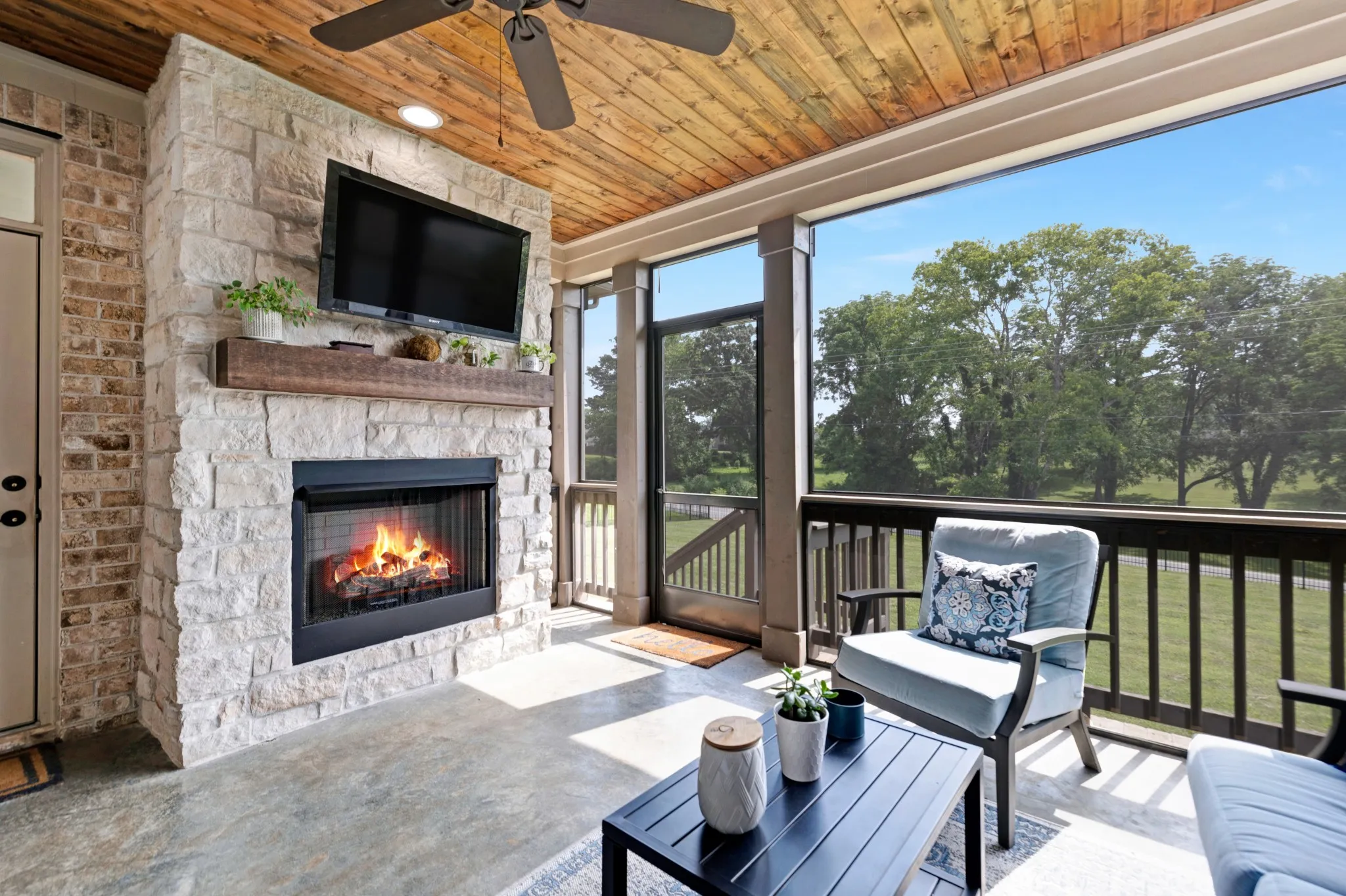 Step outside to enjoy a fully fenced backyard with a covered and screened patio area complete with a fireplace that’s perfect for weekend BBQs, kids playing, or relaxing evenings under the stars. The three-car garage offers plenty of storage and workspace.