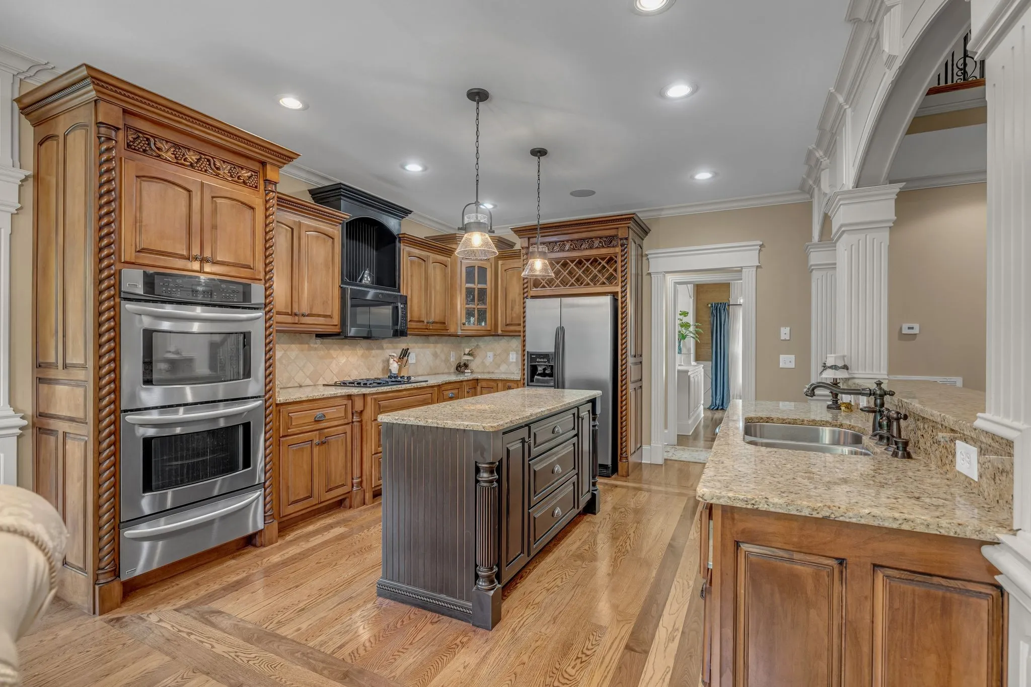 Priced to sell “custom home” a couple of blocks from McKnight Park, which offers 81 acres of community facilities. This stunning, luxurious executive brick four-bedroom and 3.5-bath features an open floor plan. The spacious family room w/a vaulted ceiling and fireplace opens to a breakfast bar w/a a gourmet eat-in kitchen equipped with a w/double ovens, a gas built-in stove top, granite countertops and SS appl. Flowing hardwoods lead to a relaxing hearth/guest room with a fireplace and a soaring custom, coffered ceiling. A formal dining room with an elegant built-in and arched entryways throughout makes this a trim lover’s joy! The first-floor primary suite features a two-story ceiling, bay windows, and a spacious bathroom with w/a separate shower and spa tub. The 2nd level bonus is enormous with plenty of space for game night, media, or to entertain, and enjoy the wet bar. The outside living space features a covered deck, a charming paver patio, and a private backyard with a built-in fire pit, also perfect for summer gatherings or evening relaxation. Storage galore, fresh paint, a new second-floor HVAC, and lush, mature landscaped grounds are sure to make a breathtaking first impression!