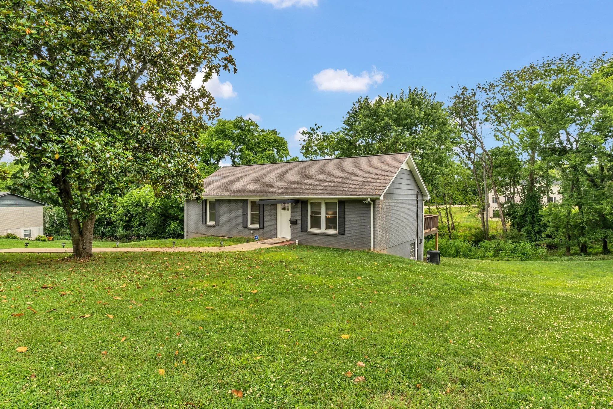 "LongDescription" => "Sloped in the back, backing up to a beautiful tree line."