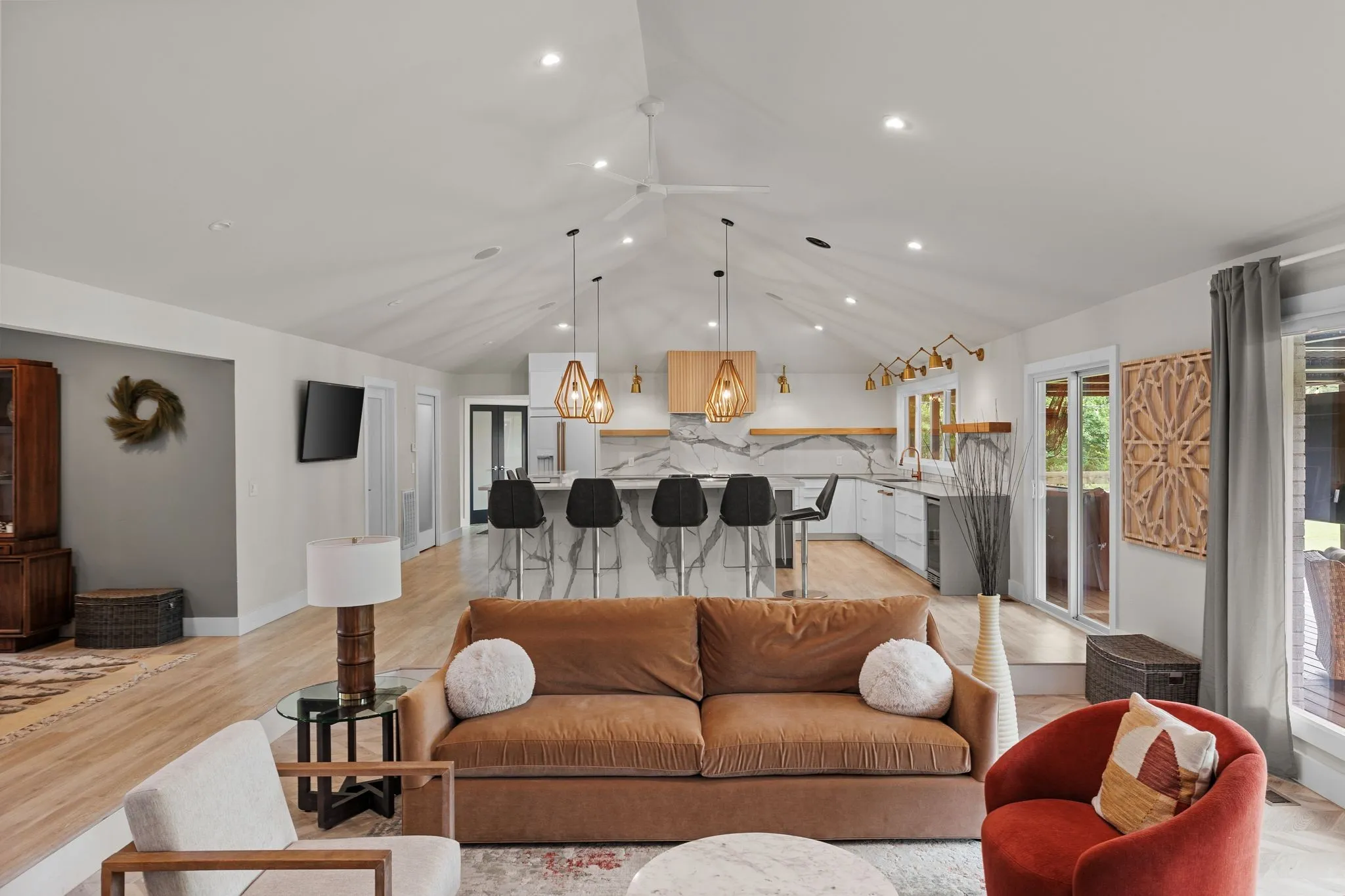 Completely Remodeled One Level Living at it’s Finest in Fabulous Fountainhead Subdivision* This Updated Home on a Quiet Street offers 4 Bedrooms with 3 full baths with Spacious Outdoor Living* Oversized Gourmet Kitchen with Vaulted Ceilings is Open to the Sunken Family Room with Fireplace* Covered Back Porch with Composite Decking* Spacious Bonus Room w/ Built-in Bunks* Drive Under Garage has Walk-in Storage with Concrete Floors* Tree lined Backyard* Circular Drive* First Showings at Open House on Sunday 2-4!