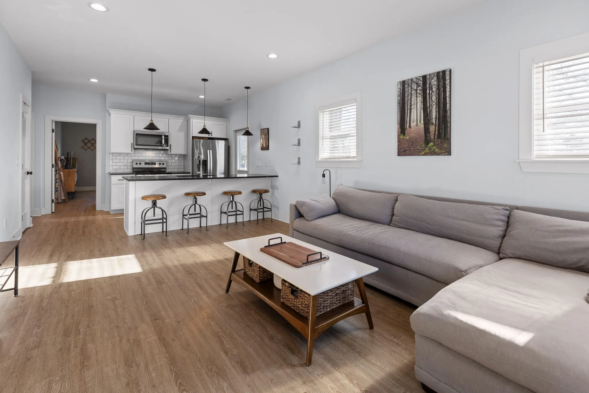 Welcome to 1518 Tombras Avenue, a beautifully built newer construction home offering modern finishes and convenience in the heart of East Ridge. This three-bedroom, two-bathroom home provides 1,120 sq. ft. of stylish living space, designed for comfort and functionality. The exterior features durable Hardie board siding, while inside, the kitchen is equipped with sleek granite countertops, a subway tile backsplash, and beautiful cabinetry. Luxury vinyl plank (LVP) flooring runs throughout the home, adding both style and ease of maintenance. The open floor plan, combined with high ceilings, creates a bright and inviting atmosphere. The primary bedroom is conveniently located on the main level and includes a walk-in closet. A covered front porch provides a perfect spot to enjoy the outdoors, while the home’s energy-efficient features and low-maintenance lot make living here effortless. Situated just minutes from Downtown Chattanooga and Hamilton Place, this home offers easy access to restaurants, shopping, and major highways, ensuring a convenient lifestyle. Don’t miss out on this affordable modern home in a growing area! Schedule your private tour today!